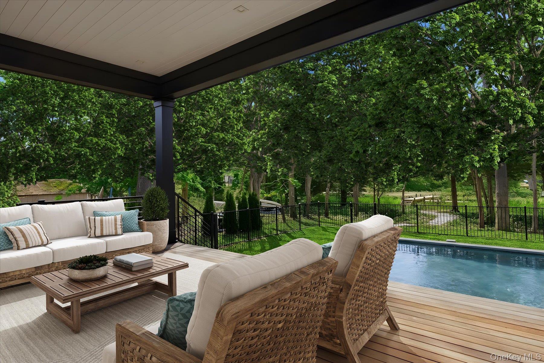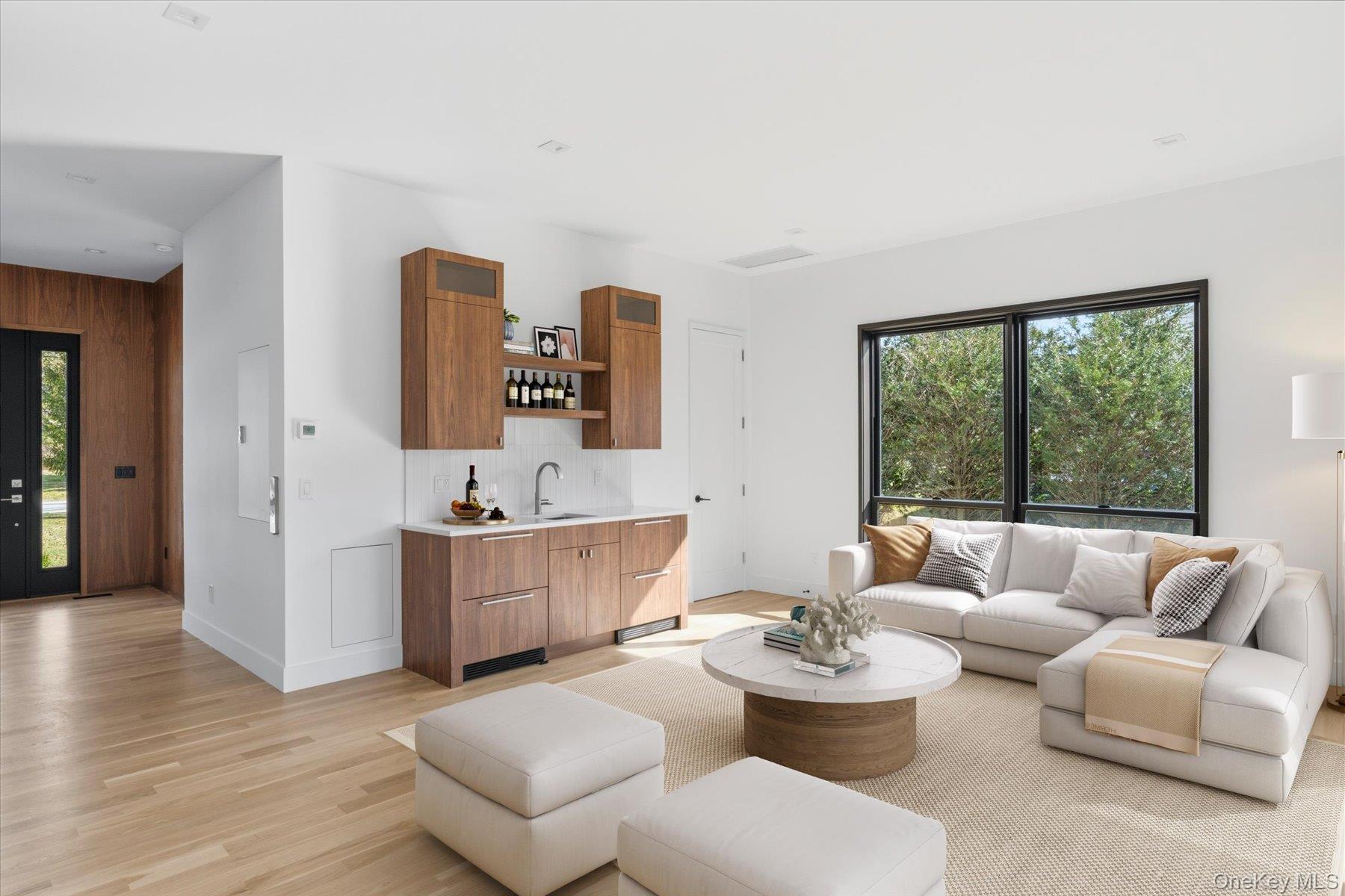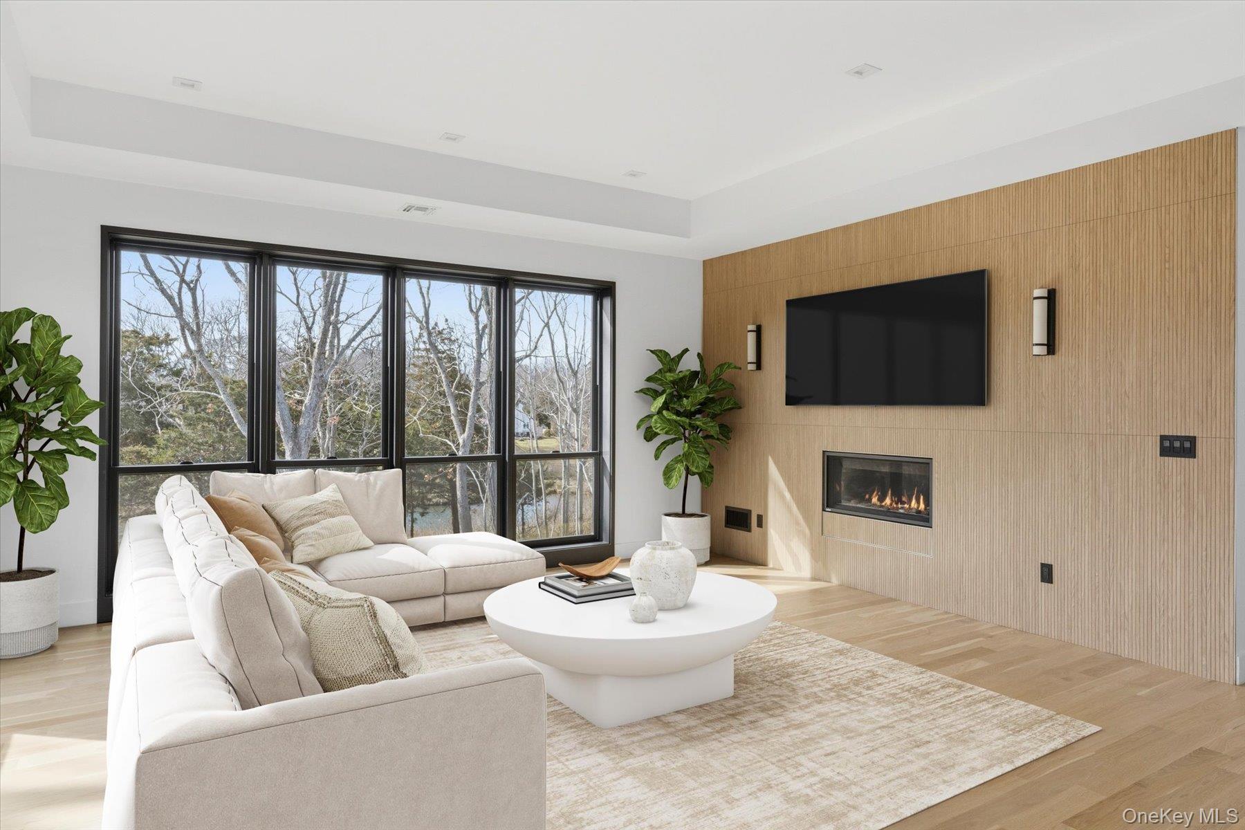 Set along the scenic shores of Goose Creek, this newly constructed waterfront home offers a private dock with direct boating access to the Peconic Bay, an increasingly rare offering on the North Fork. Combining new construction with waterfront access, the property delivers a lifestyle that is difficult to replicate. Thoughtfully designed for both everyday living and entertaining, the home features four bedrooms and five-and-a-half baths across a well-planned layout. The main level includes a spacious living room with a wet bar and dumbwaiter, seamlessly connected to a gourmet kitchen and dining area, along with two bedrooms. The upper level offers a primary suite and an additional guest bedroom, both with access to an oversized deck overlooking Goose Creek. Designed for summer living, the outdoor space includes a pool and expansive patio set against a tranquil waterfront backdrop, ideal for entertaining or enjoying the peaceful surroundings. Additional features include a garage and a full unfinished lower level offering exceptional potential for customization and added value. Located in the heart of Southold, just minutes from vineyards, beaches, and renowned North Fork destinations, this is a rare opportunity to own new construction waterfront with private dock access. This listing may include images that have been digitally altered or virtually staged. Original, unedited images are available upon request.