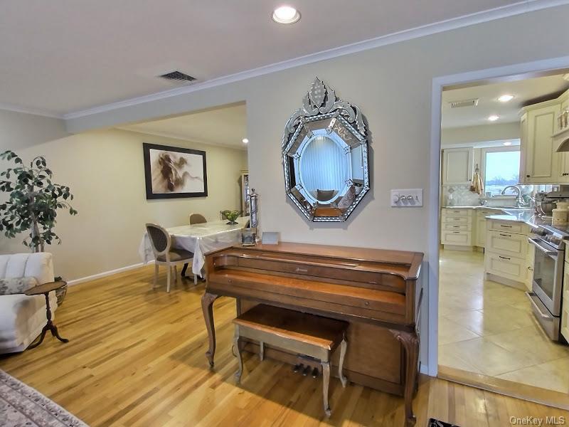 Welcome to this expanded split-level home with incredible backyard views of the Middle Bay Golf Course, located in the desirable Wedgewood section of Oceanside. Featuring 3 or 4 bedrooms and 2. 5 baths, this home offers a great layout with plenty of flexibility. The main level includes a spacious living room, formal dining room, and an updated kitchen with granite countertops, stainless steel appliances, ample counter space, and double sink. The real standout here is the expanded den in the rear—full of natural light and overlooking the golf course. A glass French door leads out to a large deck, making it perfect for entertaining or just enjoying the view. Upstairs offers 3 bedrooms, including a primary suite with its own full bath, plus a hallway bath for the additional bedrooms. The lower level features a welcoming entry foyer, half bath, laundry area, and the original den which works perfectly as a 4th bedroom, guest room, home office, or playroom, with direct access to the backyard. Updates include a 4-year-old roof, 3-year-old central air, 5-year-old Bosch tankless gas heating system, 200 amp electric, and in-ground sprinklers. Homes like this—with an expanded layout and golf course views—don’t come up often. Don't miss your chance on this one.