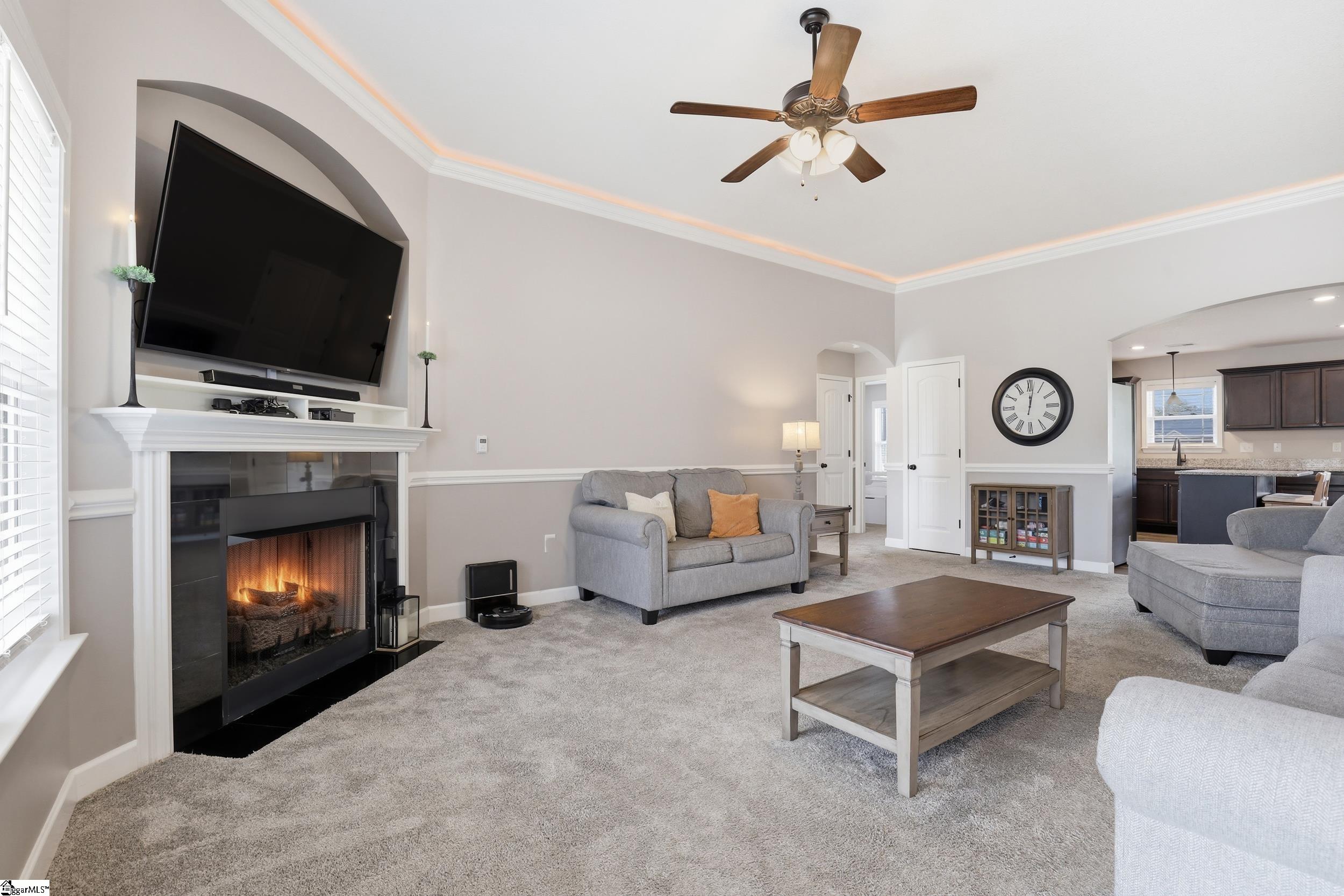 Welcome to this immaculate Craftsman-style home in Lyman’s highly sought-after Kenmare community. This meticulously maintained 3-bedroom, 2-bath home has a spacious bonus room and is perfectly situated on a level lot just under half an acre. Inside, you’ll find over 1, 900 square feet of thoughtfully designed living space with a desirable split-bedroom floor plan that provides both privacy and functionality. The open-concept living area is warm and inviting, featuring 9-foot ceilings, elegant crown molding with rope lighting, and a cozy corner gas-log fireplace—ideal for relaxing evenings at home. The eat-in kitchen is designed for both everyday living and entertaining, complete with a large center island, granite countertops, and ample workspace. Additional highlights include an oversized walk-in laundry room, offering convenience and extra storage. Step outside and enjoy exceptional outdoor living with a charming covered front porch and an expansive screened-in lanai—perfect for morning coffee or hosting guests. The fully fenced backyard provides plenty of space for pets, play, or simply enjoying the outdoors in privacy. This home truly combines comfort, style, and space in one of Lyman’s most desirable communities—don’t miss your opportunity to make it yours!