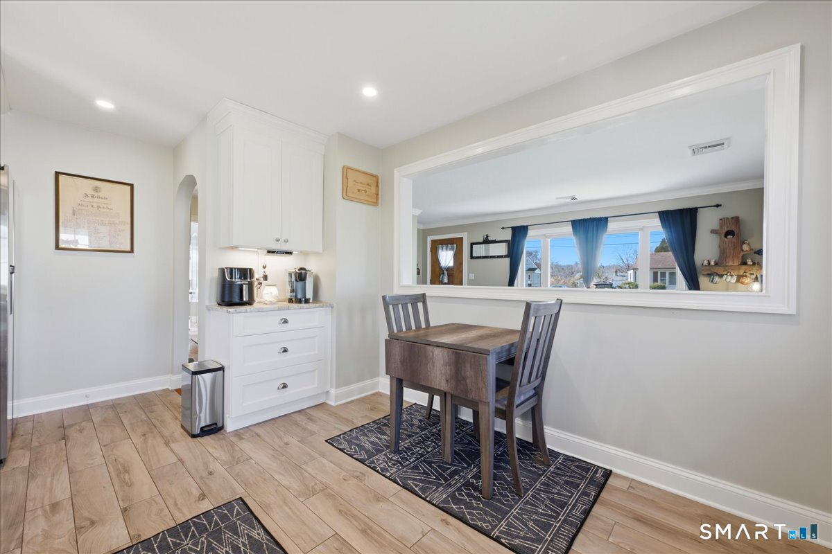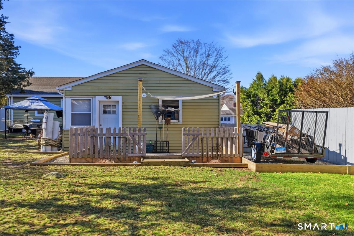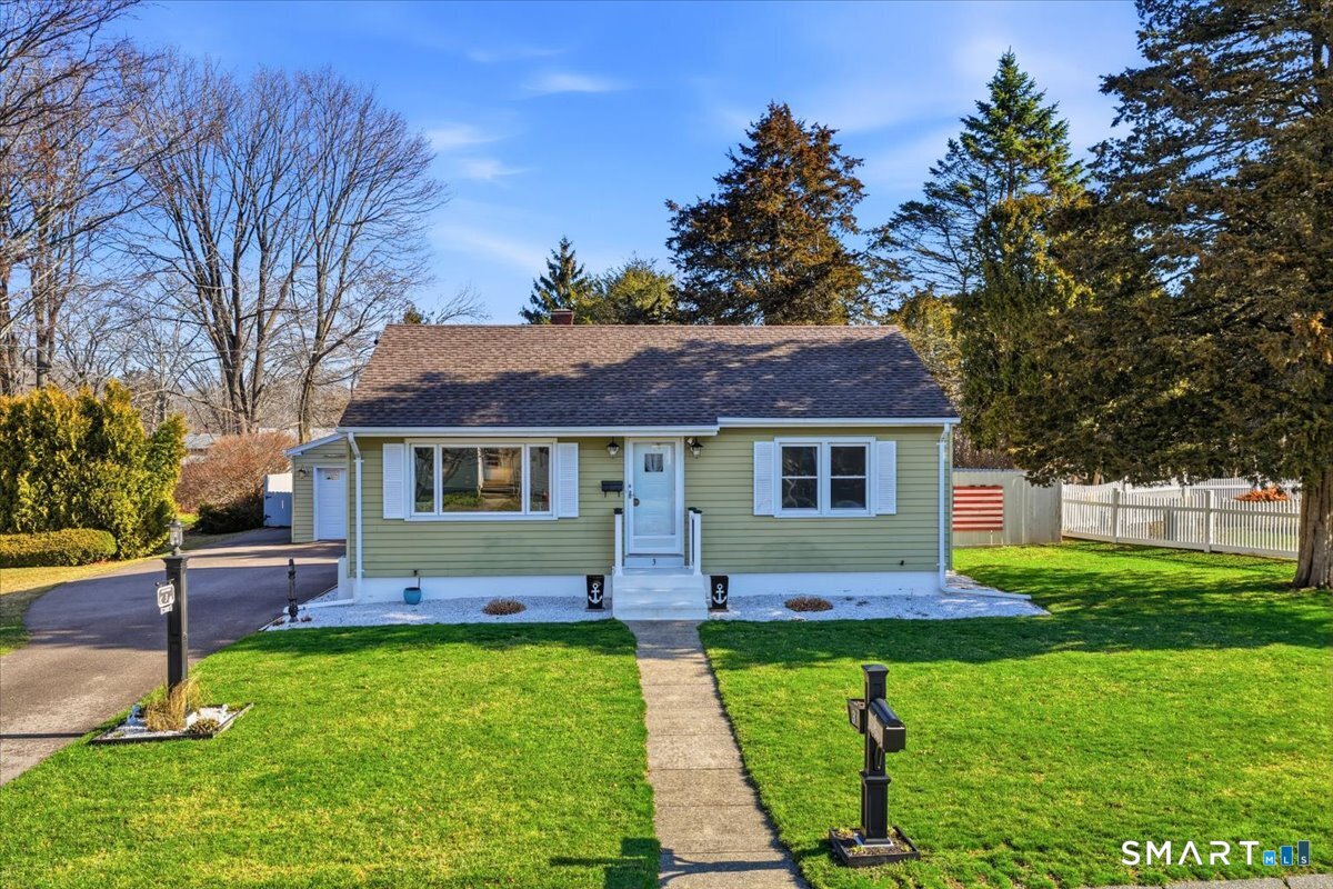This beautifully updated two-bedroom, one-bath ranch offers the perfect blend of modern upgrades and everyday comfort. The home features a stunning, fully renovated kitchen with granite countertops, sleek cabinetry, and plenty of space for cooking and entertaining. The updated bathroom adds a touch of luxury with heated floors-perfect for those colder mornings. Major improvements provide peace of mind, including central air installed in 2016, an updated electrical panel (2015), oil tank (2017), and a newer boiler (2021). The roof on both the house and garage was replaced in 2013, and the home is equipped with younger windows for added efficiency. Inside, you'll find beautifully refinished hardwood floors throughout, along with recessed lighting on dimmer switches to create the perfect ambiance. Step outside to enjoy a fully fenced-in backyard-ideal for pets, gatherings, or relaxing in privacy-along with a sprinkler system keeping the front yard lush and green. A newer driveway adds to the home's curb appeal. The property also includes a single-car garage with a sink and urinal, offering a unique and functional space. Relax inside or out on the covered pergola with fan & TV. Theres even space for your animal to take a bath, or cool off and relax. The basement has a wall mounted tanning bed, optional sauna and optional gym. Move-in ready and thoughtfully upgraded from top to bottom, this home is a must-see! Come home and relax.