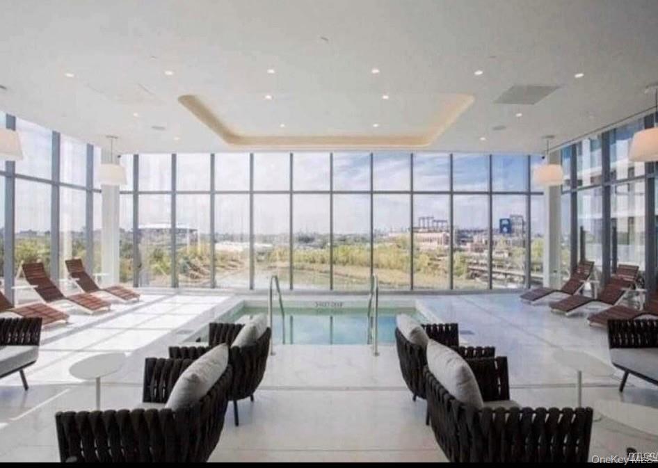 Beautiful studio and a luxurious condo complex in the heart of Flushing. South facing unit with gorgeous pool views, large balcony, washer/dryer in unit, wood floors, cabinetry, granite countertop, built-in Bosch appliances, central AC with NEST thermostat, floor to ceiling windows with breath taking views, 24 hour doorman, security cameras, gym/health club, swimming pool, sauna, BBQ, playroom/playground, tennis court/basketball court. Located 2 blocks away from 2 train, Long Island Railroad and buses. Skyview mall downstairs provides your convenient everyday shopping needs. Great for owner-occupied and investors alike.