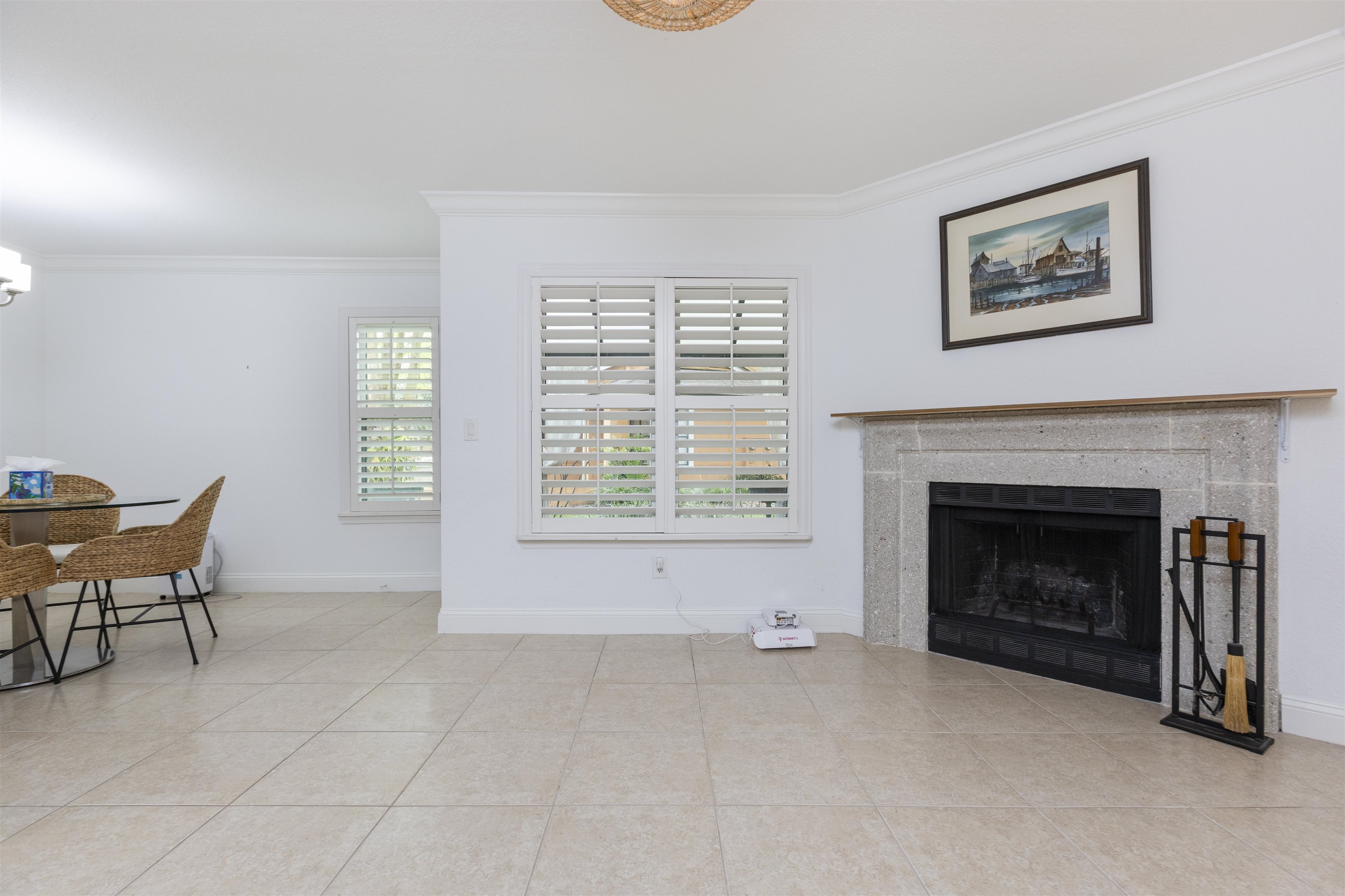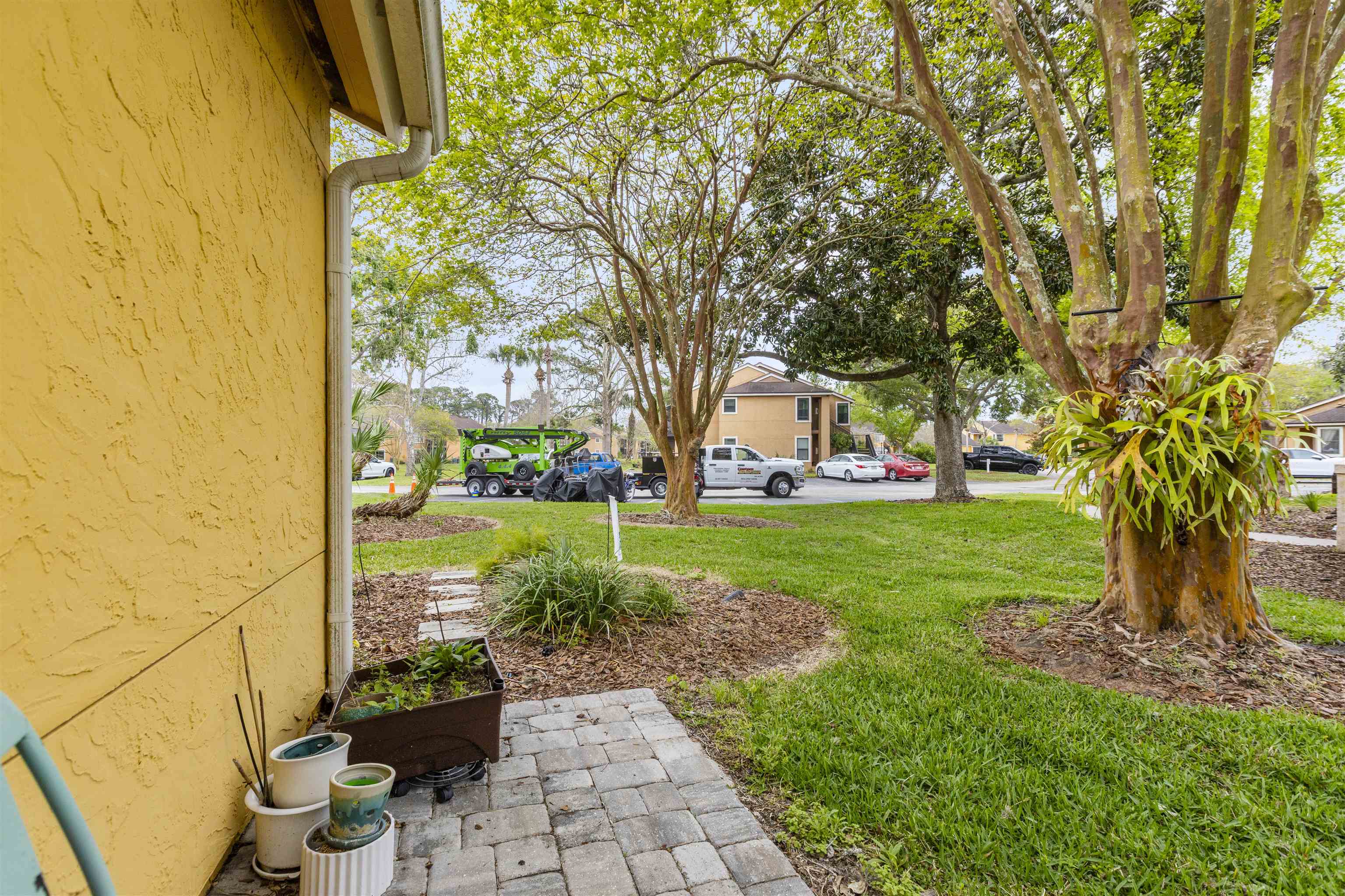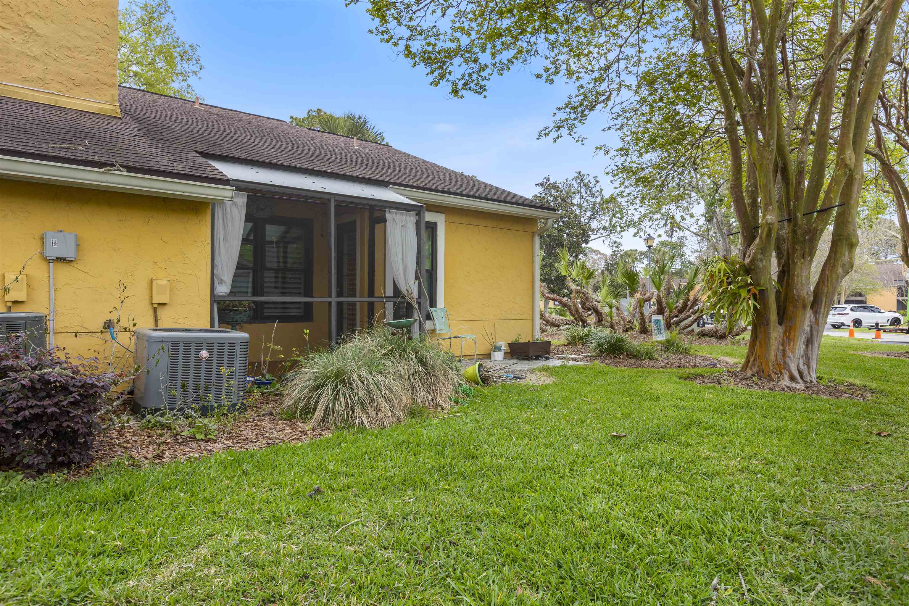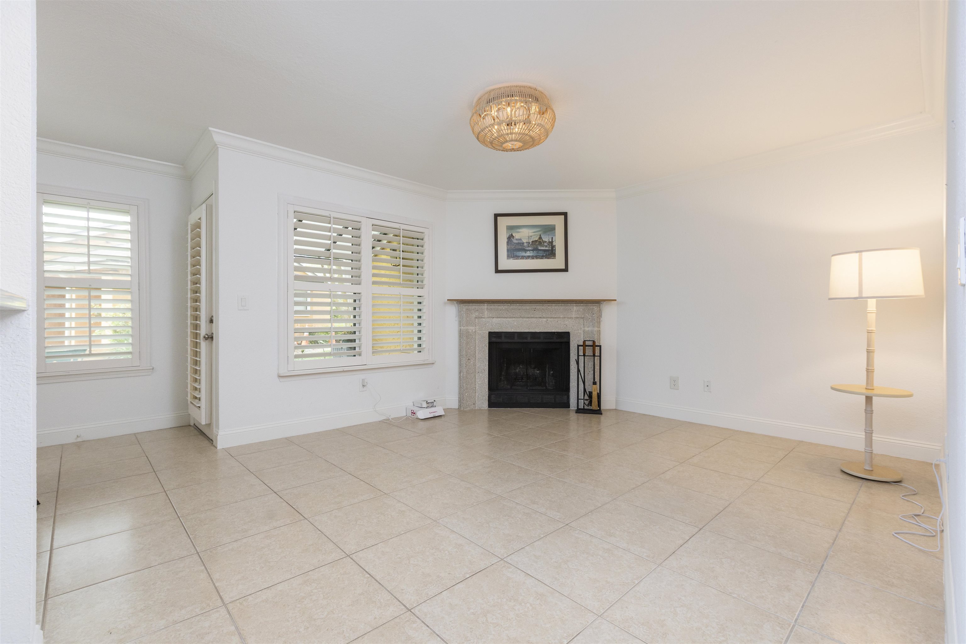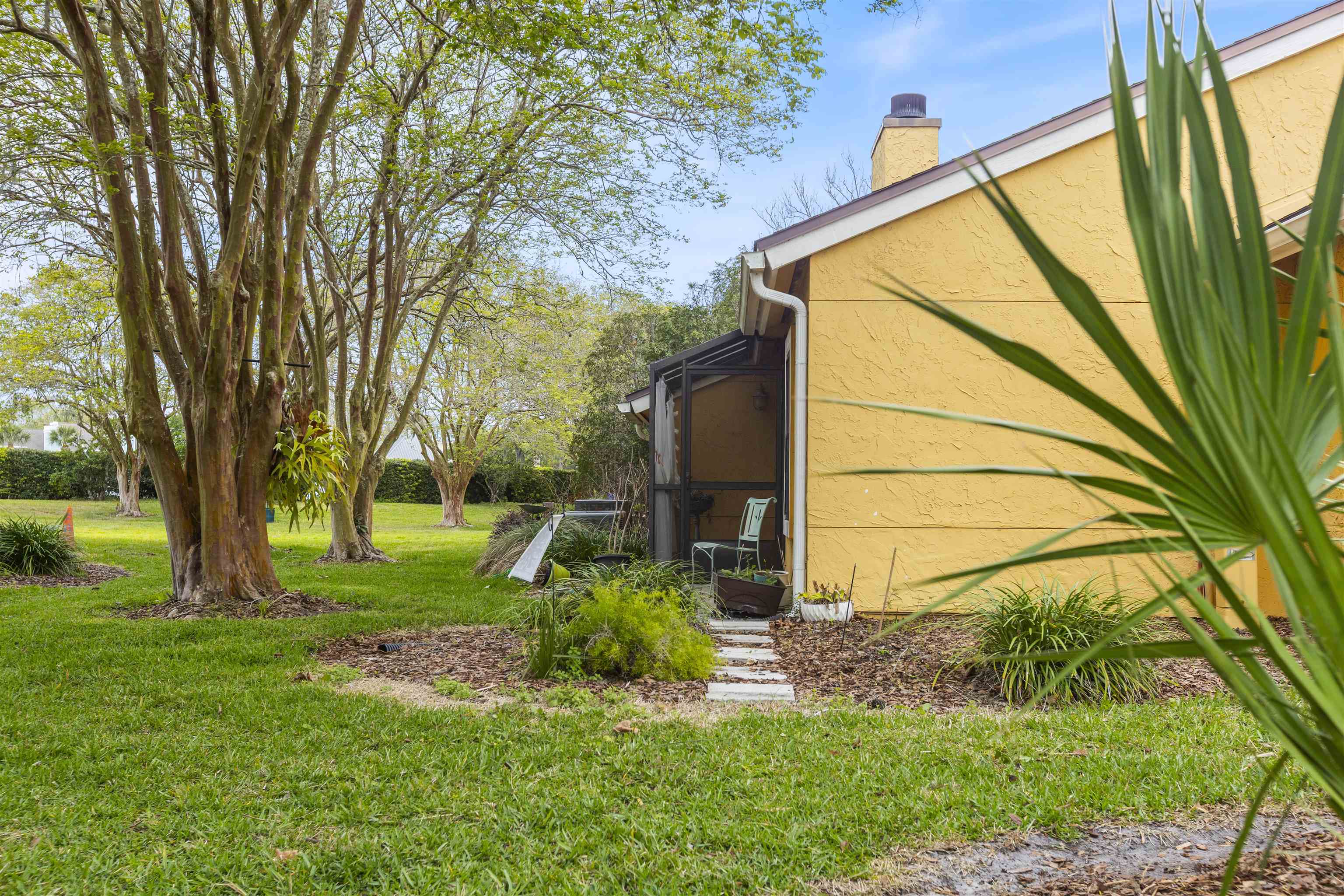 Welcome to effortless coastal living in one of the most desirable and affordable condo communities in Ponte Vedra Beach! This beautifully upgraded, single-story bungalow-style unit offers the perfect blend of comfort, style, and convenience—all just minutes from the ocean. Step inside to discover a meticulously maintained home featuring crisp white walls, elegant crown molding, and stunning plantation shutters throughout. The inviting living room showcases a gorgeous wood-burning fireplace, creating a warm and stylish focal point, while designer lighting adds a modern touch. The kitchen is both functional and beautiful with granite countertops, stainless steel appliances, double sink, and classic white cabinetry. Entertain with ease thanks to the added wet bar, perfect for hosting guests or enjoying a quiet evening at home. The spacious primary suite features laminate wood flooring, 6-inch crown molding, and a walk-in closet, while the updated bathroom offers tile flooring, a walk-in shower, and a stylish barn door for added character. The second bedroom is incredibly versatile with a built-in queen-size Murphy bed, tile floors, and plantation shutters—ideal for guests or a home office. Enjoy Florida living year-round on your private screened porch overlooking a charming paver front garden filled with lush, vibrant plants. Additional conveniences include ample storage, plus an included washer and dryer. This amenity-rich community offers a resort-style lifestyle with a clubhouse, fitness center, pool, tennis courts, library, billiards room, and social bar area. Located just minutes from upscale shopping, dining, pharmacies, and the beach—and only 10 minutes to world-renowned TPC Sawgrass golf—this home delivers the ultimate in location, lifestyle, and value. Don’t miss your opportunity to own a slice of Ponte Vedra Beach paradise!