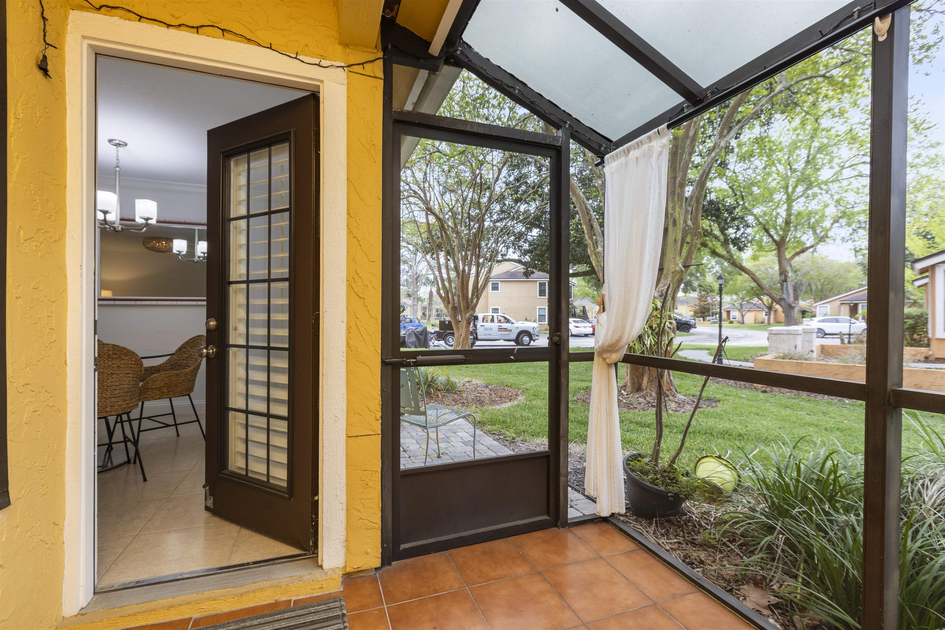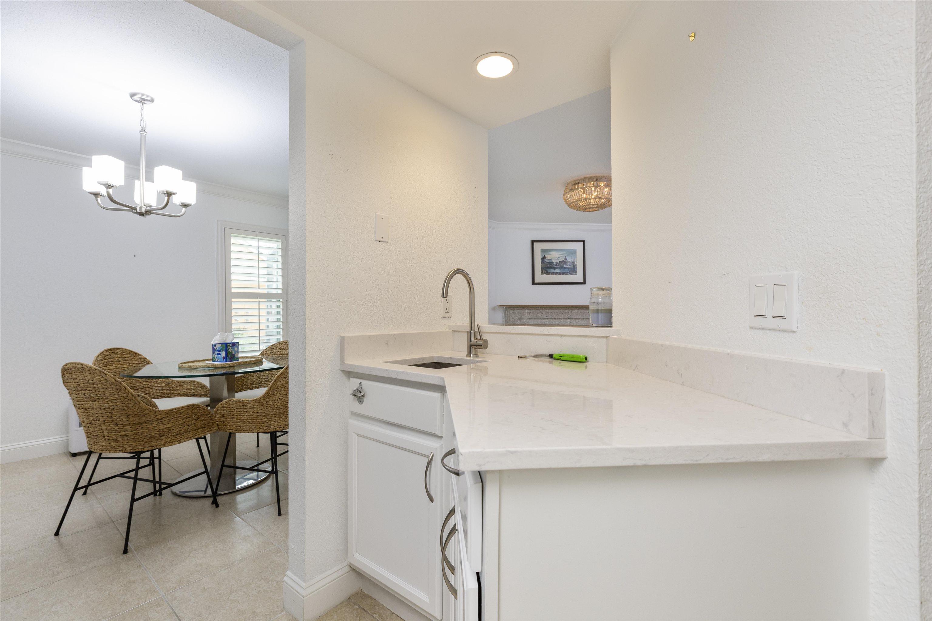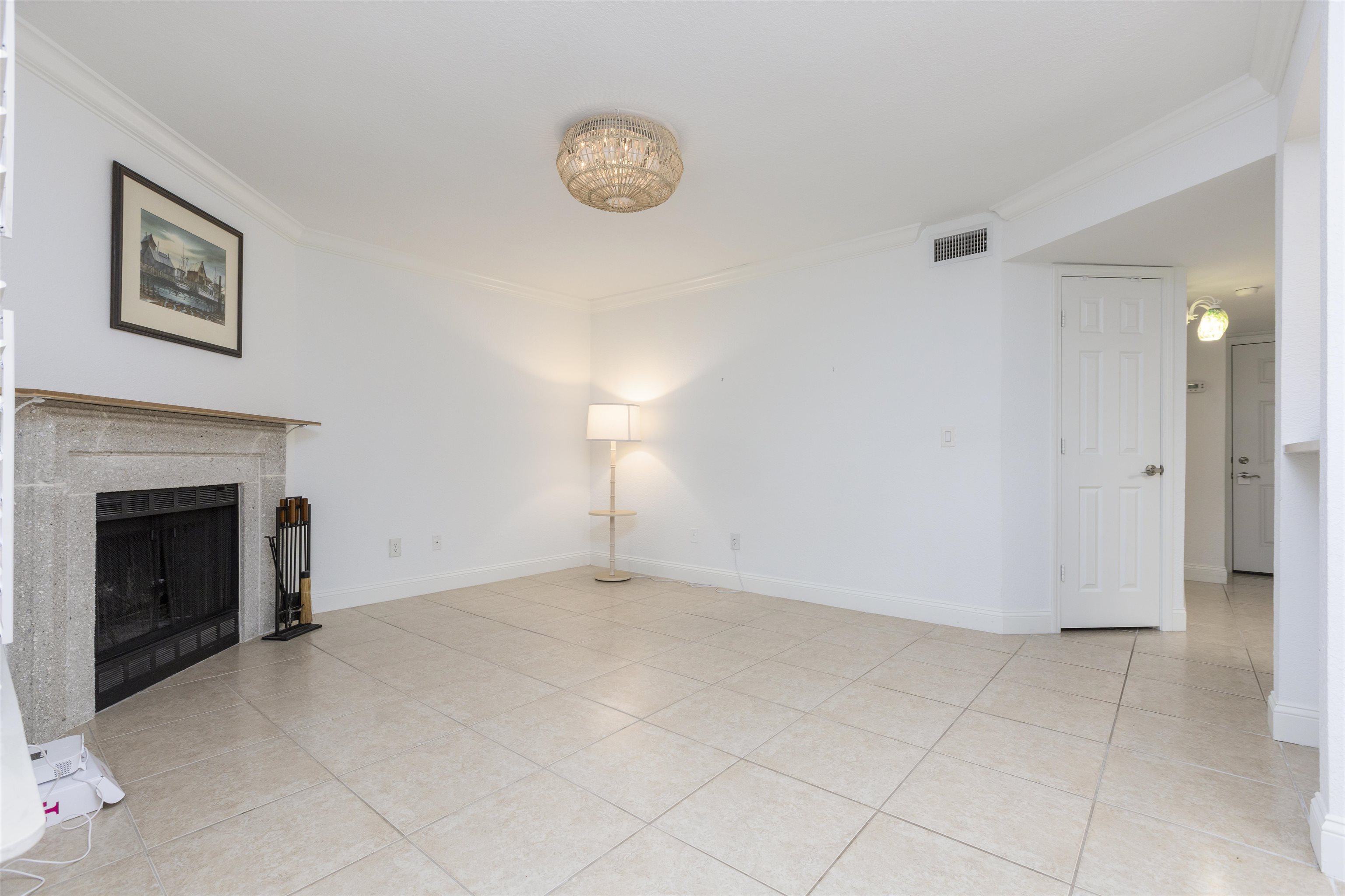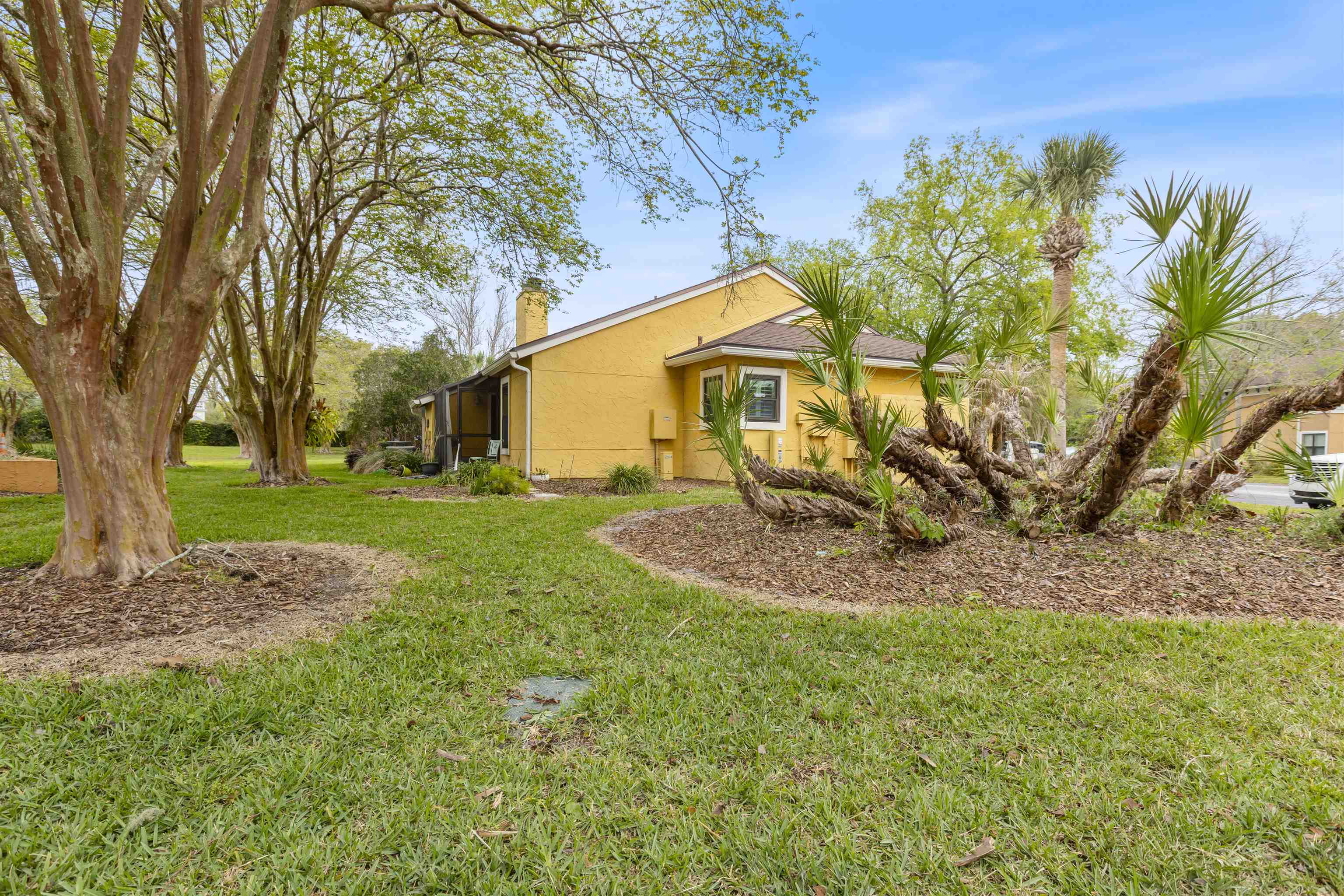 Welcome to effortless coastal living in one of the most desirable and affordable condo communities in Ponte Vedra Beach! This beautifully upgraded, single-story bungalow-style unit offers the perfect blend of comfort, style, and convenience—all just minutes from the ocean. Step inside to discover a meticulously maintained home featuring crisp white walls, elegant crown molding, and stunning plantation shutters throughout. The inviting living room showcases a gorgeous wood-burning fireplace, creating a warm and stylish focal point, while designer lighting adds a modern touch. The kitchen is both functional and beautiful with granite countertops, stainless steel appliances, double sink, and classic white cabinetry. Entertain with ease thanks to the added wet bar, perfect for hosting guests or enjoying a quiet evening at home. The spacious primary suite features laminate wood flooring, 6-inch crown molding, and a walk-in closet, while the updated bathroom offers tile flooring, a walk-in shower, and a stylish barn door for added character. The second bedroom is incredibly versatile with a built-in queen-size Murphy bed, tile floors, and plantation shutters—ideal for guests or a home office. Enjoy Florida living year-round on your private screened porch overlooking a charming paver front garden filled with lush, vibrant plants. Additional conveniences include ample storage, plus an included washer and dryer. This amenity-rich community offers a resort-style lifestyle with a clubhouse, fitness center, pool, tennis courts, library, billiards room, and social bar area. Located just minutes from upscale shopping, dining, pharmacies, and the beach—and only 10 minutes to world-renowned TPC Sawgrass golf—this home delivers the ultimate in location, lifestyle, and value. Don’t miss your opportunity to own a slice of Ponte Vedra Beach paradise!