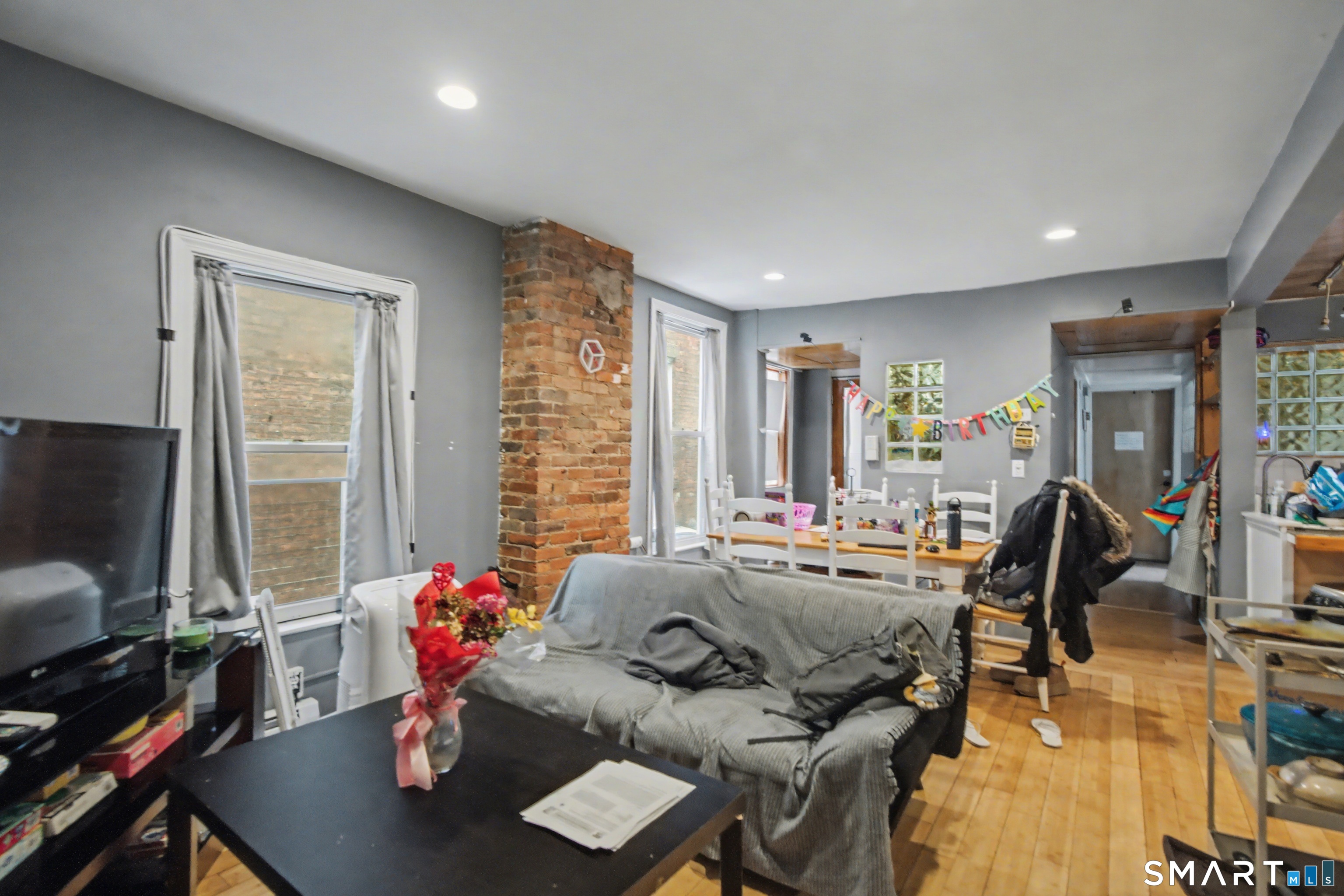 Investment opportunity in the heart of Downtown New Haven steps from Broadway & Yale, with an incredible rent roll of $8, 172 per month. The first floor is a 1, 154 sq ft, two-bedroom, one-bath apartment currently leased for $2, 173 per month. The unit has an open layout with a spacious living & dining area featuring wood floors and an exposed brick chimney. Kitchen with stainless steel appliances, light wood cabinetry and ample counter and cabinet space. There are two bedrooms with a partially updated bathroom. The second & third floor unit is a massive 6 bedroom, 2 bath apartment currently rented for $5, 999 per month. The main level has a sunny living room, a large eat in kitchen, 4 bedrooms, and 1 bathroom. And the third floor offers two additional bedrooms with vaulted ceilings, a bathroom, and a second living space with skylights. Big bonus: a private backyard with patio! The building has separate utilities (gas & electric), new roof (2025), one new furnace and most of the windows have been replaced.