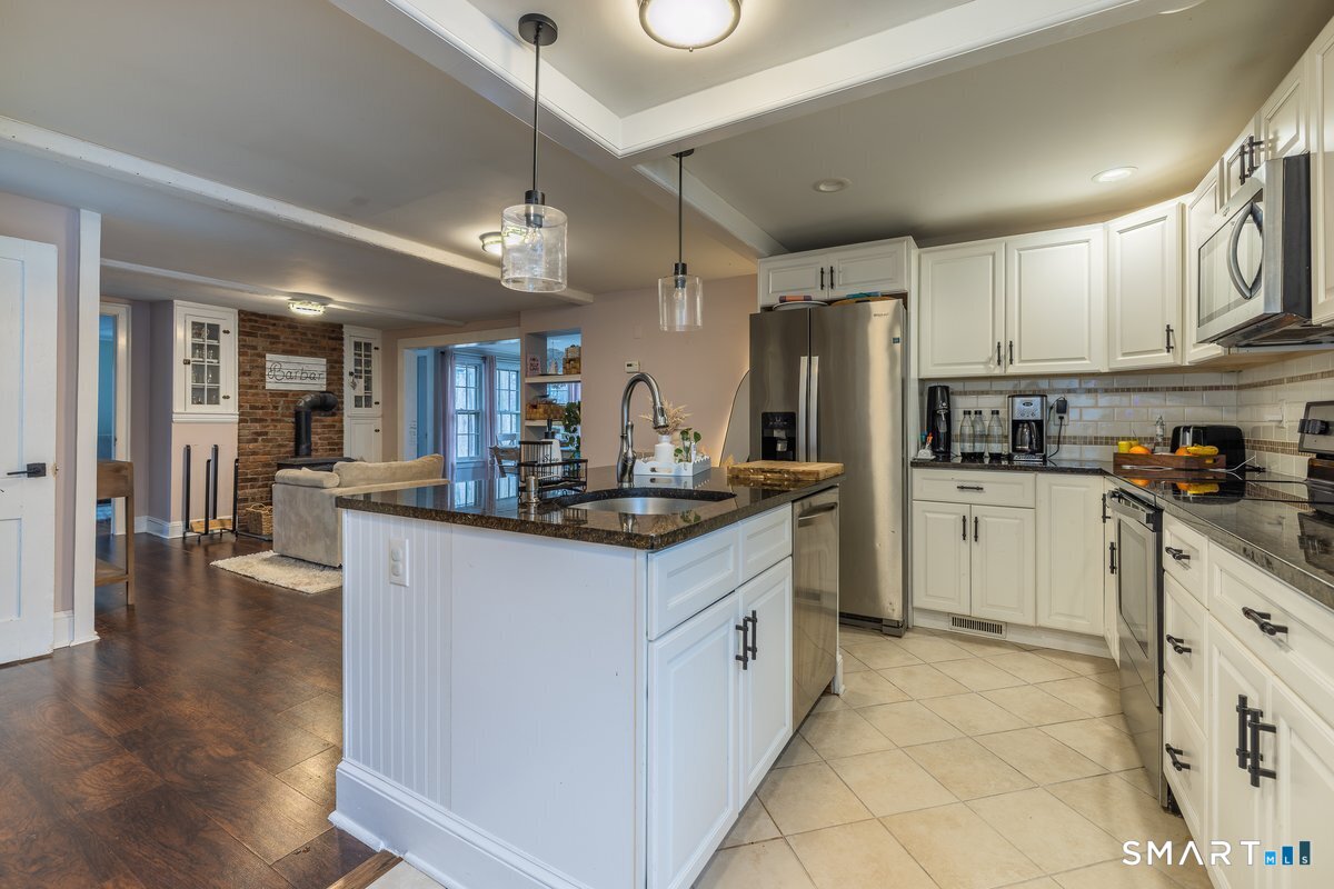 Welcome to 33 Jerusalem Hill Road in Trumbull, a charming 4-bedroom, 2 full bathroom home located in a highly sought-after neighborhood. Featuring exposed beams and an open flow from the kitchen to the sitting area and dining room, this home offers a warm and inviting layout perfect for everyday living and entertaining. The sitting area includes a cozy wood-burning stove, while the living room boasts a fireplace for added comfort. Enjoy a level yard ideal for outdoor activities, all conveniently located close to major highways. Make your appointment today, don't miss out !!