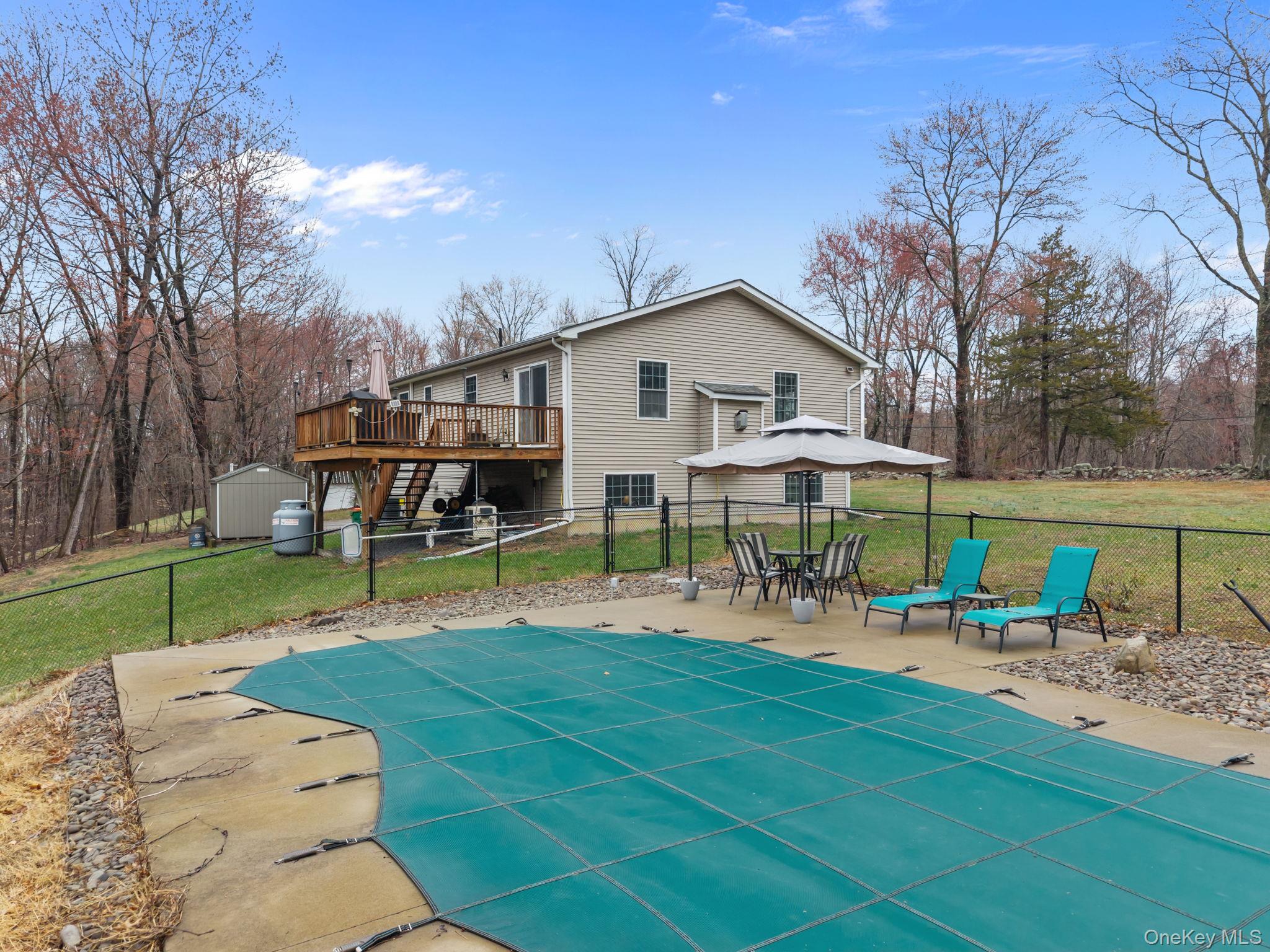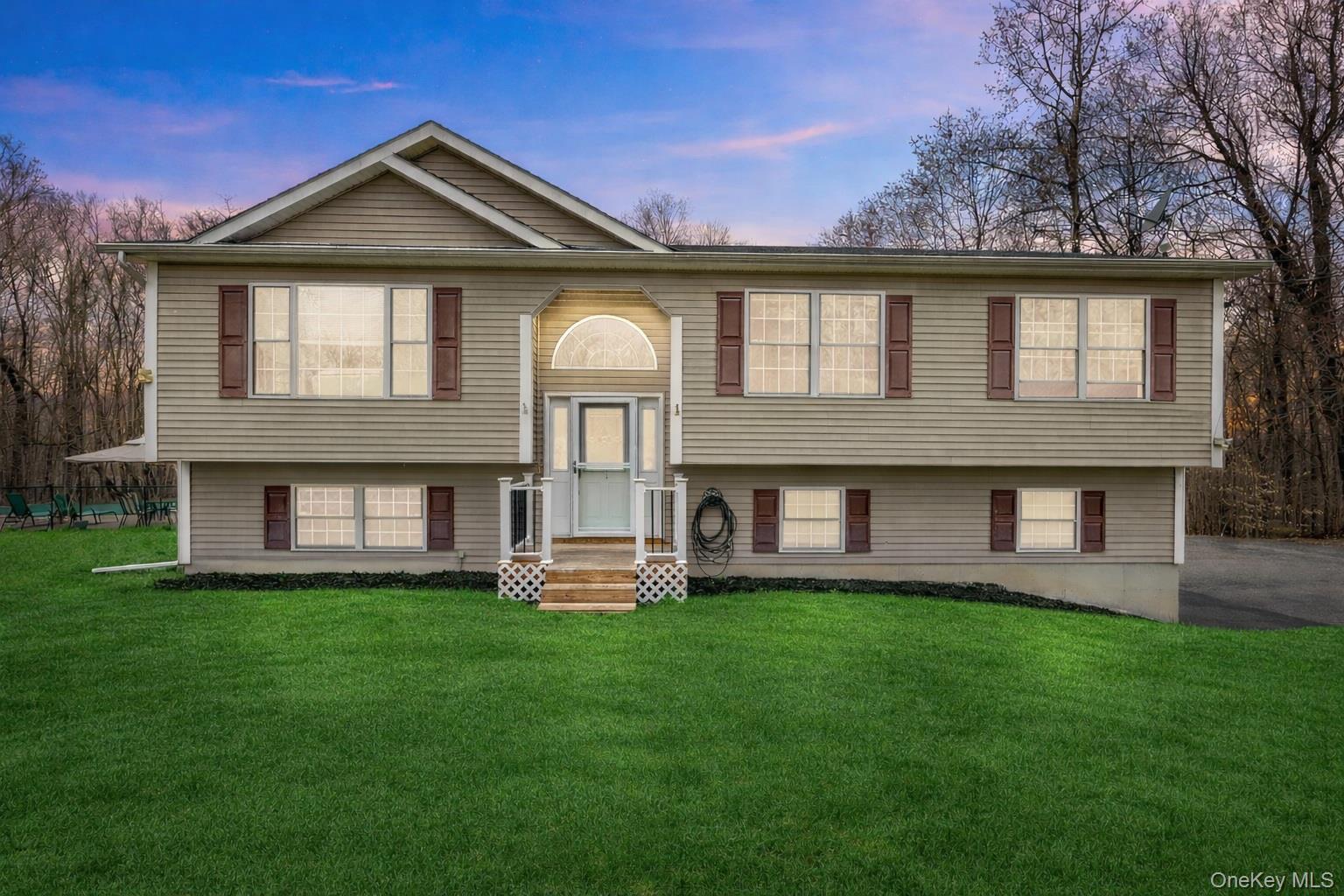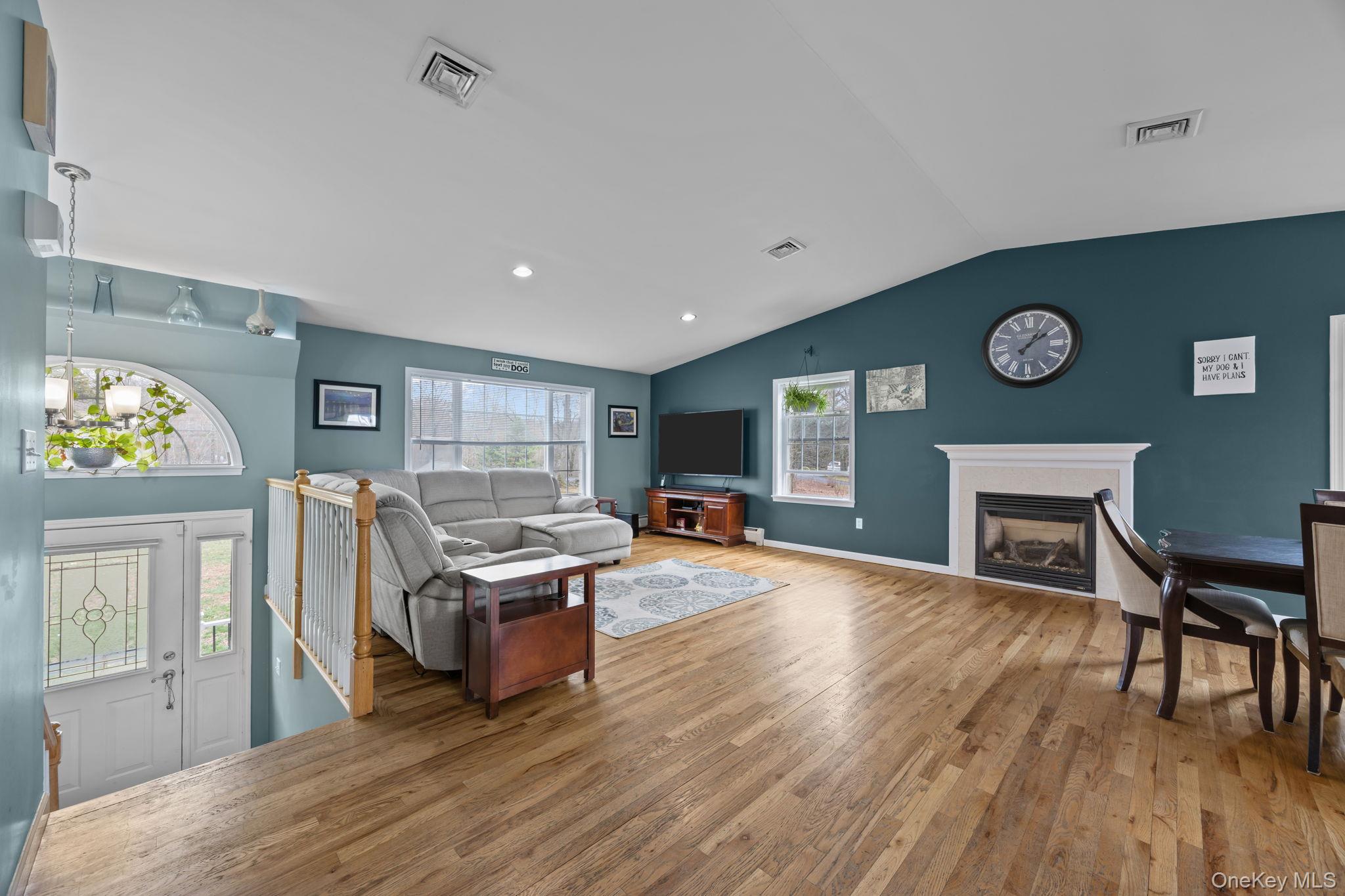 WALLKILL SCHOOLS – HEATED SALTWATER INGROUND POOL - Welcome to 69 Ridge Road, a spacious home offering 2, 236 sq. ft. of living space, perfectly set on 1. 1 private acres at the end of a quiet cul-de-sac. This home features 3 bedrooms, 2. 5 bathrooms, and a heated in-ground saltwater fiberglass pool—ideal for summer entertainment! The main level showcases an open-concept layout with cathedral ceilings, seamlessly connecting the living room, dining area, and kitchen. Glass doors with integrated blinds lead to the rear deck, creating a bright and airy space perfect for entertaining. The kitchen is equipped with an island with bar seating, ample cabinetry, and a pantry for added storage. The spacious primary suite includes a private full bath with a jacuzzi tub, two closets with custom built-ins, and is large enough for a king-sized bed. Two additional bedrooms and a full hall bath complete the main floor. The lower level offers flexible living space, including a family room, den or home office, half bath, and a dedicated laundry room with a slop sink and newer washer and dryer. Notable upgrades include central air (recently replaced), generator hookup, underground electric dog fence, security system for windows and doors, and gutter guards. The septic has been recently pumped, and the boiler has been regularly serviced. Conveniently located just minutes from Gardiner and New Paltz, with easy access to local farm markets, wineries, distilleries, Minnewaska State Park, Mohonk Mountain House, and the Shawangunk Ridge. Commuter-friendly location—approximately 90 minutes to NYC and close to major highways, Stewart International Airport, and Metro-North train station. Don't miss a wonderful opportunity to own a home in the fantastic Hudson Valley!