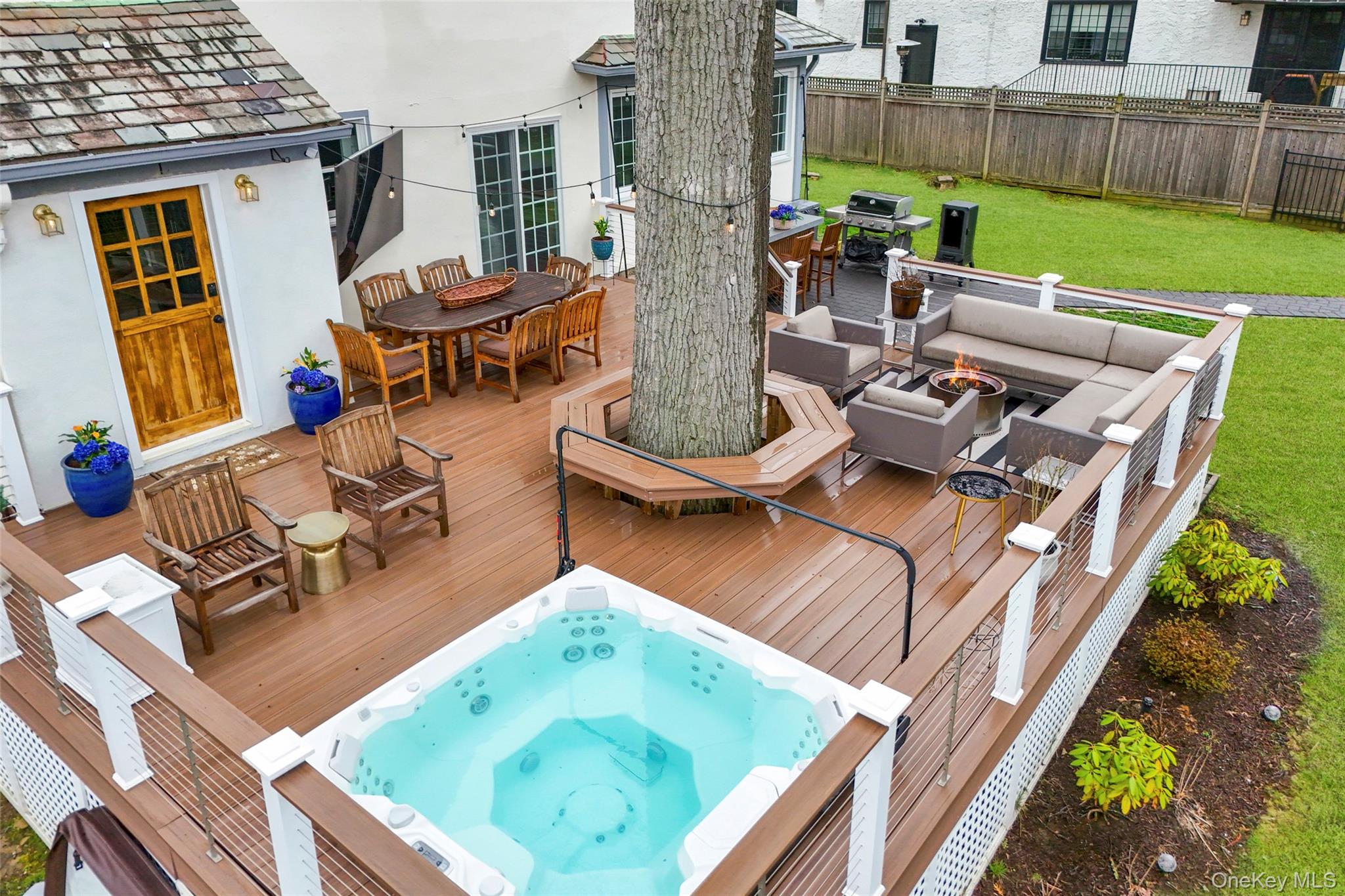 Perched on a gentle hill in the heart of Pelham Heights, this polished and turn key Tudor checks every single box. Perfectly located just 1 block from the Colonial Elementary School, 3 blocks from the Pelham Middle and High Schools, and just 4 blocks to the Pelham train station, downtown and Farmers Market, you can quickly get to everywhere you need to go in Pelham from this special home. Inside, the sun filled layout flows beautifully for everyday living blending original architectural details with recent renovations including a stunning eat in kitchen with custom cabinetry and all new appliances, updated powder room, and gorgeous primary bath. All 4 bedrooms are conveniently located on the second floor. The “walk-out” basement with a separate entrance and mud room adds 949 sf and is fully finished with a bonus room (currently used as a 5th bedroom) a newly renovated bath, a gym, study area, laundry with new washer/dryer, and media room. Enjoy recessed lighting, all new windows, efficient gas heat and new central air conditioning. Finally the unique outdoor deck is built around a mature tree and offers ample room for grilling and features an outdoor tv, a fire pit, and a newly installed hot tub perfect for post work out relaxation. 90 Boulevard is the perfect balance of convenience and neighborhood charm and is ready for you to move in this summer, meet the wonderful neighbors, and enjoy the easy Pelham lifestyle.