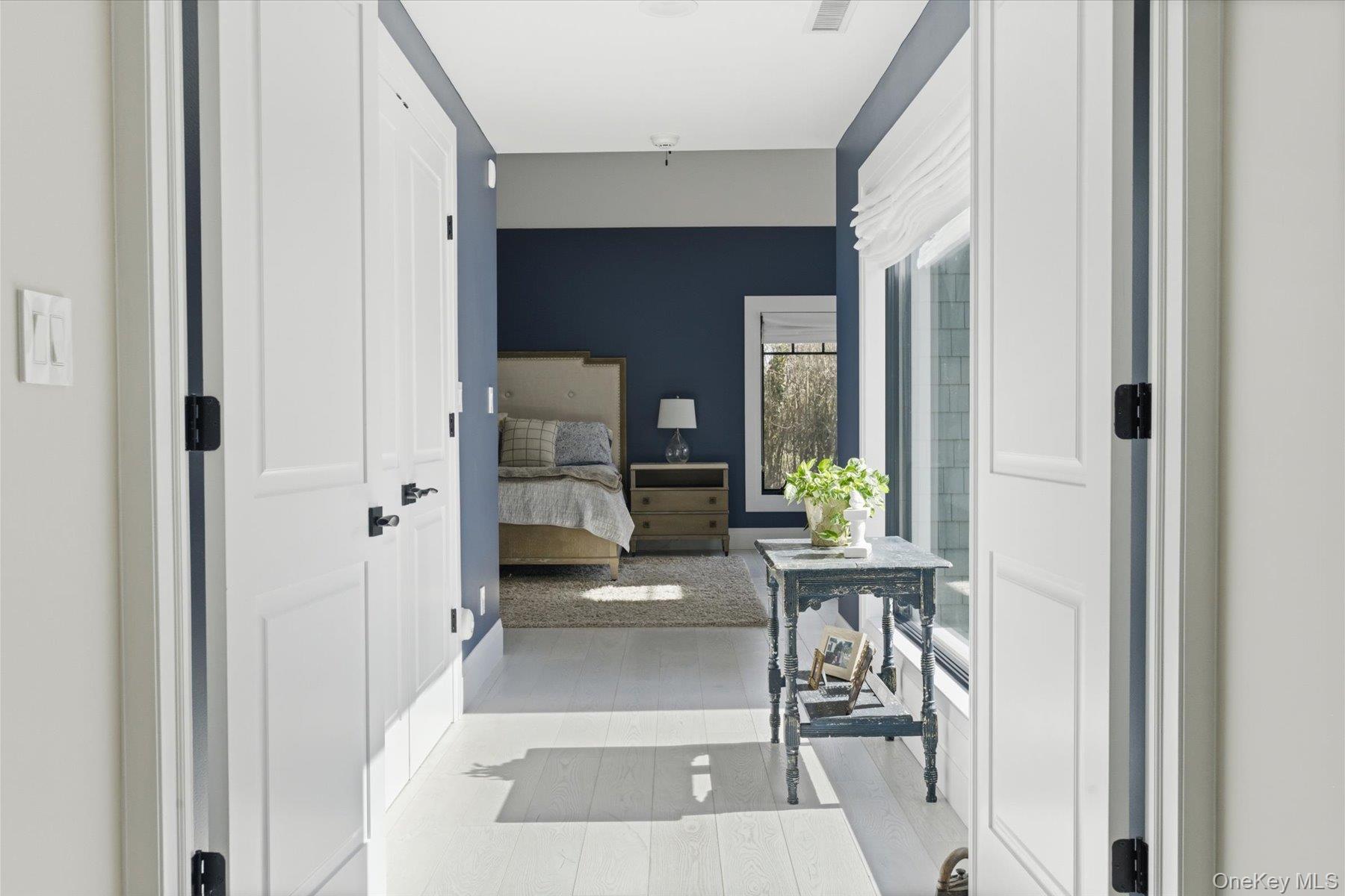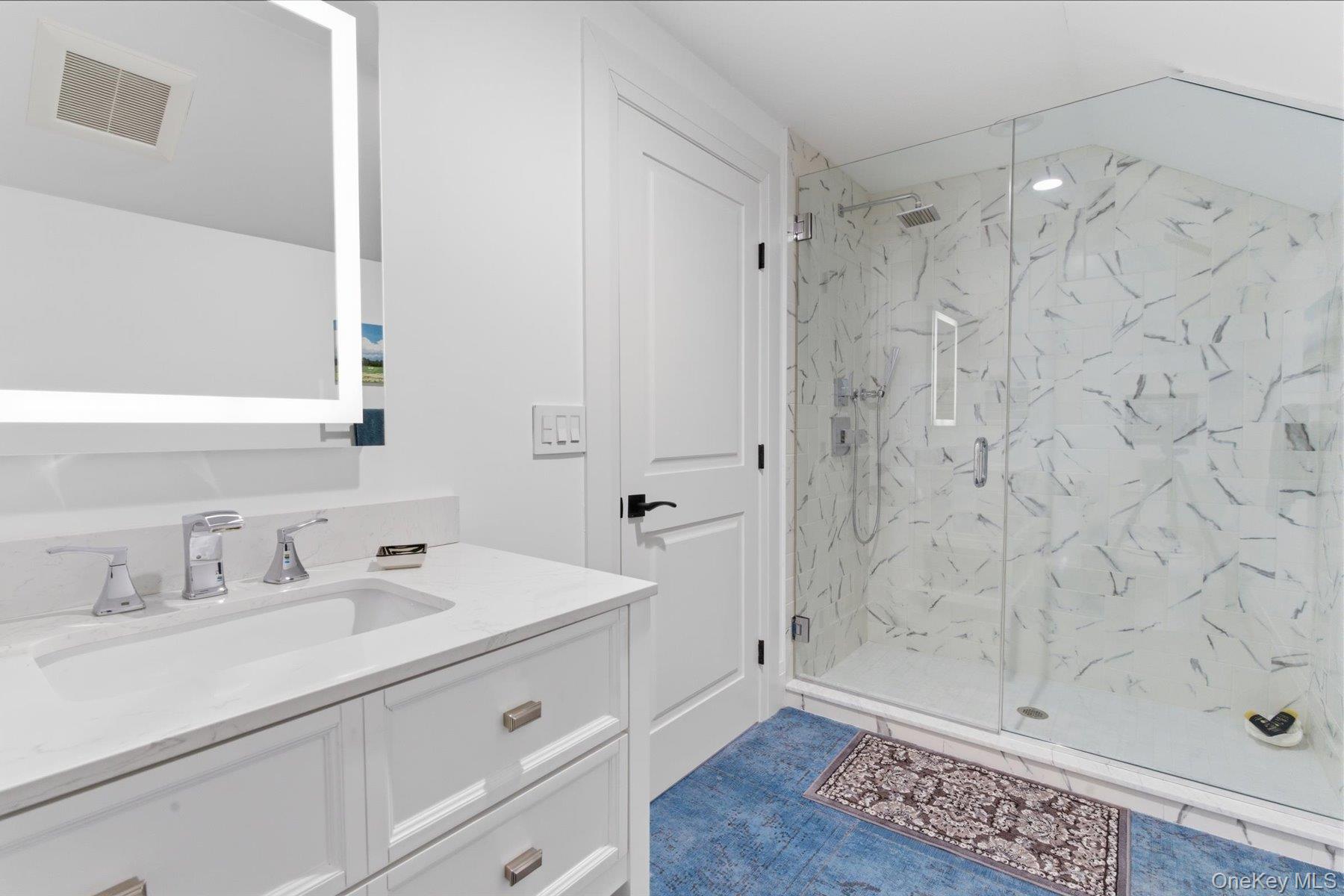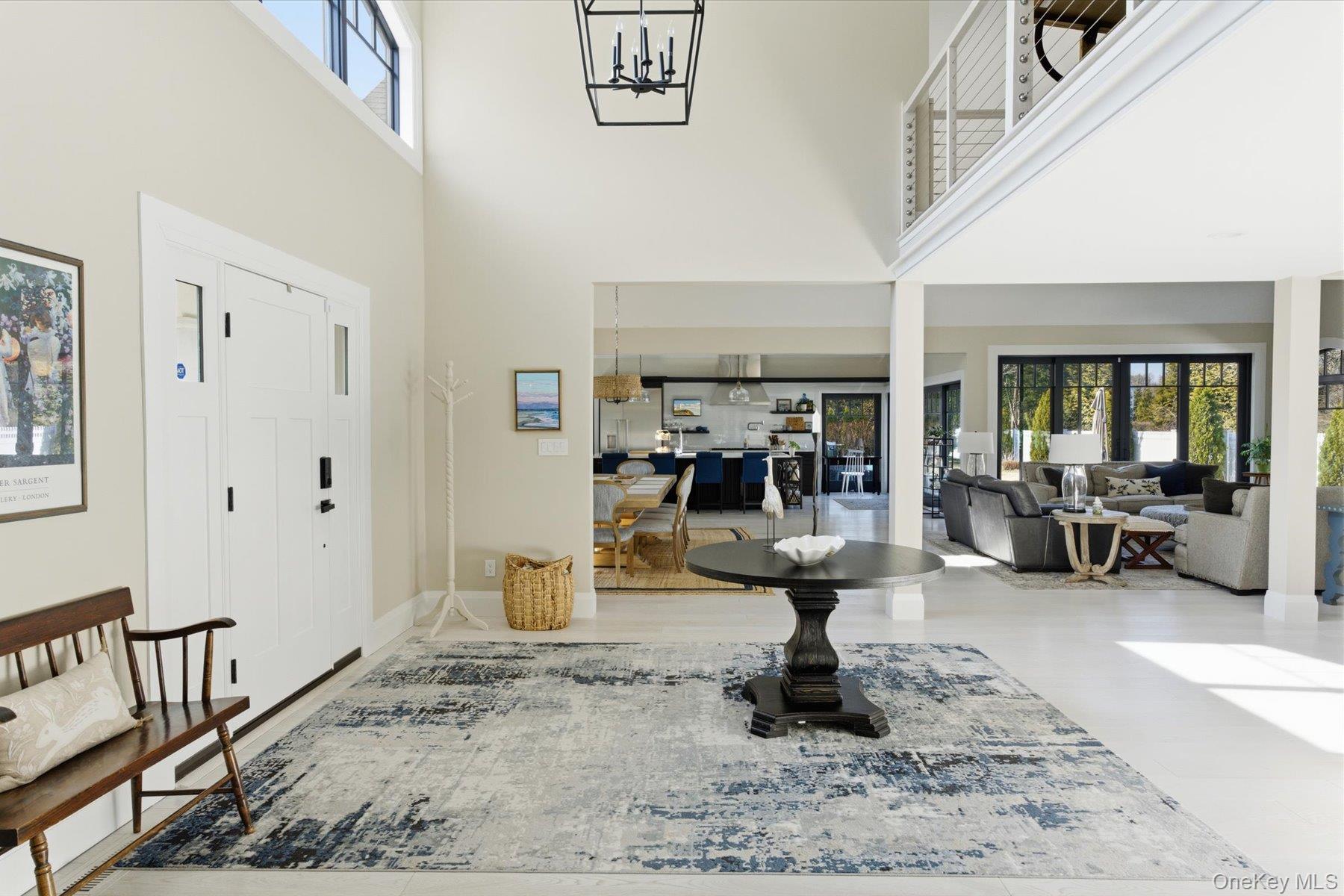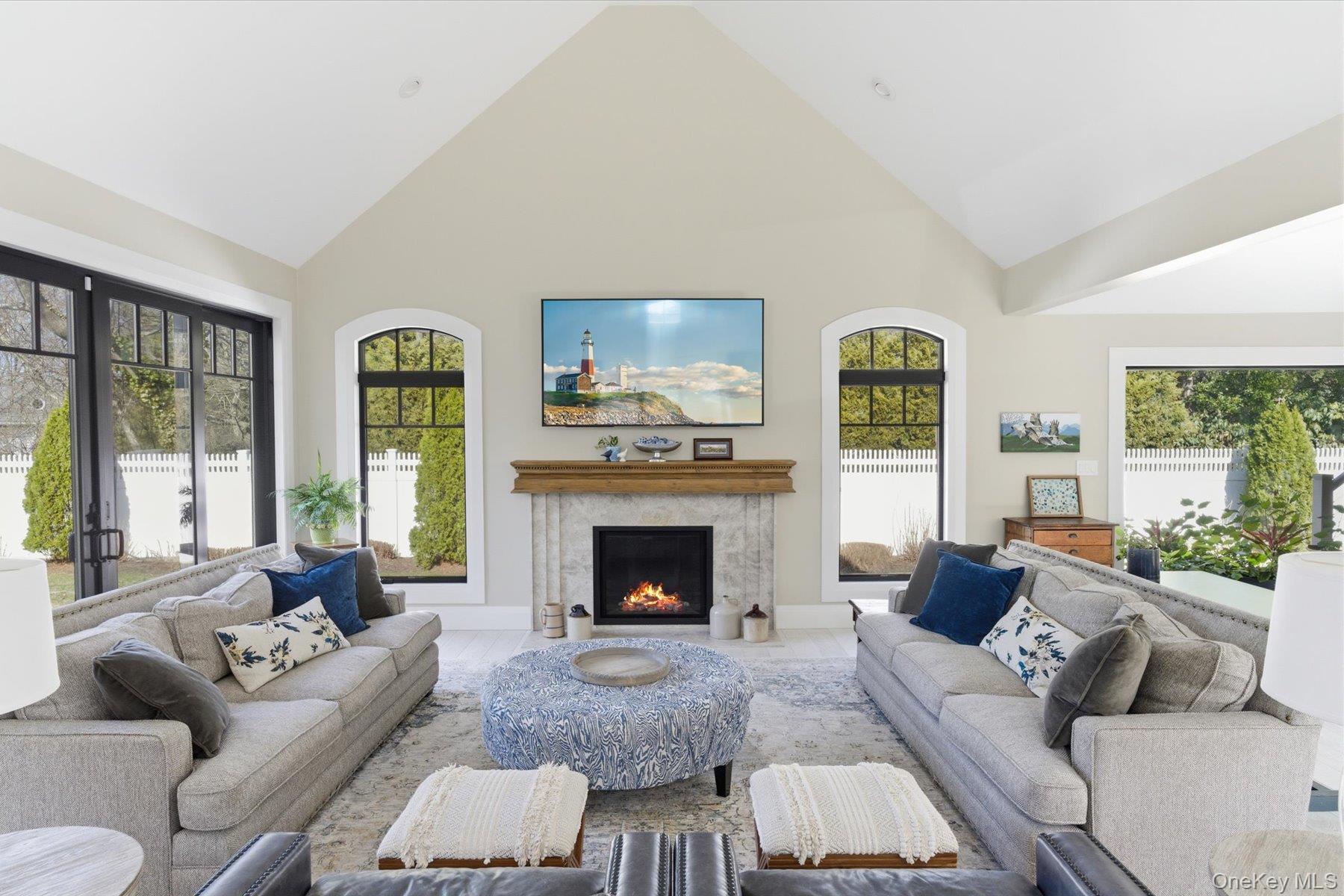 Just moments from the pristine ocean beaches in the coveted Quogue Village, this elegant estate offers 4, 200± square feet of luxurious living on a beautifully landscaped and low maintenance 0. 63± acre property. With 5 bedrooms, 5 full baths, and 2 half baths, the home's thoughtful design combines sophistication and comfort. From the sunlit foyer, step into an open-concept living space featuring vaulted ceilings, a cozy fireplace, and a chef's kitchen complete with high-end appliances, a spacious island, and exquisite details throughout. The main level boasts a tranquil primary suite with a spa-inspired bathroom, including a glass-enclosed steam shower, deep soaking tub, and radiant-heated floors. Separate guest quarters with a private entrance provide an ideal retreat for visitors. Outside, the grounds are a private paradise, offering a heated gunite pool, a spacious patio for al fresco dining, and lush, manicured landscaping that creates a serene atmosphere for relaxation or entertaining. A whole house generator ensures uninterrupted comfort and peace of mind year-round. Perfectly situated near Quogue Village Main Street and Hampton Jitney stops, this home offers unmatched convenience while maintaining a peaceful retreat-like setting. Whether you're lounging by the pool or enjoying the nearby beaches, this property delivers the quintessential Hamptons lifestyle.