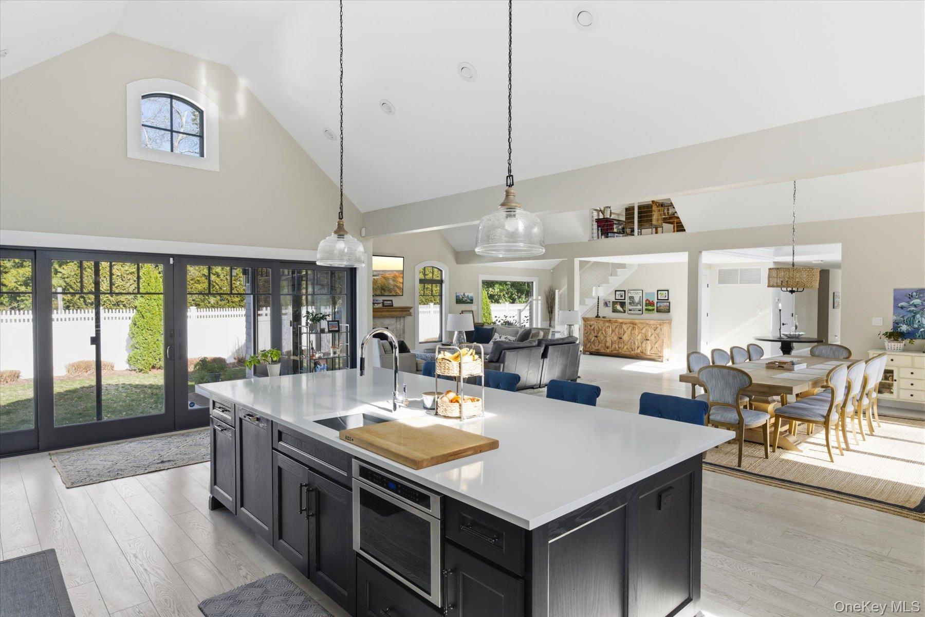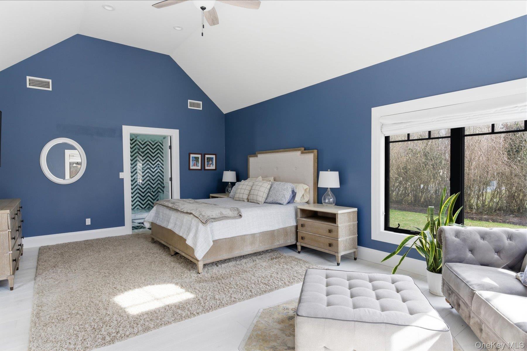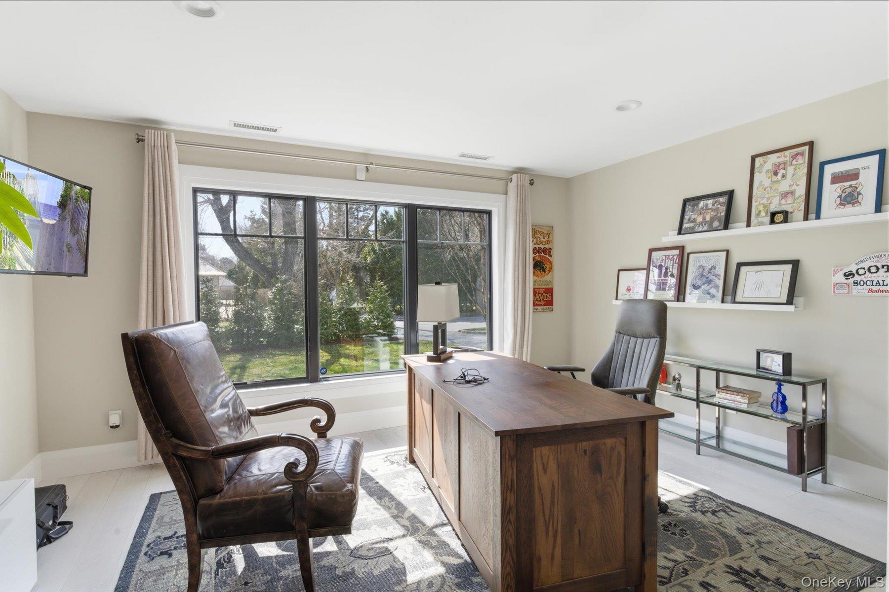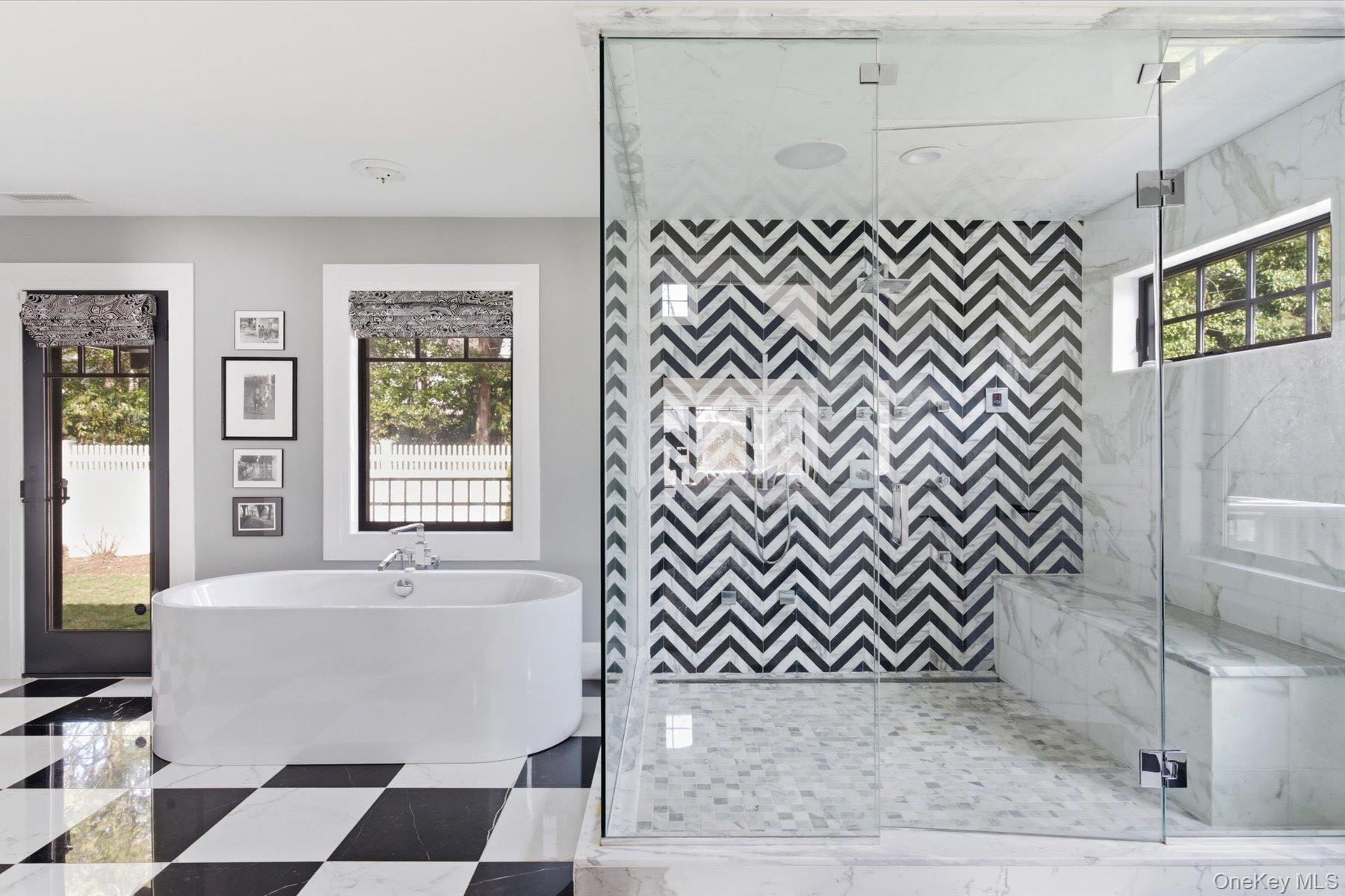 Just moments from the pristine ocean beaches in the coveted Quogue Village, this elegant estate offers 4, 200± square feet of luxurious living on a beautifully landscaped and low maintenance 0. 63± acre property. With 5 bedrooms, 5 full baths, and 2 half baths, the home's thoughtful design combines sophistication and comfort. From the sunlit foyer, step into an open-concept living space featuring vaulted ceilings, a cozy fireplace, and a chef's kitchen complete with high-end appliances, a spacious island, and exquisite details throughout. The main level boasts a tranquil primary suite with a spa-inspired bathroom, including a glass-enclosed steam shower, deep soaking tub, and radiant-heated floors. Separate guest quarters with a private entrance provide an ideal retreat for visitors. Outside, the grounds are a private paradise, offering a heated gunite pool, a spacious patio for al fresco dining, and lush, manicured landscaping that creates a serene atmosphere for relaxation or entertaining. A whole house generator ensures uninterrupted comfort and peace of mind year-round. Perfectly situated near Quogue Village Main Street and Hampton Jitney stops, this home offers unmatched convenience while maintaining a peaceful retreat-like setting. Whether you're lounging by the pool or enjoying the nearby beaches, this property delivers the quintessential Hamptons lifestyle.