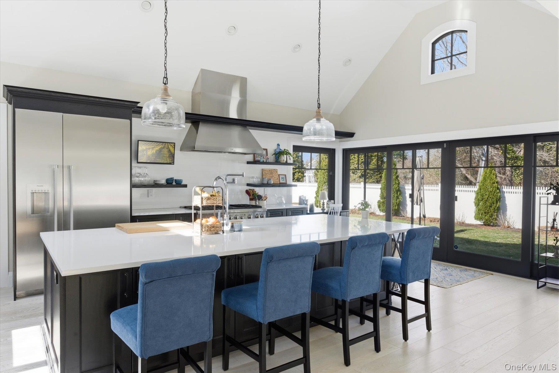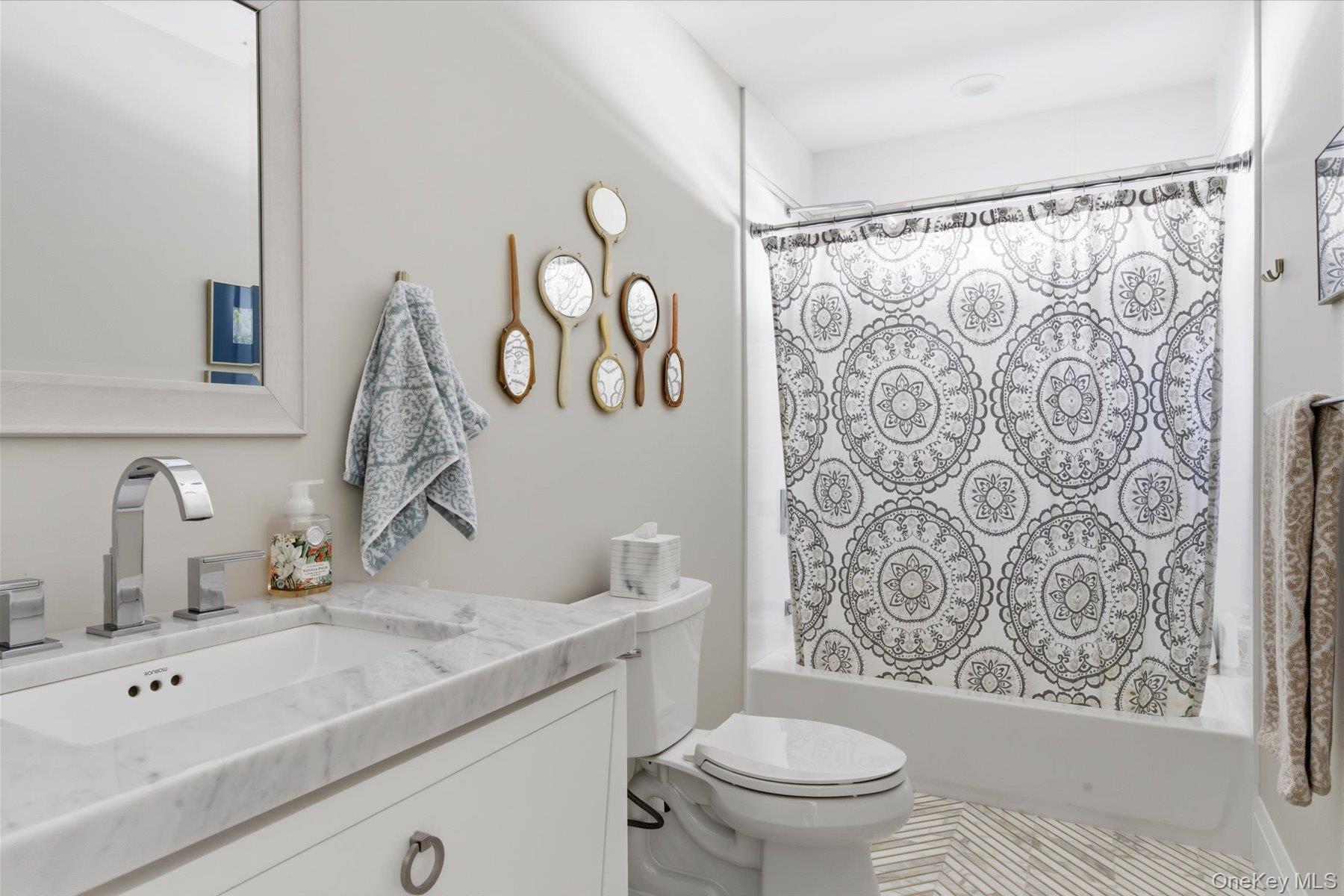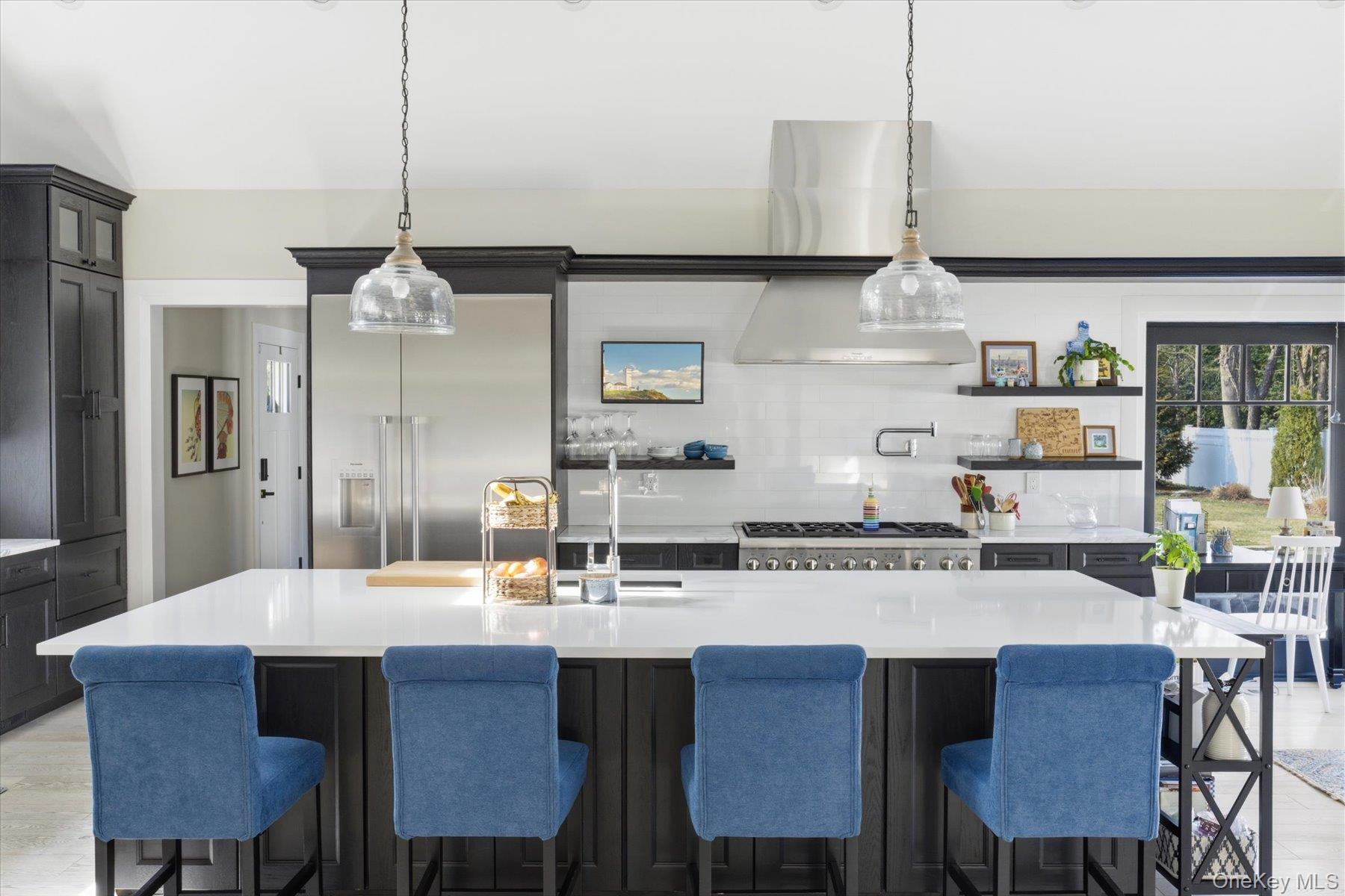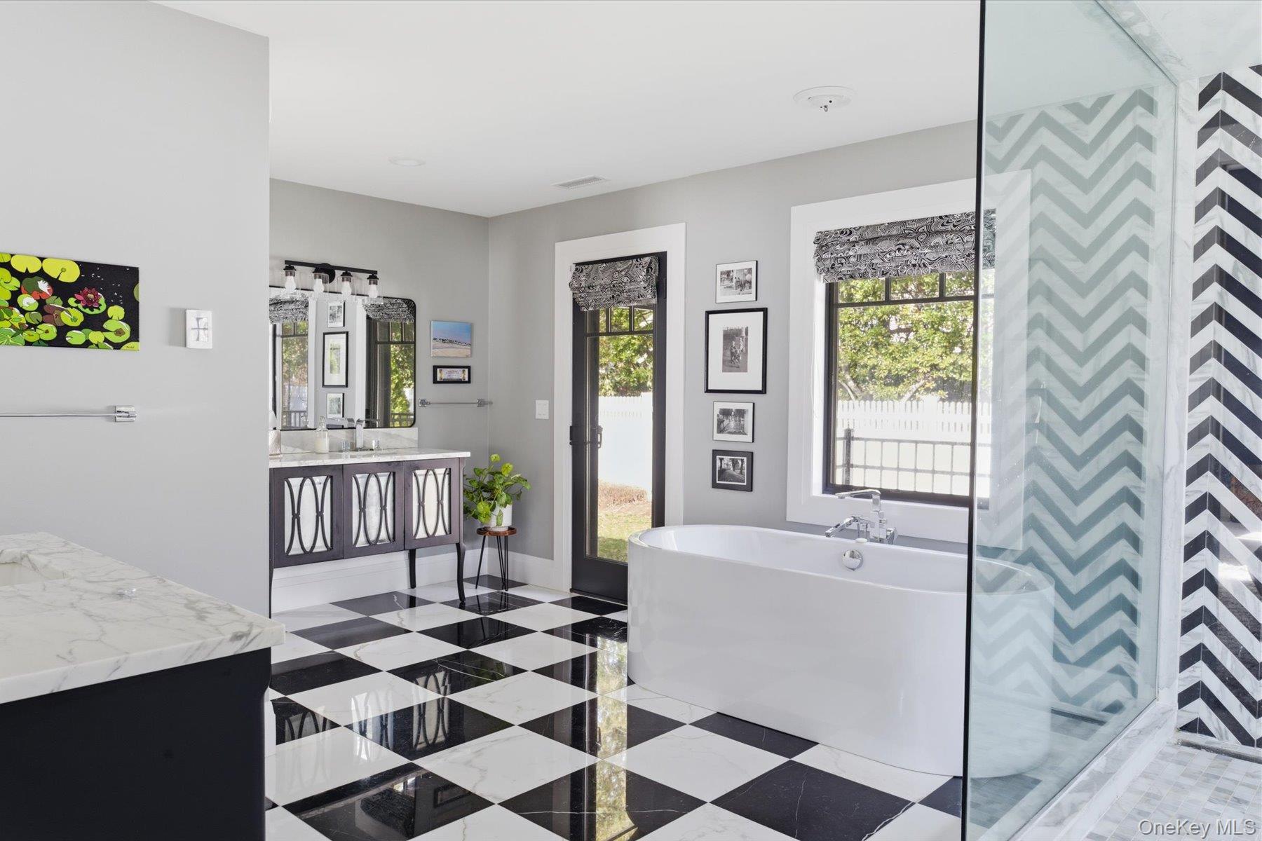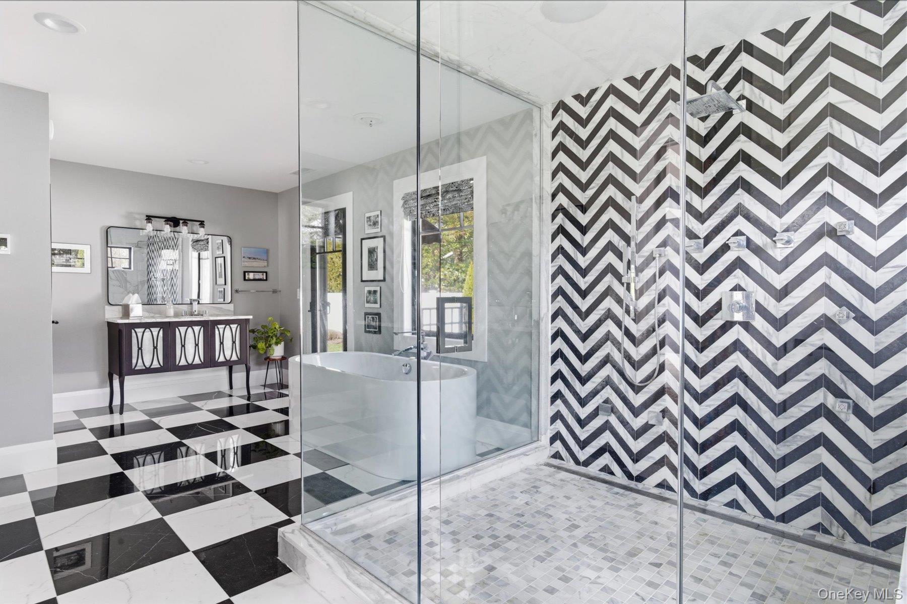 Just moments from the pristine ocean beaches in the coveted Quogue Village, this elegant estate offers 4, 200± square feet of luxurious living on a beautifully landscaped and low maintenance 0. 63± acre property. With 5 bedrooms, 5 full baths, and 2 half baths, the home's thoughtful design combines sophistication and comfort. From the sunlit foyer, step into an open-concept living space featuring vaulted ceilings, a cozy fireplace, and a chef's kitchen complete with high-end appliances, a spacious island, and exquisite details throughout. The main level boasts a tranquil primary suite with a spa-inspired bathroom, including a glass-enclosed steam shower, deep soaking tub, and radiant-heated floors. Separate guest quarters with a private entrance provide an ideal retreat for visitors. Outside, the grounds are a private paradise, offering a heated gunite pool, a spacious patio for al fresco dining, and lush, manicured landscaping that creates a serene atmosphere for relaxation or entertaining. A whole house generator ensures uninterrupted comfort and peace of mind year-round. Perfectly situated near Quogue Village Main Street and Hampton Jitney stops, this home offers unmatched convenience while maintaining a peaceful retreat-like setting. Whether you're lounging by the pool or enjoying the nearby beaches, this property delivers the quintessential Hamptons lifestyle.