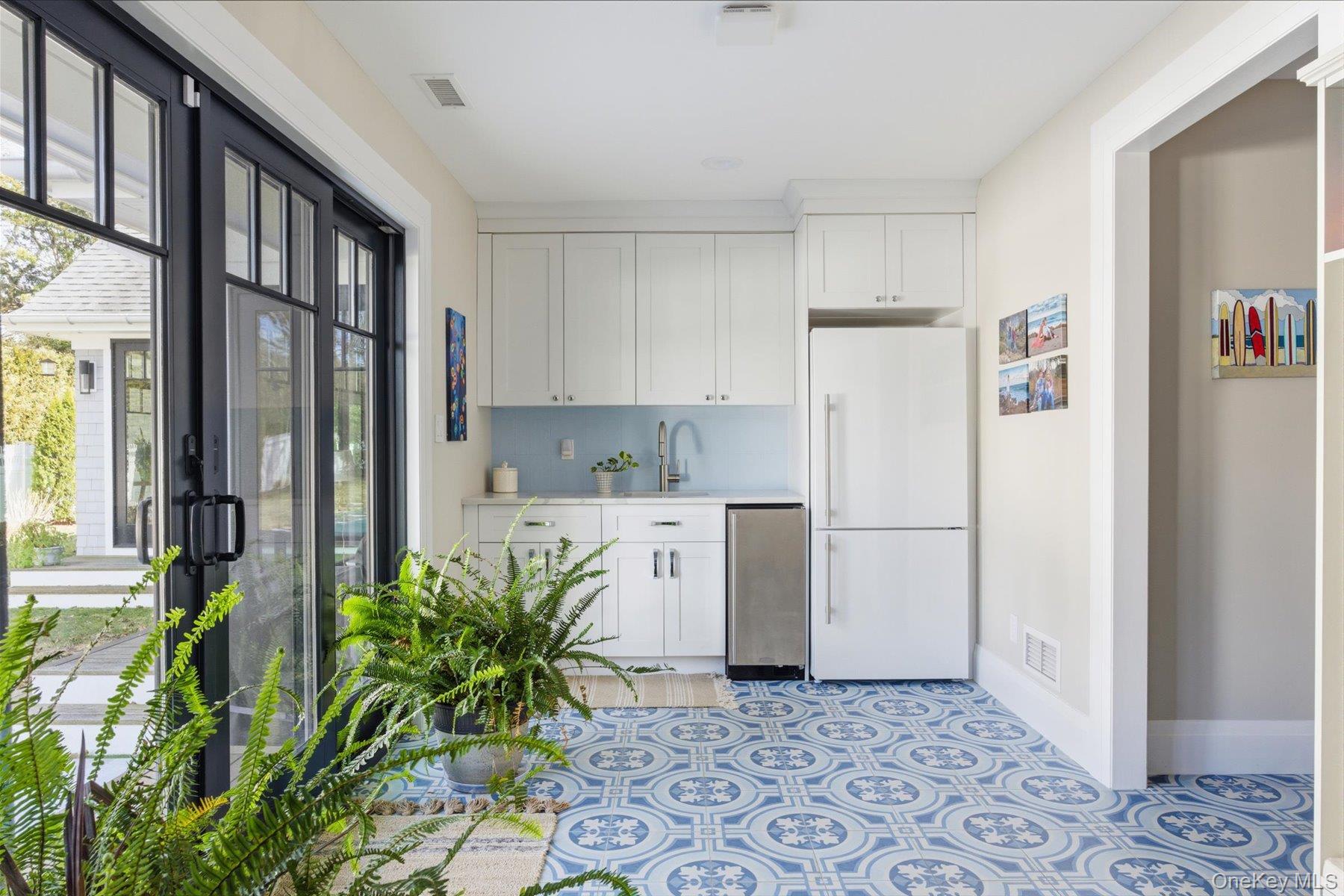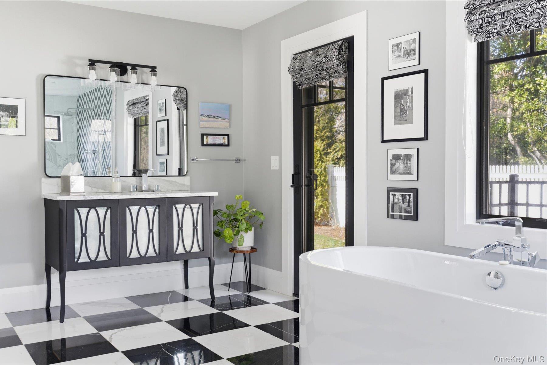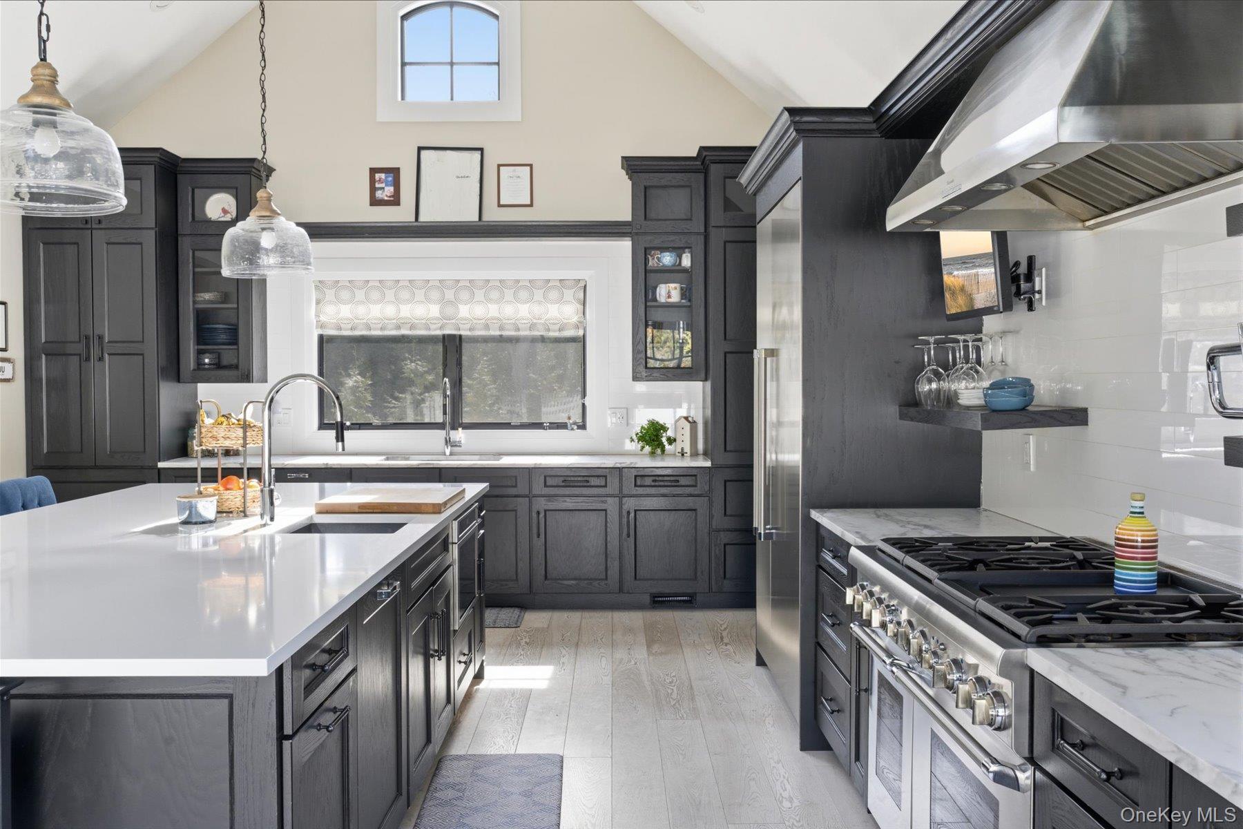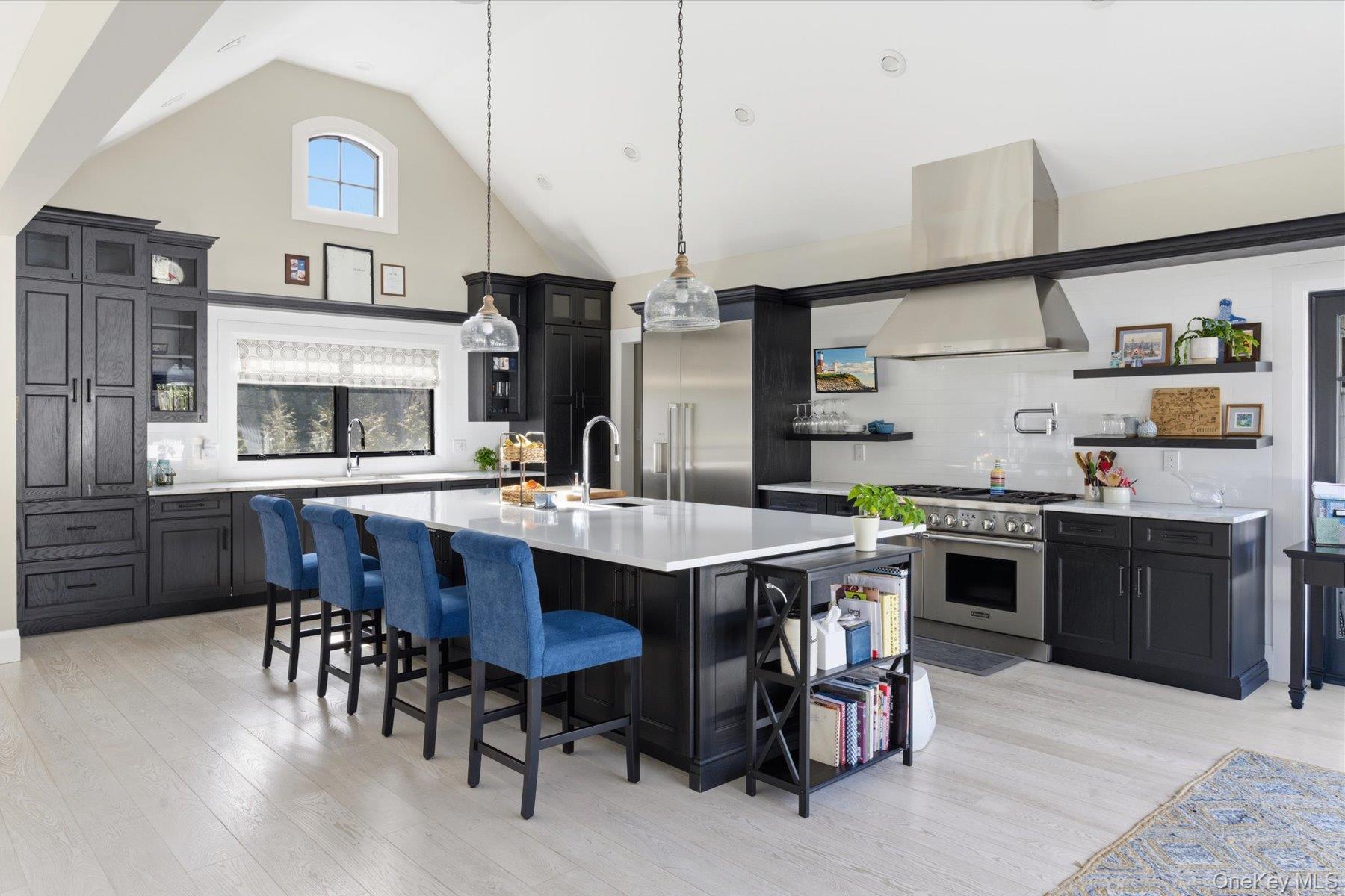 Just moments from the pristine ocean beaches in the coveted Quogue Village, this elegant estate offers 4, 200± square feet of luxurious living on a beautifully landscaped and low maintenance 0. 63± acre property. With 5 bedrooms, 5 full baths, and 2 half baths, the home's thoughtful design combines sophistication and comfort. From the sunlit foyer, step into an open-concept living space featuring vaulted ceilings, a cozy fireplace, and a chef's kitchen complete with high-end appliances, a spacious island, and exquisite details throughout. The main level boasts a tranquil primary suite with a spa-inspired bathroom, including a glass-enclosed steam shower, deep soaking tub, and radiant-heated floors. Separate guest quarters with a private entrance provide an ideal retreat for visitors. Outside, the grounds are a private paradise, offering a heated gunite pool, a spacious patio for al fresco dining, and lush, manicured landscaping that creates a serene atmosphere for relaxation or entertaining. A whole house generator ensures uninterrupted comfort and peace of mind year-round. Perfectly situated near Quogue Village Main Street and Hampton Jitney stops, this home offers unmatched convenience while maintaining a peaceful retreat-like setting. Whether you're lounging by the pool or enjoying the nearby beaches, this property delivers the quintessential Hamptons lifestyle.