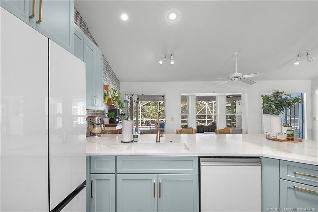 STUART - CBS home on a private . 28-acre corner lot just 1 mile from Downtown Stuart. Beautifully renovated kitchen with quartz countertops, wood cabinetry, and coastal finishes, plus an updated primary suite with spa-style bath, soaking tub, and walk-in shower. Vaulted ceilings, oak flooring, and a den! Enjoy indoor-outdoor living with two sets of French doors leading to a covered, screened lanai with heated saltwater pool and cabana bath. Fully fenced yard with privacy hedge, mature landscaping, and no HOA. Minutes to beaches, dining, golf, boating, Downtown Stuart’s many attractions, and quick access to I-95 & Florida’s Turnpike.