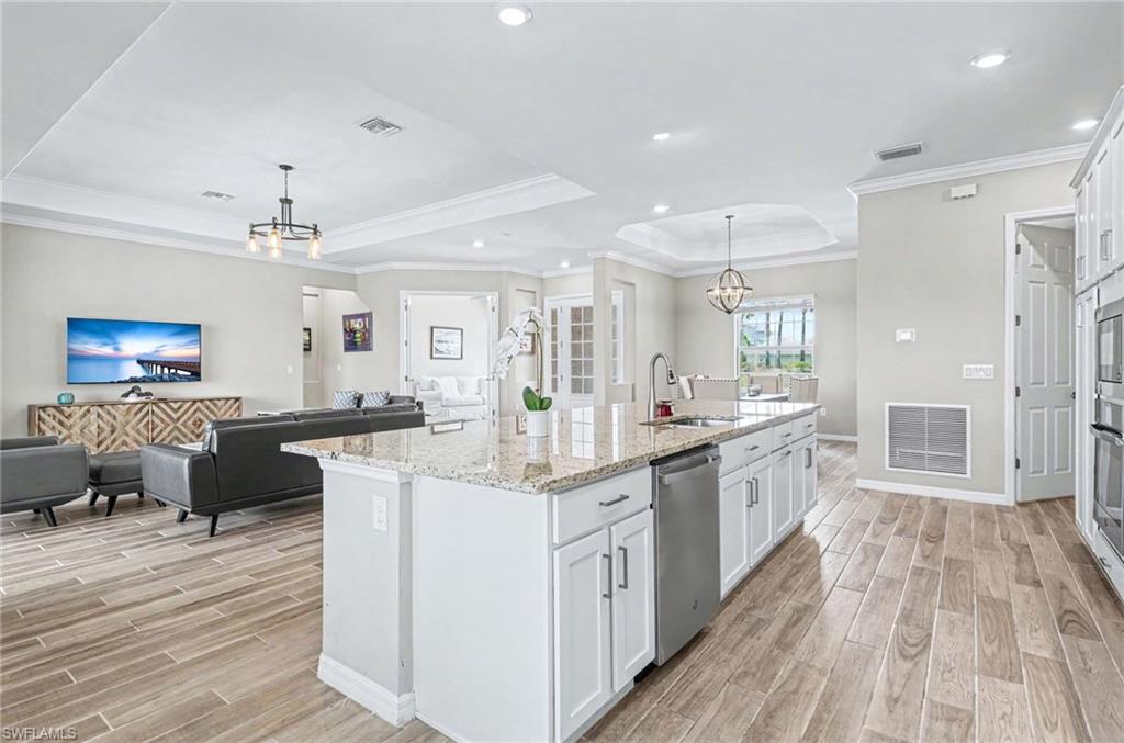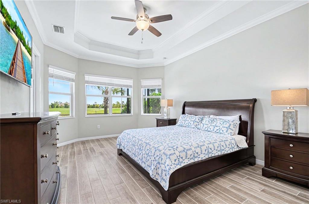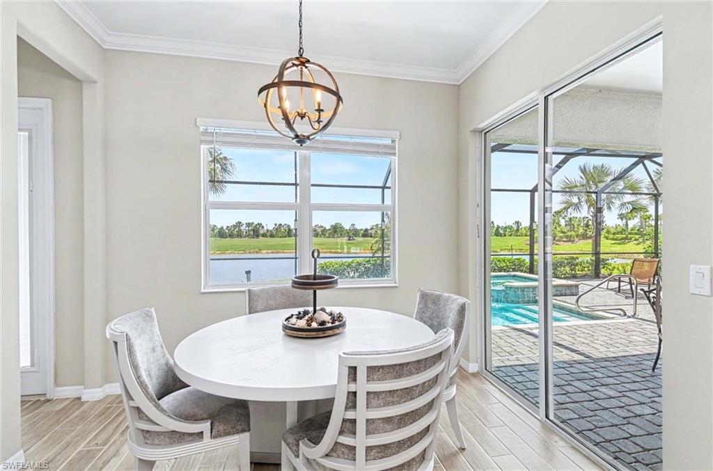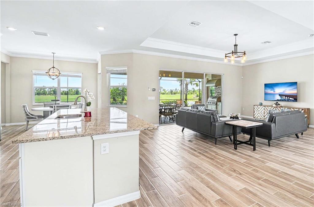 Set on a 75-foot wide frontage homesite, the property offers outstanding golf course and lake views. The outdoor living area includes a gas-heated pool and spa along with an outdoor kitchen, creating a perfect space for relaxing or entertaining.