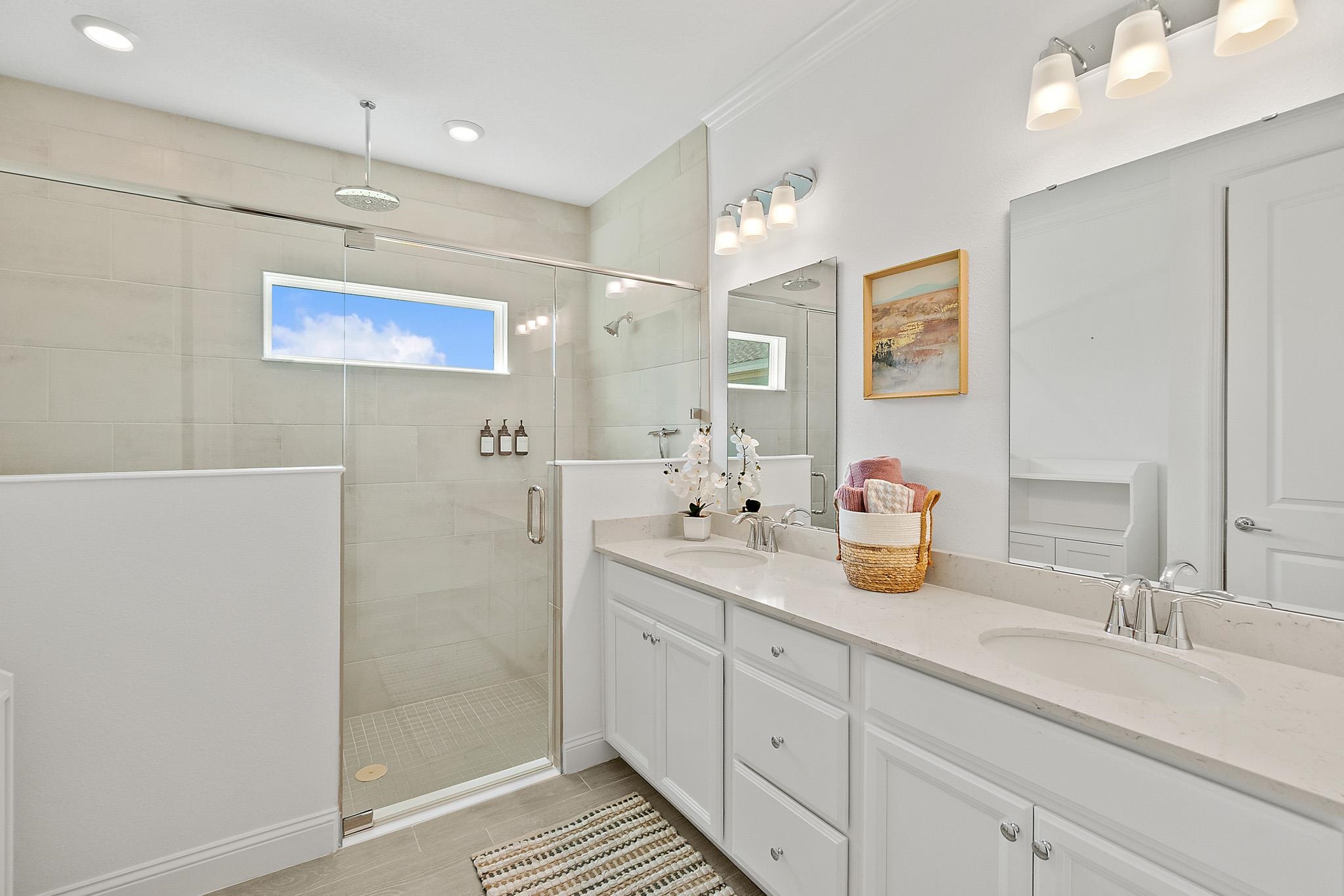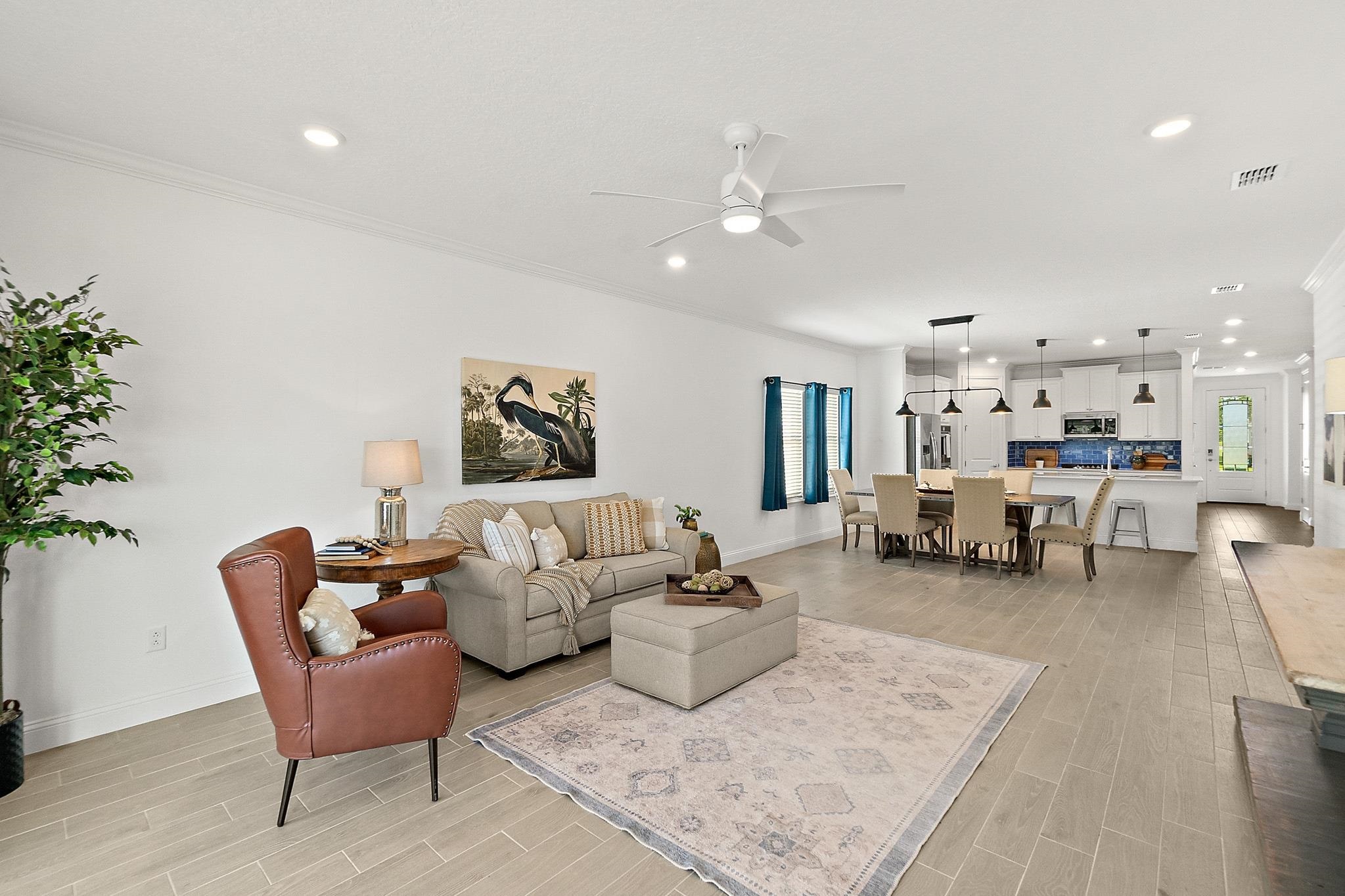 Welcome to this move-in ready 3-bedroom, 2-bath home offering 2, 126 sq ft of thoughtfully designed living space in the sought-after Stillwater 55+ gated community in St. Johns, Florida. This home features an open-concept floor plan with tile flooring throughout, quartz countertops, a gas range, and a double oven—perfect for everyday living and entertaining. The spacious layout includes two separate living areas plus a dedicated bonus room ideal for a home office or flex space. The owner’s suite offers a large walk-in closet and a luxurious walk-in shower with dual shower heads and an overhead rain shower for a true spa-like experience. A dedicated laundry room adds convenience, while the screened-in patio provides a peaceful outdoor retreat overlooking a serene water view. Enjoy low-maintenance living with lawn care and many exterior services handled by the HOA—giving you more time to relax and enjoy the lifestyle you deserve. Stillwater offers resort-style amenities including a swimming pool, clubhouse, full-service restaurant and bar, fitness center, dog park, and a bundled 18-hole golf course designed by Bobby Weed. Practice your swing at the Toptracer driving range or connect with neighbors through the community’s active social calendar and full-time management team. Conveniently located with easy access to Durbin Park shopping, dining, medical centers, and the beautiful beaches of Northeast Florida. Experience the perfect blend of comfort, convenience, and active adult living—schedule your private showing today!