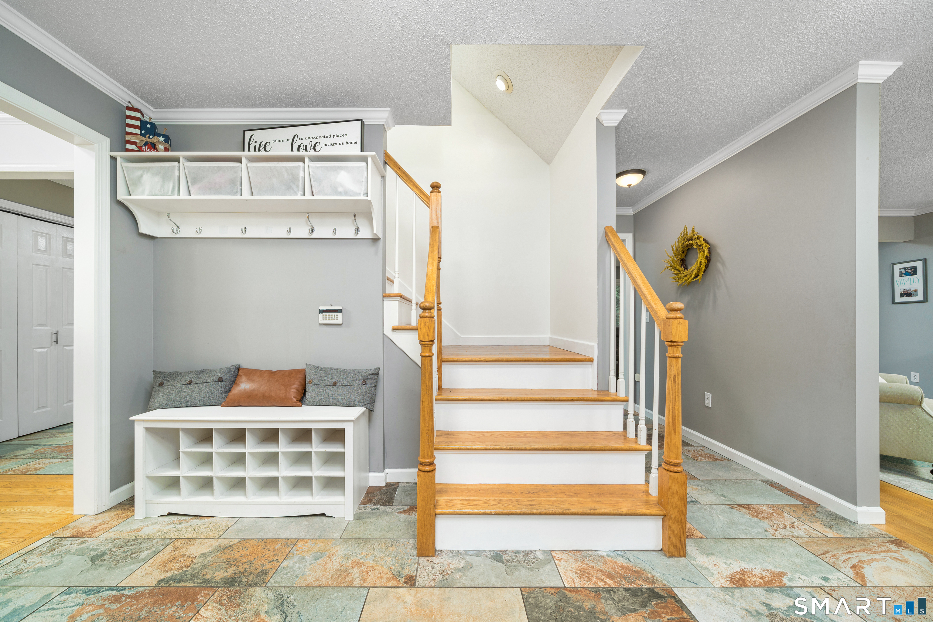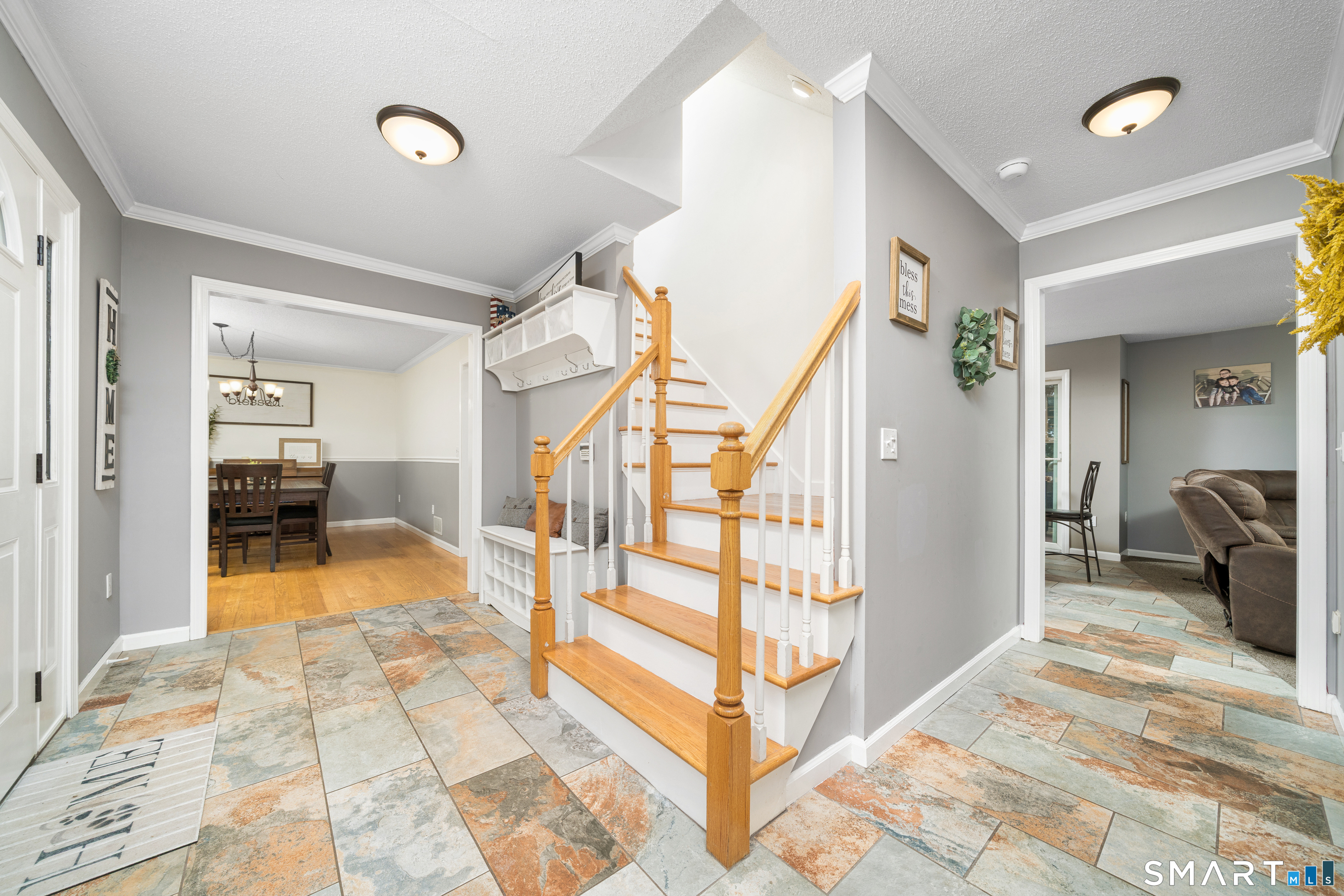 Beautiful, move-in ready 4-bedroom home with 2 full and 2 half baths-and a BRAND NEW ROOF! This home offers spacious rooms and a versatile layout designed for today's lifestyle. All bedrooms are generously sized, including a primary suite featuring a large bedroom and an expansive private bath. The bright, open main level showcases a stunning kitchen with a large island and eat-in area, with direct access to the back deck overlooking a peaceful wooded setting. The kitchen flows seamlessly into the family room-perfect for everyday living and entertaining. A formal living room, dining room, and open entryway complete the inviting first floor. The walkout lower level has been updated with vinyl plank flooring and is currently used as a home gym, offering direct access to the two-car under-house garage and fenced-in backyard. A finished bonus room in the walk-up attic provides ideal space for a home office or flexible use. With its updates, space, and desirable layout, this home checks all the boxes-schedule your showing today before it's gone!