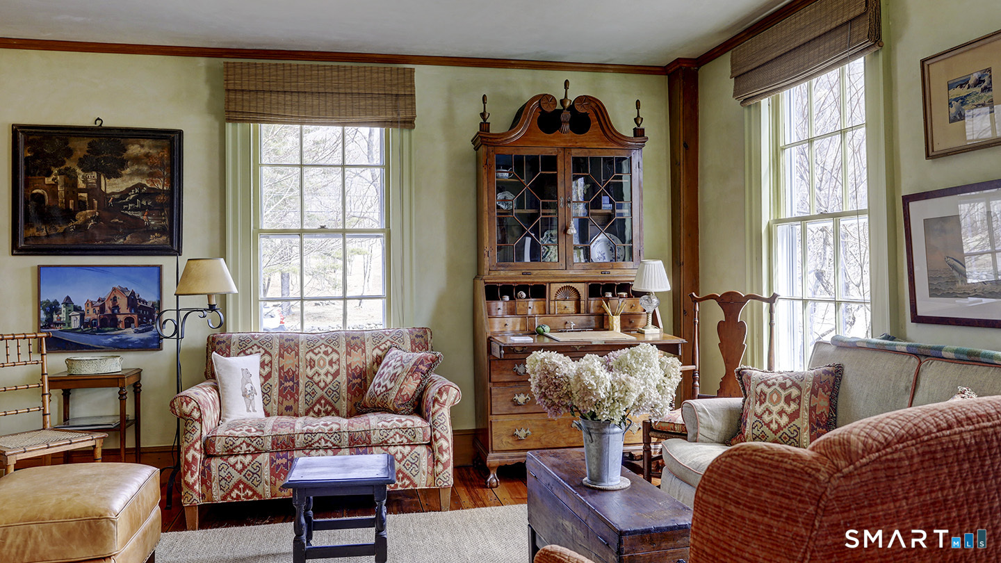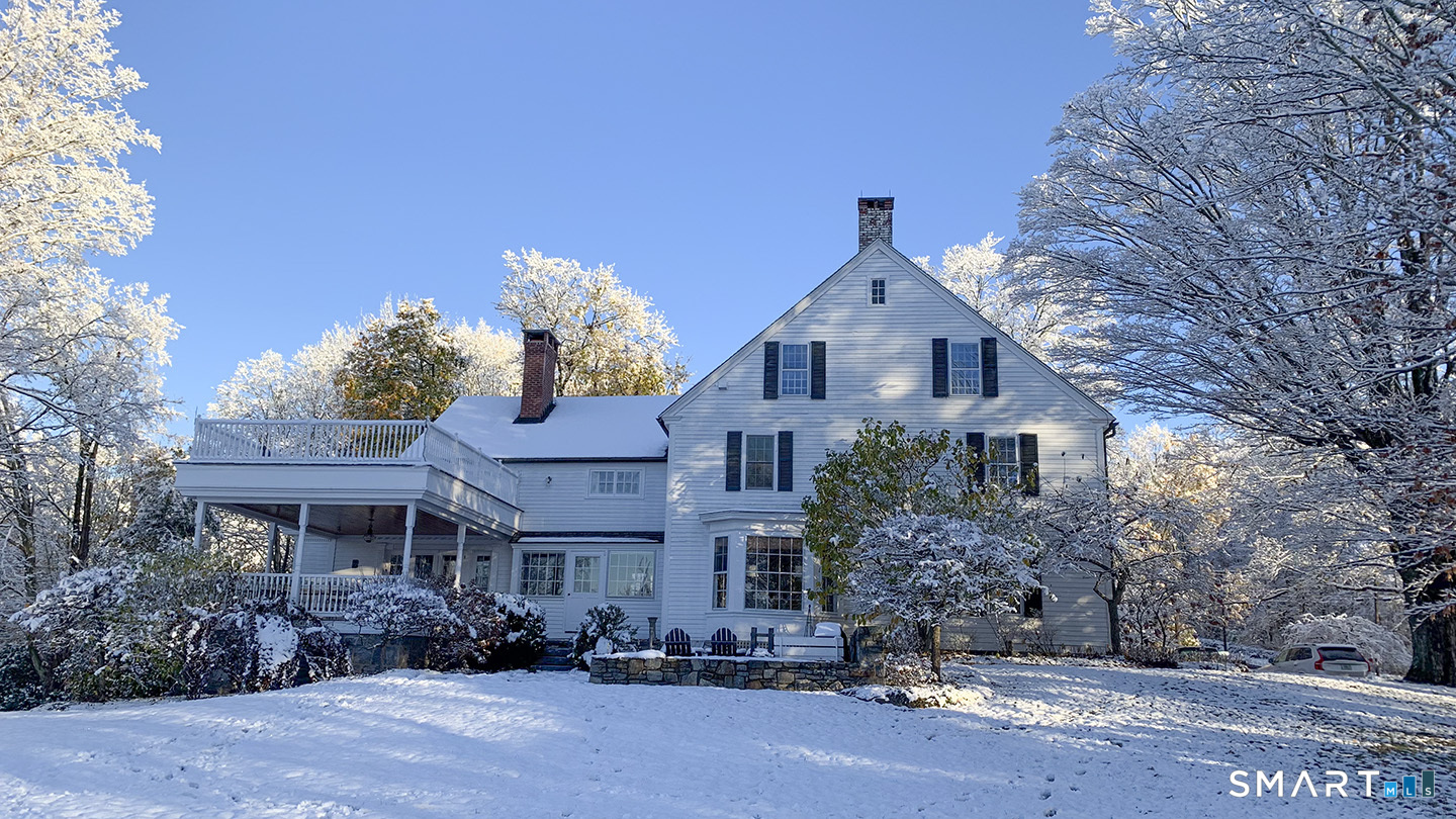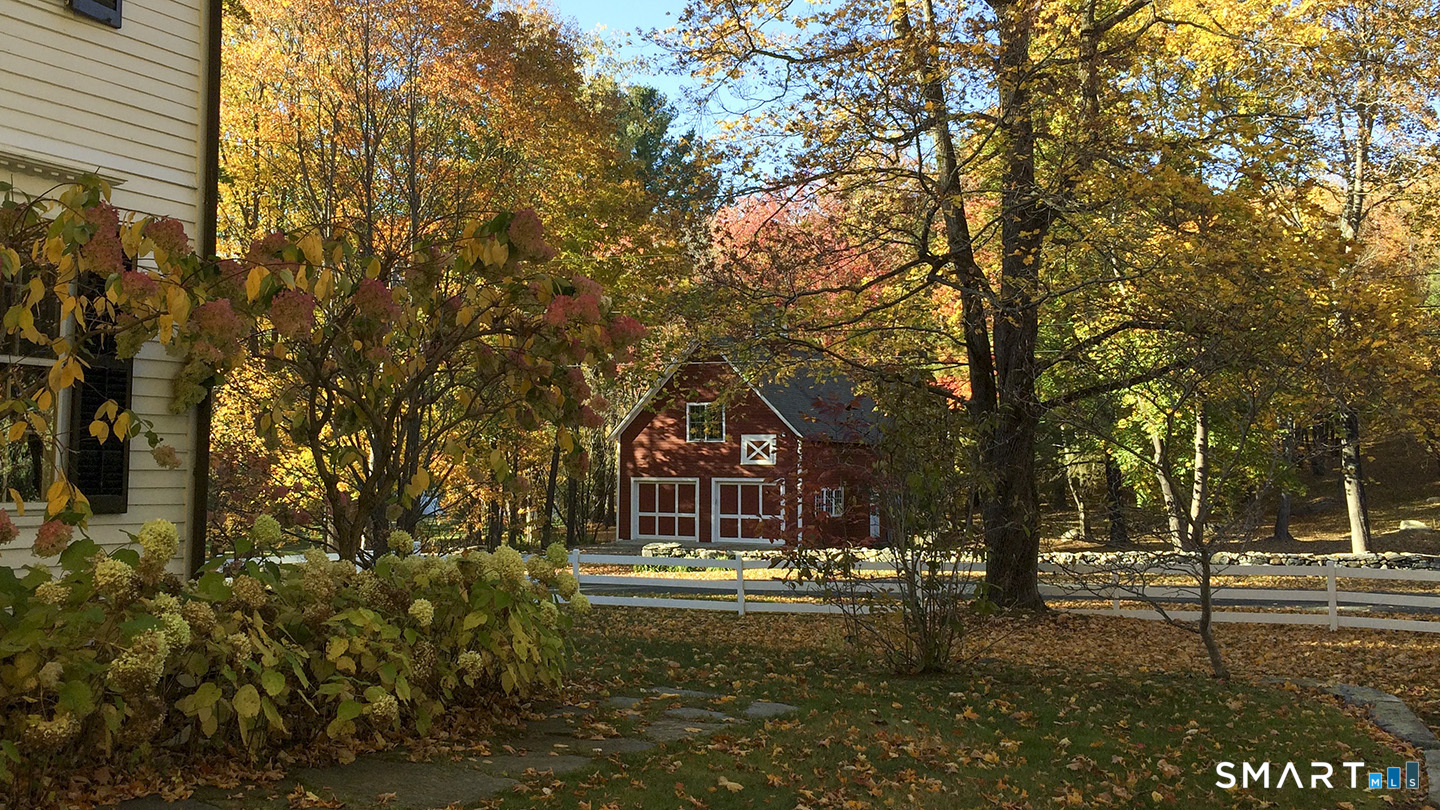 Corner house is a magnificent 1790 Center Hall Colonial with its 2-car detached garage/barn and beautifully landscaped saltwater pool on a total of 15. 46 acres with wide open south-westerly views of Haystack Mountain. Many original features including built-in cabinets and woodwork, wide board floors, plaster walls and windows. The entire property has been thoughtfully restored and exceptionally well cared for. Step inside and you are greeted by a large entry hall with original wide pine floors, high ceilings, plaster walls, and elegant open staircase. Four rooms flank the entrance hall, each a unique mix of plaster walls, original built in cabinetry, wood paneling and fireplaces. At the far end of the entry hall is the dining room with carved antique mantle and surround. Double glass doors lead to the kitchen, screened porch, bathroom, laundry room, and an attached early Colonial guest house -- great for overflow. The porch was screened with invisible screens in 2025 with south western exposure and sweeping views of the grounds to Haystack Mountain. Along a wide hallway on the second floor with a lovely window seat are five bedrooms and three full baths. The primary has a plastered chimney with raised fireplace, walk in closet, built-ins, window seat, open-air wraparound deck, and en-suite bath with tiled shower, tub, and two sinks. At one end of the garden is a Gunnite pool with a waterfall. Fenced and landscaped with mature hydrangeas. Complete with a pool house.