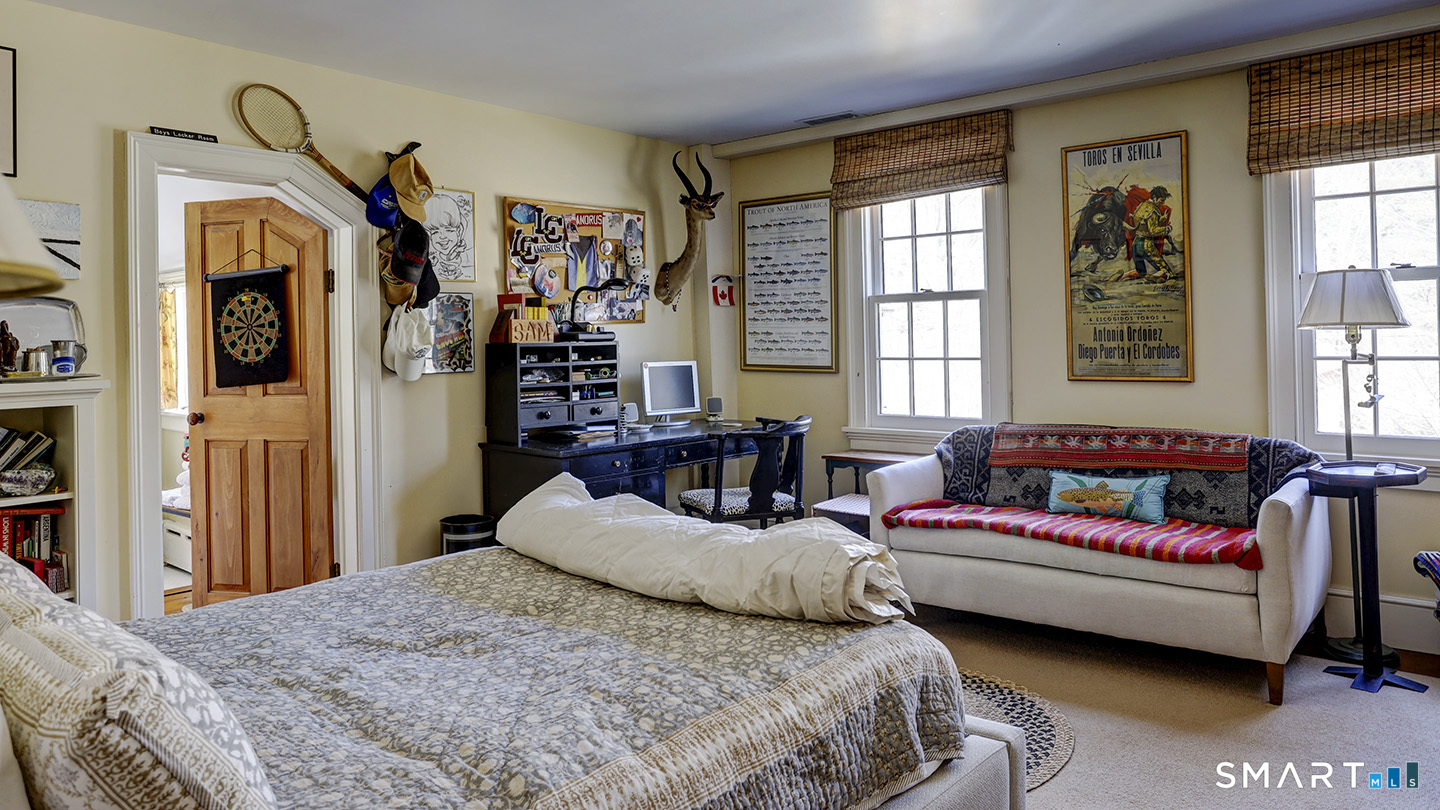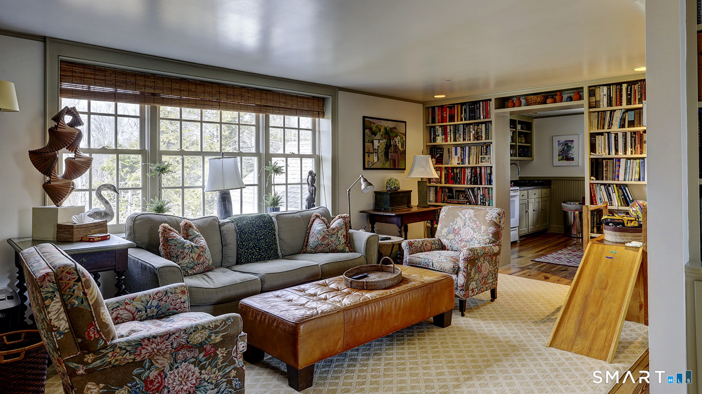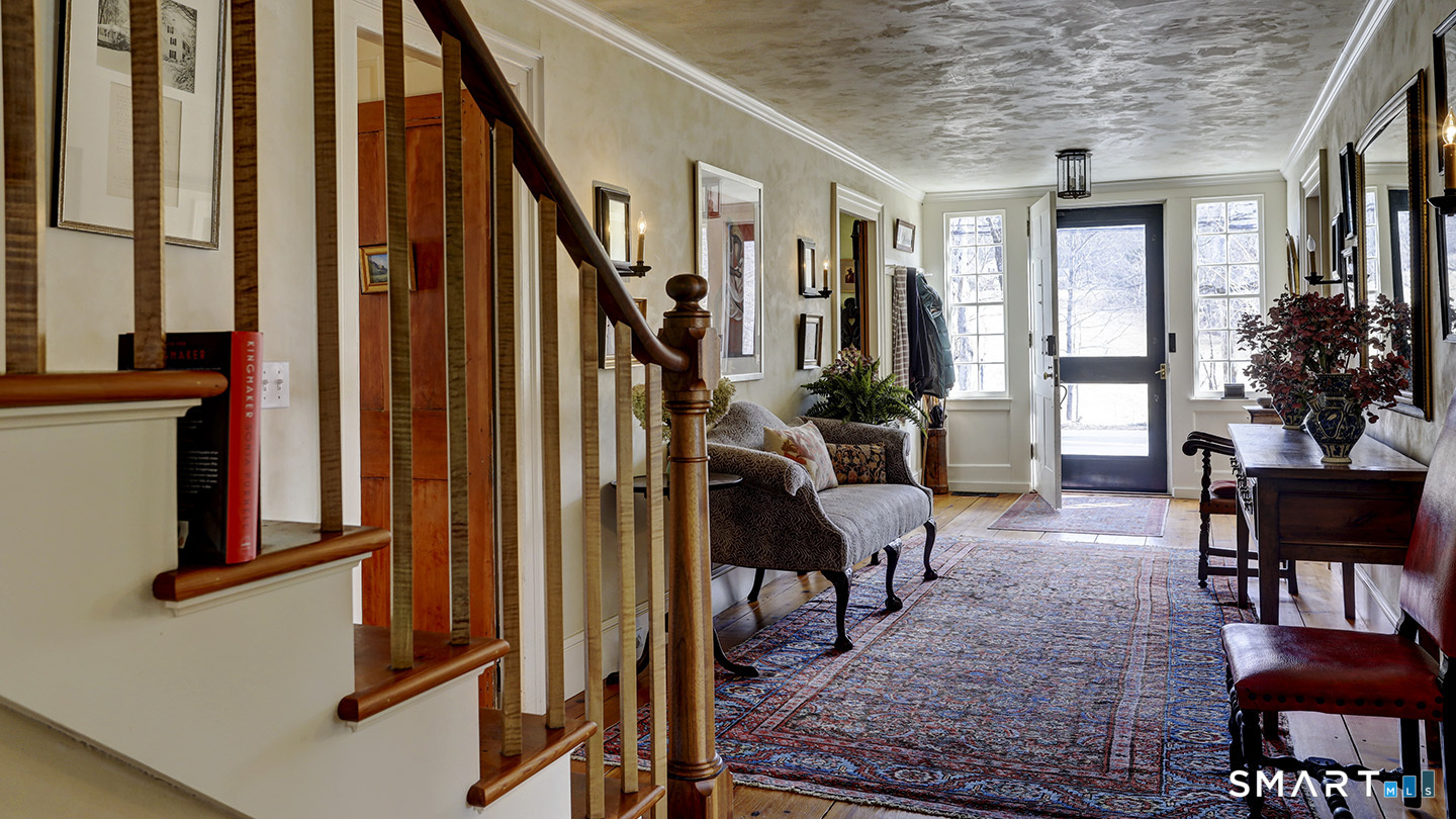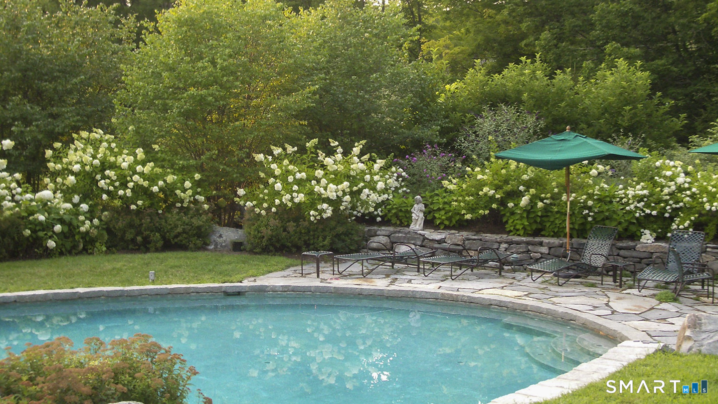 Corner house is a magnificent 1790 Center Hall Colonial with its 2-car detached garage/barn and beautifully landscaped saltwater pool on a total of 15. 46 acres with wide open south-westerly views of Haystack Mountain. Many original features including built-in cabinets and woodwork, wide board floors, plaster walls and windows. The entire property has been thoughtfully restored and exceptionally well cared for. Step inside and you are greeted by a large entry hall with original wide pine floors, high ceilings, plaster walls, and elegant open staircase. Four rooms flank the entrance hall, each a unique mix of plaster walls, original built in cabinetry, wood paneling and fireplaces. At the far end of the entry hall is the dining room with carved antique mantle and surround. Double glass doors lead to the kitchen, screened porch, bathroom, laundry room, and an attached early Colonial guest house -- great for overflow. The porch was screened with invisible screens in 2025 with south western exposure and sweeping views of the grounds to Haystack Mountain. Along a wide hallway on the second floor with a lovely window seat are five bedrooms and three full baths. The primary has a plastered chimney with raised fireplace, walk in closet, built-ins, window seat, open-air wraparound deck, and en-suite bath with tiled shower, tub, and two sinks. At one end of the garden is a Gunnite pool with a waterfall. Fenced and landscaped with mature hydrangeas. Complete with a pool house.