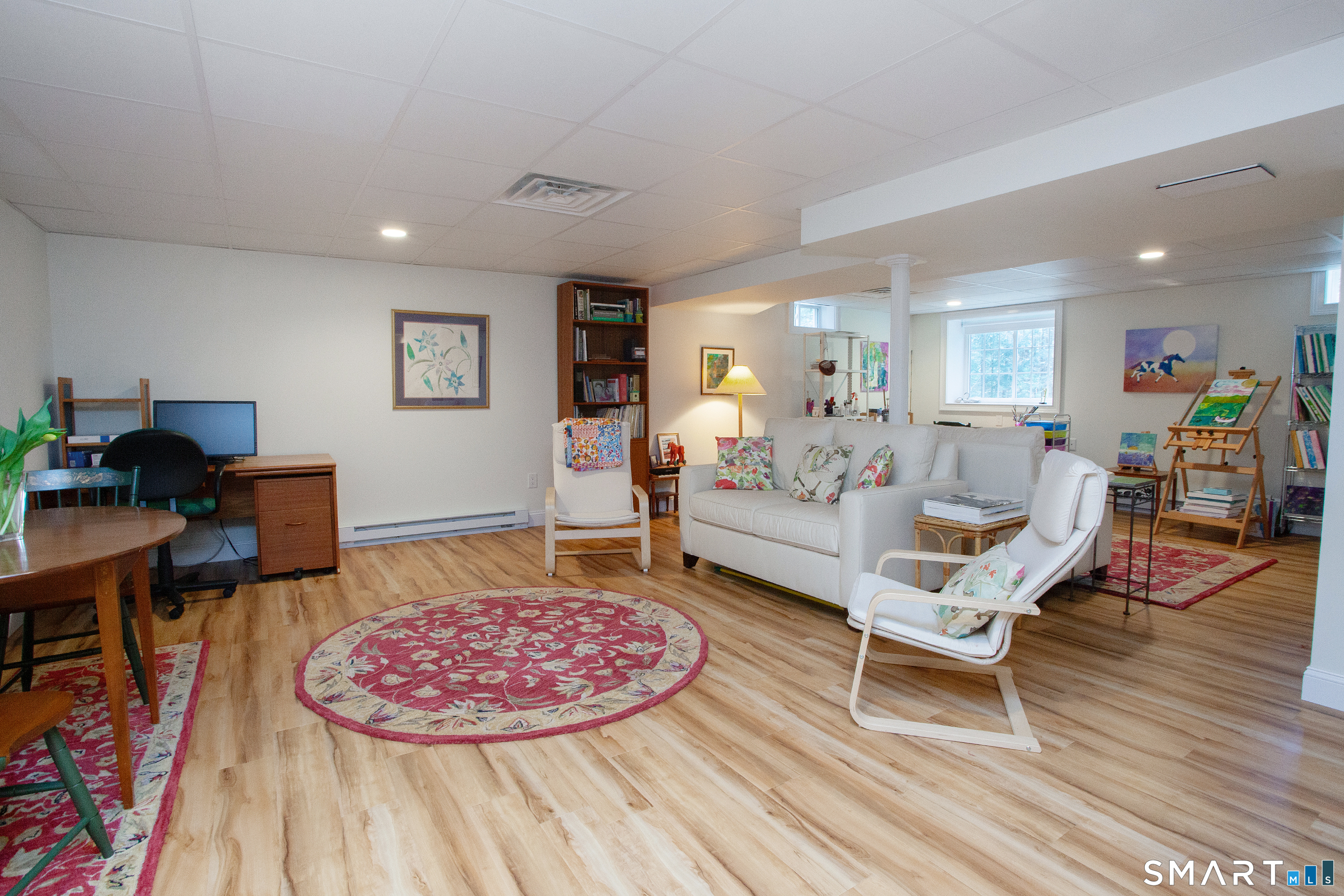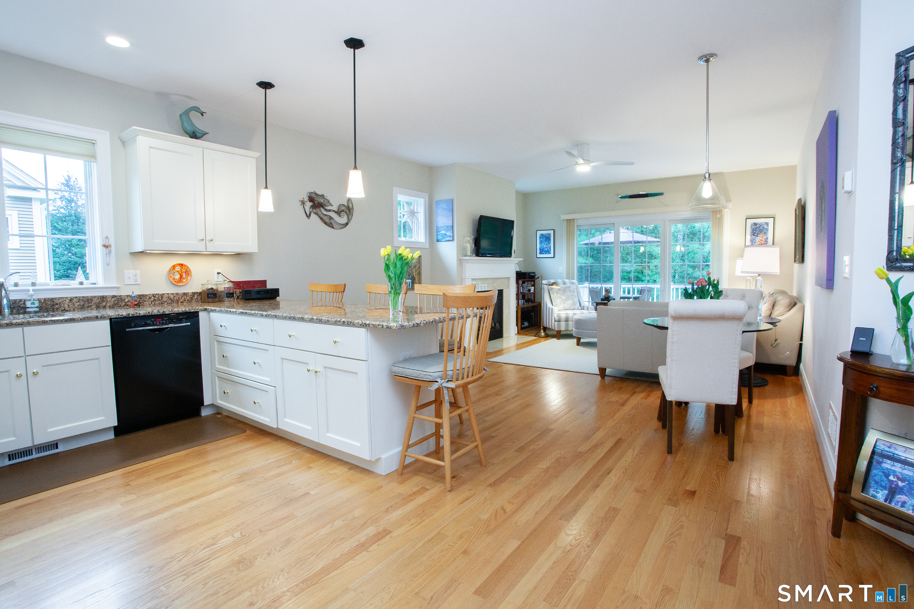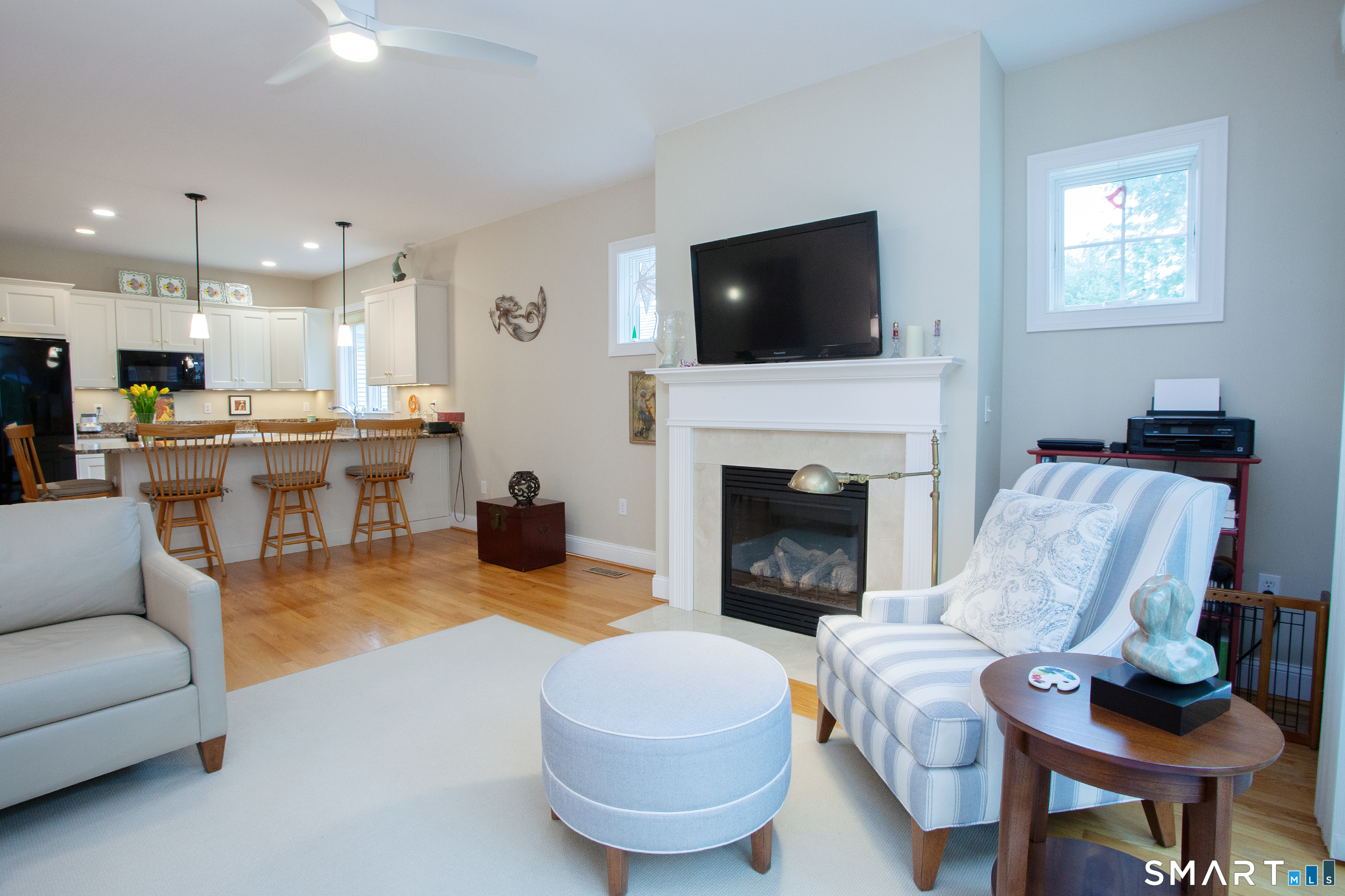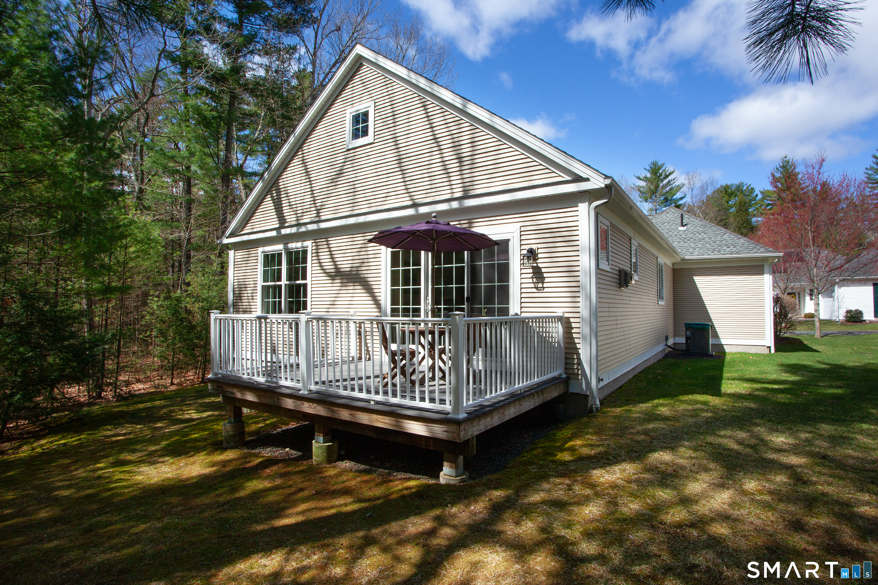 A rare opportunity to own in Simsbury's highly sought after 55+ community of Powder Forest, this pristine "Ardmore" model end unit offers the perfect blend of comfort, space, and privacy. Ideally situated at the edge of the community, the home abuts peaceful forest, creating a quiet & scenic backdrop. Inside, gleaming hardwood floors flow throughout, enhancing the bright, open concept layout. The spacious kitchen features granite countertops, ample cabinetry, & generous prep space, seamlessly opening to the dining & living areas-ideal for both everyday living and entertaining. The sun-filled living room is anchored by a cozy gas fireplace & features French doors that open directly to the outdoor deck, inviting in natural light while showcasing the surrounding landscape. The primary suite offers an en-suite bath & generous closet space. A second spacious bedroom & additional full bath provide comfort for guests or flexible use as a home office. The finished basement expands the living space & offers excellent storage options. Additional highlights include a large two car garage & a private deck, perfect for relaxing or enjoying the tranquil setting. Major updates included the furnace, water heater, & air conditioner-see list of upgrades. Located just minutes from Simsbury Center, this home provides easy access to local favorites including the Simsbury Meadows Performing Arts Center, acclaimed restaurants, Rails to Trails, nearby golf courses, & more. Don't miss this one! Beautiful freestanding unit in the highly desirable Powder Forest community. Don't miss your opportunity to own this exceptional property.