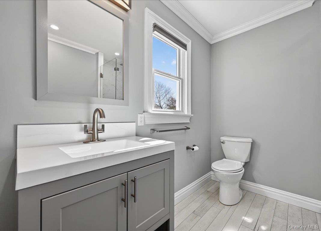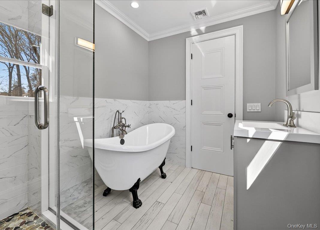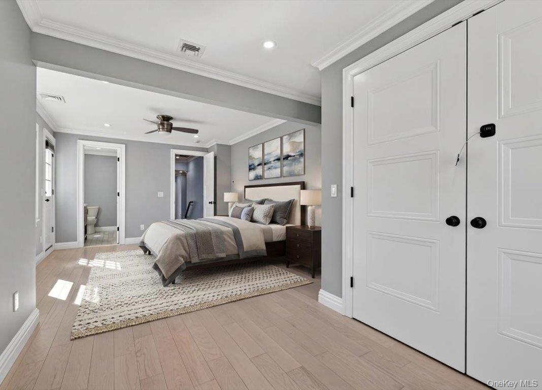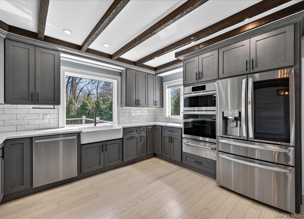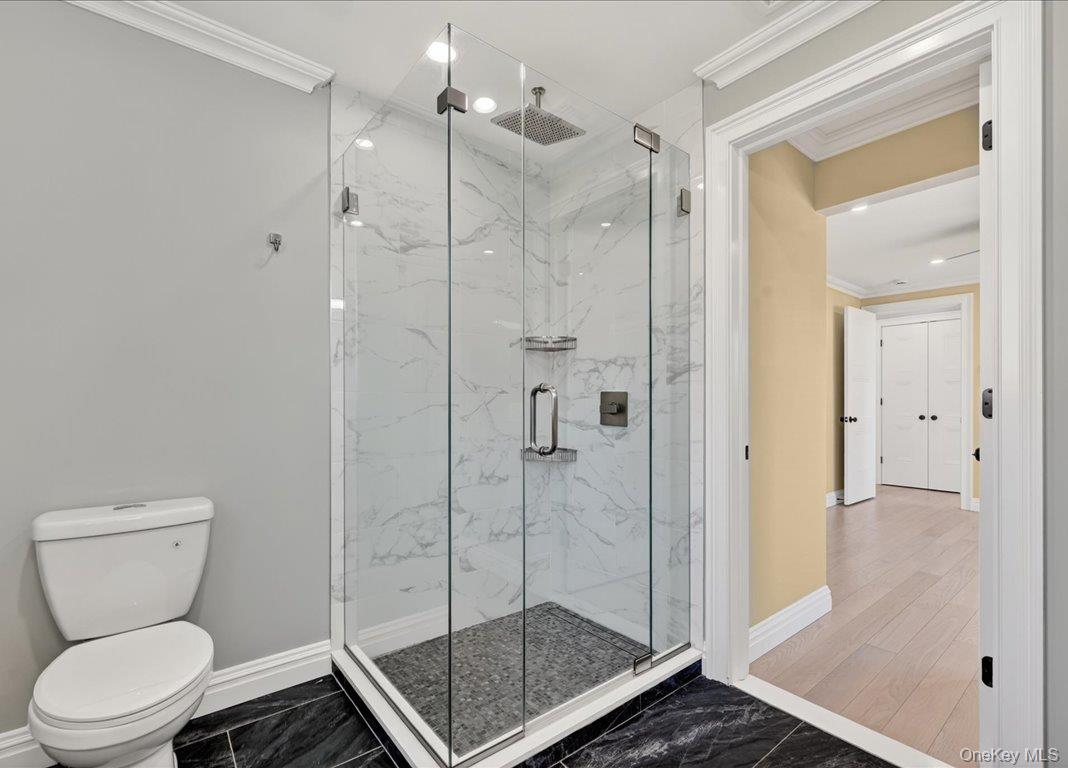 This home might take your breath away! Completely remodeled and augmented inside and out in 2023 by a master contractor, this open flowing floor plan offers higher than 8 ft ceilings, a living and dining area with beautiful tray ceiling , ceiling beams and fireplace. Its sun drenched with natural light and is exquisitely crafted with chefs kitchen, wall to wall cabinets and counter spaces, stainless appliances and farmers sink. Above all , there are 2 primary bedroom suites! One on the main floor and one on the 2nd floor. Another great surprise is all the bedrooms have en suite bathrooms with either double or single sinks, all tile or marble and rain shower heads. There is a classic claw foot tub to elevate one of the en suites and this bedroom has its own outside 2nd floor balcony. All the closets are big, have built ins and all bedrooms have ceiling fans. The beautiful interior doors are accented with thick moldings and black matte hardware, the windows are all Anderson through out, all radiant heated floors throughout, central air-conditioning, and a 2 car garage that is on grade! The roof is a 30 year architectural roof, the property is private and level, its all fenced in, has a spacious trek deck for al fresco dining, and a welcoming circular driveway with paver accents. The driveway is plenty big for parking 6 + cars. Close to Nanuet or Pearl River train stations, this location is perfectly positioned for commuting, shopping, dining, and the NJ border. This makes daily needs and running quick errands effortless. Why not start your morning with a short walk or drive to a nearby coffee and delicious bagel shop. But because the list goes on, you'll need to see this captivating home for yourself.