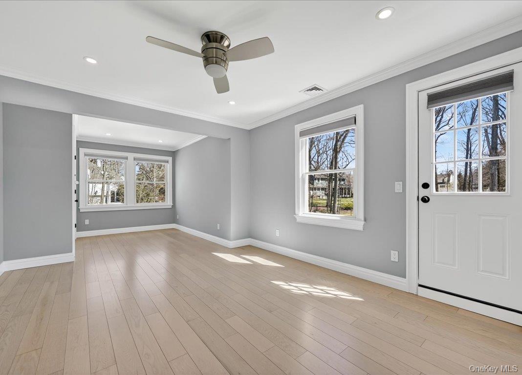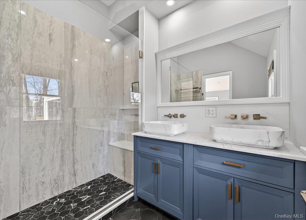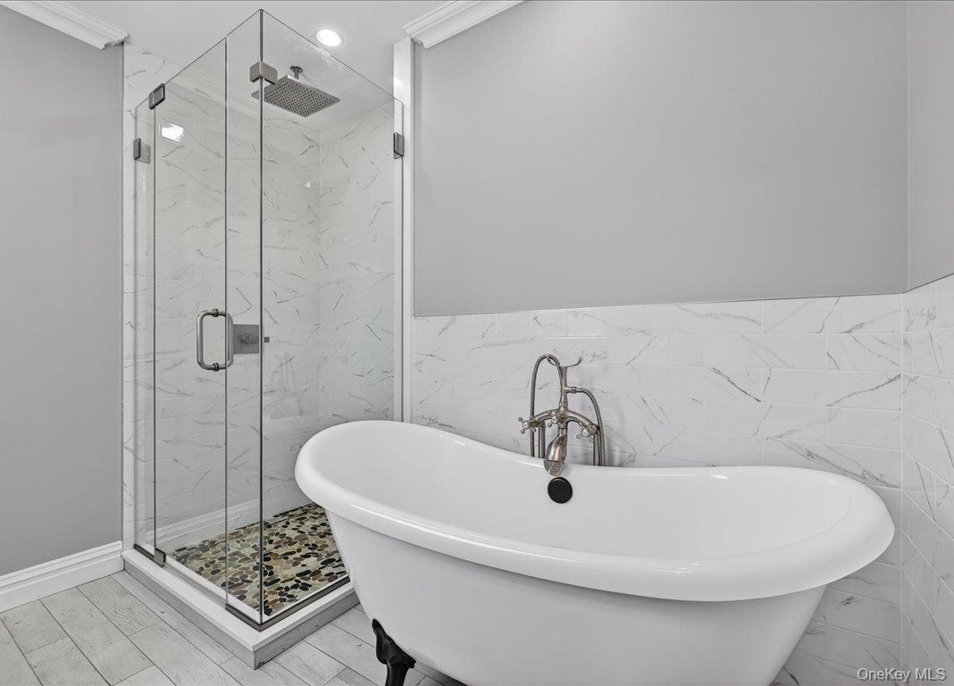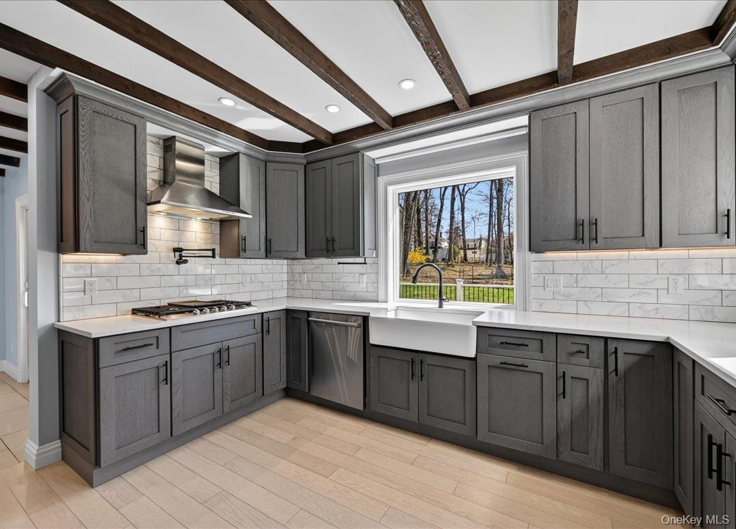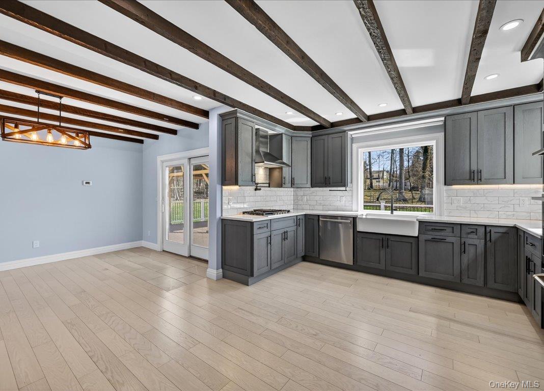 This home might take your breath away! Completely remodeled and augmented inside and out in 2023 by a master contractor, this open flowing floor plan offers higher than 8 ft ceilings, a living and dining area with beautiful tray ceiling , ceiling beams and fireplace. Its sun drenched with natural light and is exquisitely crafted with chefs kitchen, wall to wall cabinets and counter spaces, stainless appliances and farmers sink. Above all , there are 2 primary bedroom suites! One on the main floor and one on the 2nd floor. Another great surprise is all the bedrooms have en suite bathrooms with either double or single sinks, all tile or marble and rain shower heads. There is a classic claw foot tub to elevate one of the en suites and this bedroom has its own outside 2nd floor balcony. All the closets are big, have built ins and all bedrooms have ceiling fans. The beautiful interior doors are accented with thick moldings and black matte hardware, the windows are all Anderson through out, all radiant heated floors throughout, central air-conditioning, and a 2 car garage that is on grade! The roof is a 30 year architectural roof, the property is private and level, its all fenced in, has a spacious trek deck for al fresco dining, and a welcoming circular driveway with paver accents. The driveway is plenty big for parking 6 + cars. Close to Nanuet or Pearl River train stations, this location is perfectly positioned for commuting, shopping, dining, and the NJ border. This makes daily needs and running quick errands effortless. Why not start your morning with a short walk or drive to a nearby coffee and delicious bagel shop. But because the list goes on, you'll need to see this captivating home for yourself.