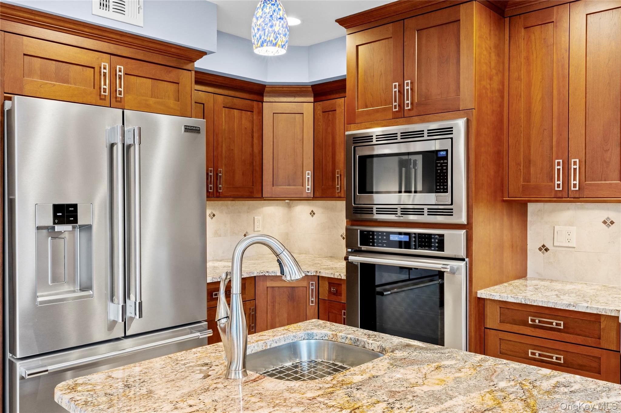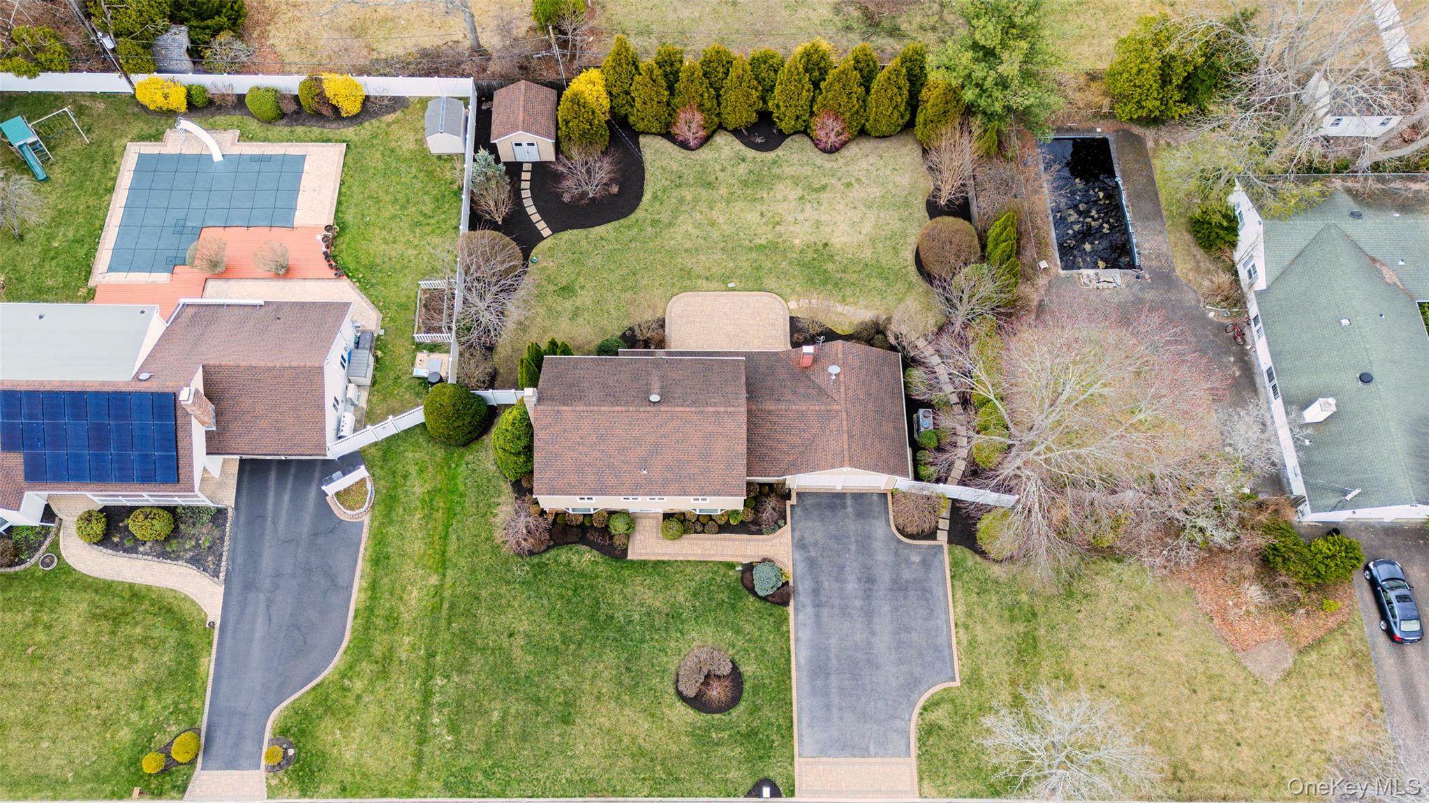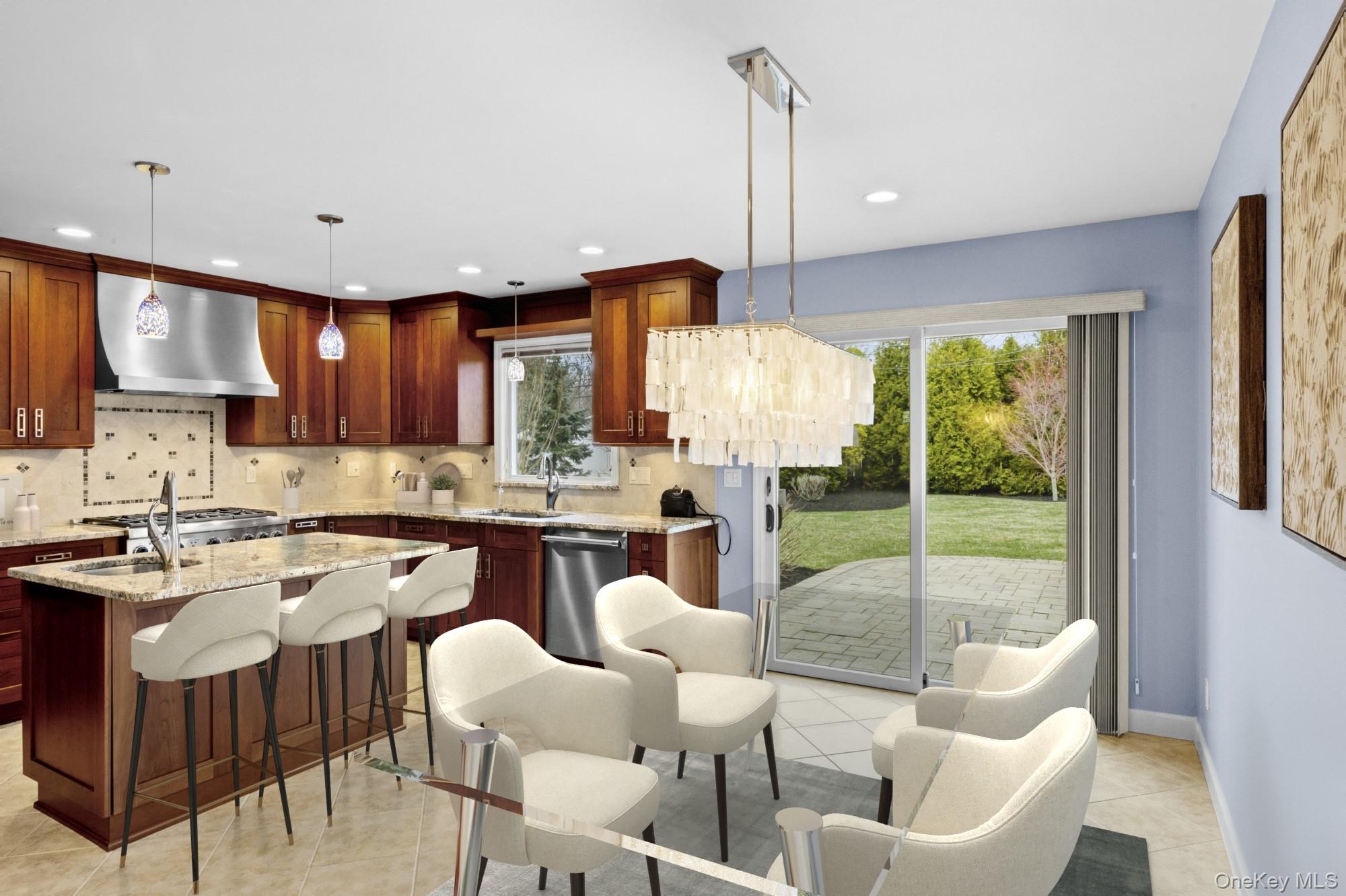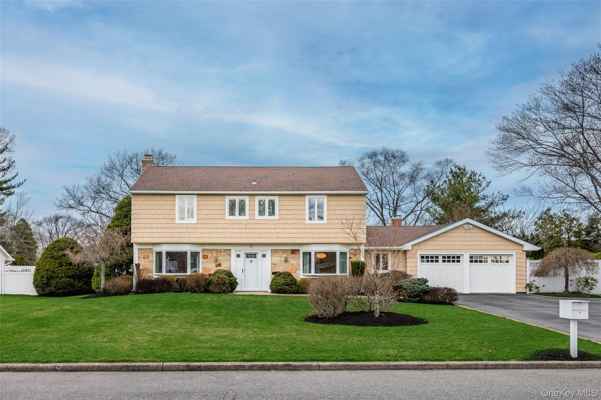 Welcome to 9 Bowen Place, Stony Brook — an expanded Eton Colonial set on a beautifully landscaped . 39-acre property. This home offers exceptional curb appeal with a paved and expanded driveway, custom paver apron and walkway, and a fully fenced yard surrounded by mature plantings and privacy trees. The backyard features an oversized paver patio, creating a perfect setting for outdoor entertaining. A major 2013 renovation transformed both the interior and exterior, including the driveway, landscaping, fencing, siding, roof, and a 4x20 expansion that reimagined the Kitchen's layout and flow. Inside, the home is designed for both everyday living and entertaining, highlighted by a true chef’s kitchen with granite countertops, an oversized center island with second sink, Frigidaire Professional French door Refrigerator and premium Thermador appliances including a 6-burner range, wall oven, and microwave. Additional features include water filtration on both sinks, coffee bar, and extensive cabinetry. The first floor features a spacious family room with fireplace, formal dining room, additional living space, laundry room, and powder room. Upstairs offers three well-sized bedrooms, a renovated full bath, and a large primary suite with walk-in closet and a spa-like en-suite. Additional features include 200-amp electric, Public Sewer connection, in-ground sprinklers, Andersen wood windows, Central Air Conditioning System and a whole house generator.