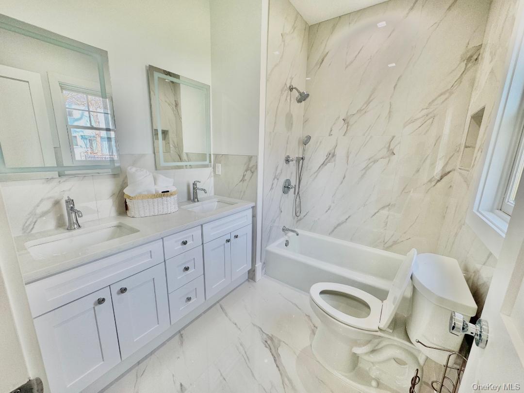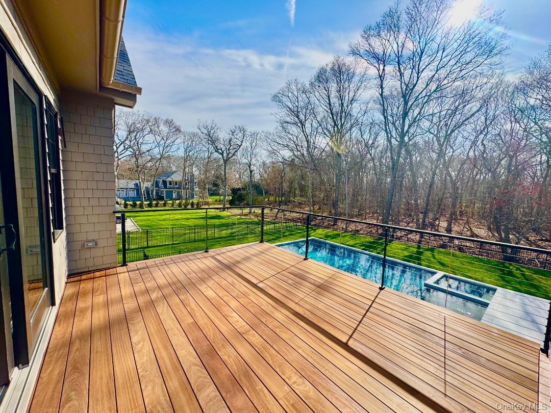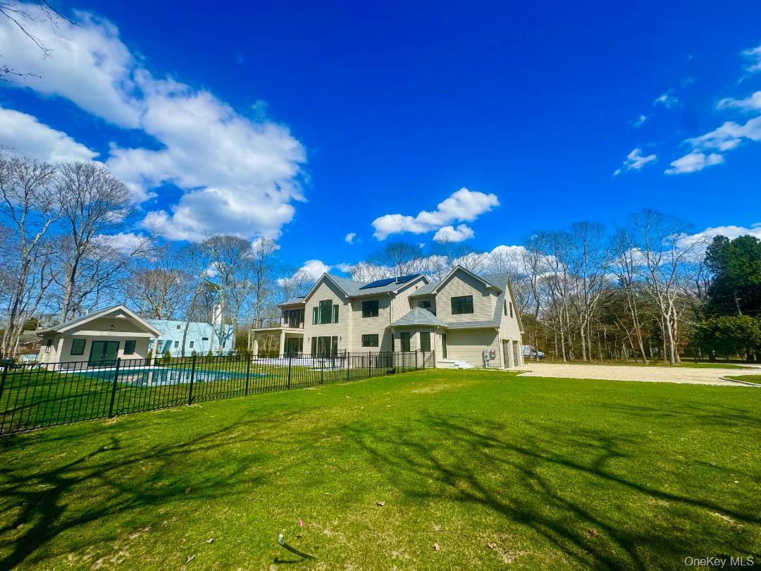 Welcome to Westhampton's newest addition in a very special, long preserved, pristine, south of the highway location. Set perfectly on what was one of a nearly 4-acre parcel, sits a brand new exceptionally detailed estate. The remaining nearly three creekfront acres have been purchased by Preservation. The owner of this home buys one acre and enjoys the additional three to the rear eternally preserved. This is the Hampton's the way it used to be and it's brand new. Located on prestigious Jagger Lane, a quiet tree-lined street founded by one of WH's oldest families, perfect for long summer walks, bicycling, minutes to WHB's newly remade village, and miles of pristine Ocean beaches on Dune Road. The perfect launch pad for summer forays to North Fork wineries, Montauk and more, all while remaining the most convenient Hampton. No long traffic lines to get to your place in the sun. This magnificent home sits high and dry, nicely 22' above sea level requiring no flood insurance whatsoever. Powered Tesla solar electric, ultra efficient Bosch heat pumps and central air. This is a perfect spot for extended family time and more. This home has too many upgrades to list. But will try. . To start, this home has three exceptionally constructed levels with open floor plan, high ceilings, a two-story grand entry and great room, looking out onto a 44'x 20' Gunite, salt water, heated pool with sun shelf and hot tub, Pentair multicolor lighting and equipment, marble patio, and exceptionally well built, All season pool house with tiled floors, bath, wet bar, patio doors and covered porch for lounging, abutting a 3 acre rear preserve. Bring the reserve Merlot and start enjoying the best of this tranquil setting. To the south is a long driveway, room for 5-6 cars easily (builder says 8), a 2-1/2 car garage with smokey glass insulated doors, epoxy floors, entry into the homes south side, mud room, pantry. The front, rear and lower level entries all have marble patios, Anderson A-series windows & doors. Inside find Select, Rift and Quartered white oak flooring, vaulted ceilings, a grand entryway flowing seamlessly into light filled rooms, French doors to the rear for added light, Floors connect effortlessly with open, beautiful white oak & stainless stairs & railings. No East End home would be complete without a full ensuite Jr. Master on the main floor. Nicely decorated, walk in closet, stackable laundry, bathroom with double sink. Want for nothing! Chef's kitchen is breathtaking, with a waterfall edge center island, Sub Zero, Wolf range, wall ovens & microwave, Cove dishwasher, Stainless Farm sink, Kohler fixtures, an abutting light filled Breakfast room with its own door to the rear, and adjacent (dual door) walk in pantry. Dining room will not be forgotten or go stale as it flows seamlessly into all rooms with oversized doorways, light filled windows and convenient wet bars. Tastefully furnished with designer dining set and lighting. Living room is warm and accessible with gas fireplace, double doors to the patio and open to the great room and kitchen. Great room has 23' soaring light filled ceilings and awaits your designers touch. Upper level has an exceptional front to back master suite. Nicely separated by an open breezeway over to laundry room, three additional bedrooms, a bonus room, & well designed ensuite baths. Master/Primary has a raised ceiling, designer bath, two walk-in closets, Ipe deck overlooking rear yard, pool and preserve. Lower level stunner with high ceilings, polished concrete floors, oversized egress windows, double doors to marble patio, walk up to rear yard and pool area. There is a room, near the walk-out doors just below the above breakfast room that is ready for your future Sauna or Wine Room. Also, multiple closets, utility rooms and a trendy full bath. The open living area is your blank canvas. Fitness, Movie or Game room etc. Be in for the season.