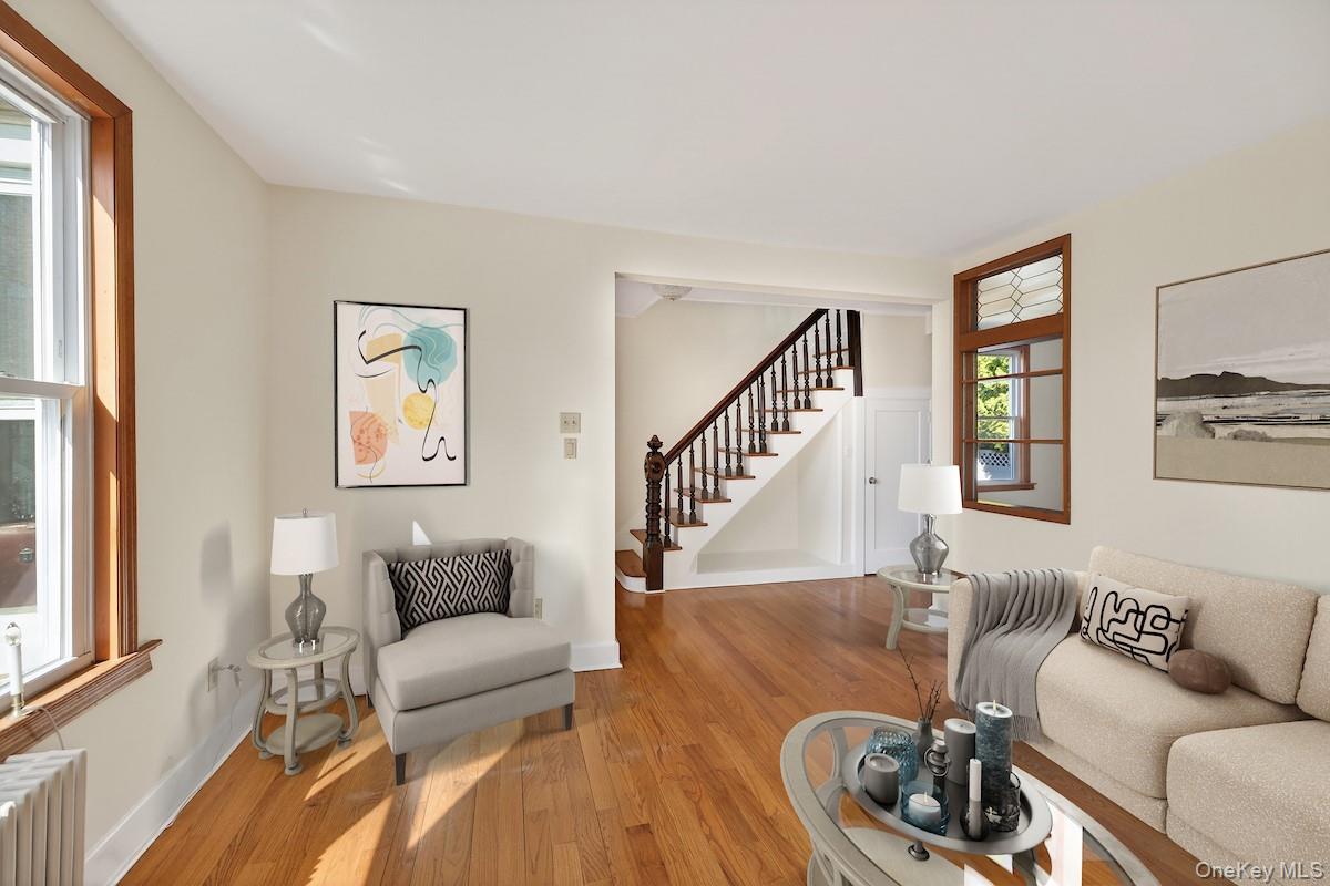 This handsome and renovated Colonial home in Dobbs Ferry, located within the Ardsley school district, includes features that will make your Rivertowns life a joy. Set on an impressive plinth raised up from the sidewalk, a secure and private fenced-in level yard is created on all sides. A welcoming entry sparkles in southern sunlight with a luminous window seat to remove shoes or simply savor the view. Relax as you gaze out to a gorgeous star magnolia tree on the front lawn from the comfort of a sun-drenched living room, offering a corner gas fireplace faced in marble tile. Shimmering hardwood floors and a leaded-glass display window serve as visual connections to an adjoining dining room, making the home feel bright and airy. Dining windows overlook the lovely side property edged by a dense row of evergreens along the rear fence. A charming built-in wood display cabinet is a delightful detail in the room. Enjoy a pristine and modern eat-in kitchen with granite counters, ceramic floors, and plenty of storage, offering direct access to the beautiful side lawn and garden. Another door leads to one of the home’s greatest assets: a huge covered side porch with ceiling fan, providing the perfect place for entertaining and dining al fresco, rain or shine. Three beaming bedrooms upstairs have gorgeous vistas of greenery and a sprawling sky, including a spacious and light-filled primary. Further ascend into a full-width finished stand-up attic(an addtional estimated 395 SF), cheerful and voluminous, to feel buoyant with possibilities. On the lower level, a finished walk-out basement offering an additional estimated 600 SF, proudly displaying its stone and brick foundation, provides even more options, with laundry and half-bath included, and a convenient door connecting to the side yard. There is even an ample shop area with the potential for a brick wine cellar nearby. Completing the picture, find a garage at street level that borders the eastern yard. With two village downtowns just minutes away, a 40-minute train commute to GCT, and the Saw Mill Parkway nearby, accessibility is a breeze. For recreation, walk to shopping, the town pool at Dobbs’ Gould Park, or just a few blocks up to the idyllic 76-acre Juhring Preserve. Come see how 30 Blanchard can make your dreams come true.