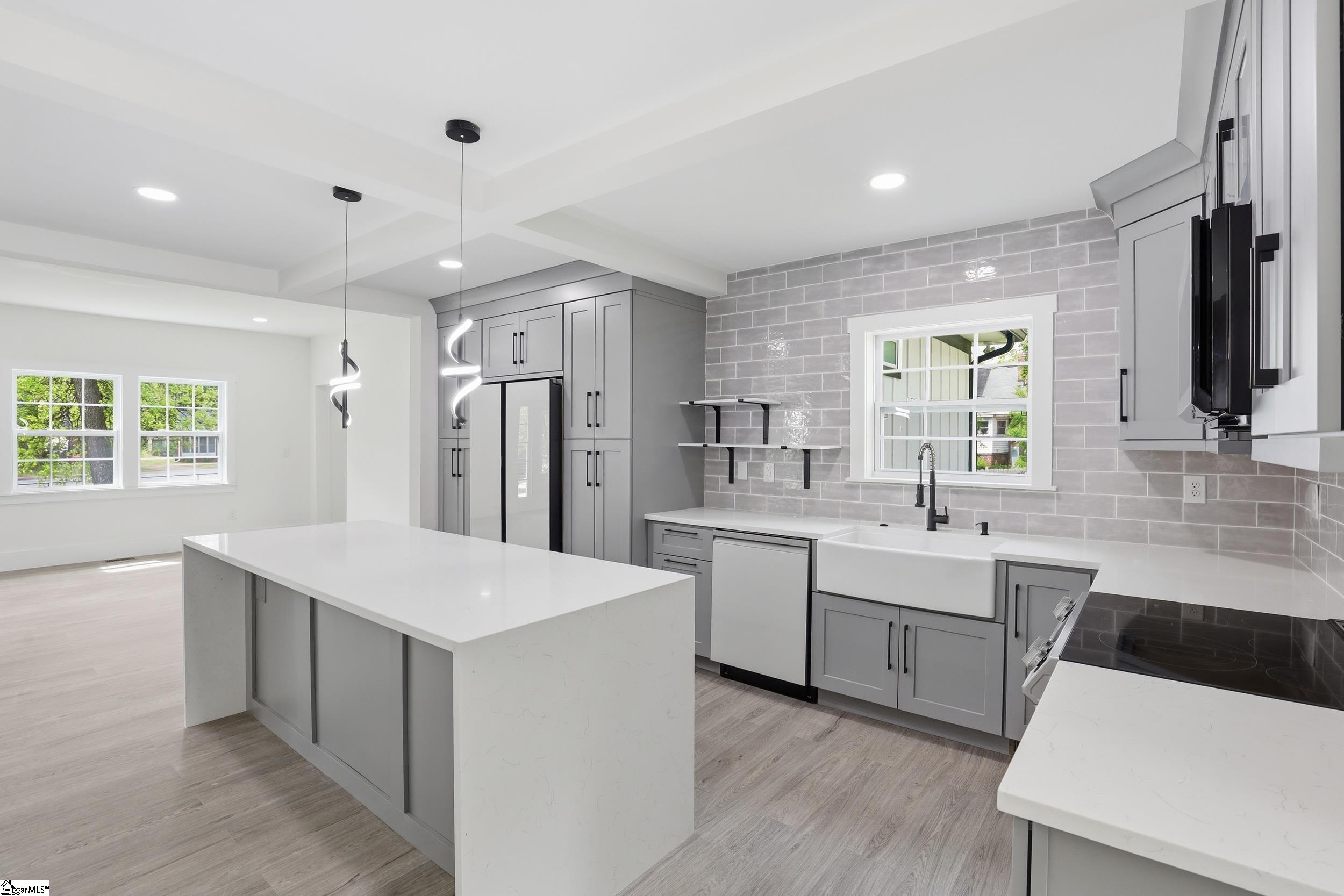 Thoughtfully updated for modern living and move-in ready. This fully renovated home at 1111 E River Street offers 6 bedrooms, 3 bathrooms, and over 2, 900 square feet of well-designed living space on a spacious 0. 61-acre lot. The open-concept floor plan features a large living area with a striking accent wall and sleek electric fireplace. The kitchen showcases quartz countertops, white glass appliances, and an oversized island that provides excellent prep space and room for gathering. The main-level primary suite includes a modern vanity, large shower, and stylish finishes. An additional bedroom and full bathroom is also located on the main level. All additional bedrooms are on the second floor and generously sized, offering flexibility for a variety of needs such as guests, work-from-home space, hobbies, or storage. Conveniently located approximately 6 minutes from downtown Anderson and Anderson University, this property also offers easy access to shopping, dining, and everyday conveniences. Lake Hartwell is nearby for outdoor recreation, and Greenville and Clemson are both within a reasonable drive. A rare opportunity to own a beautifully updated home with space, style, and a convenient Anderson location.