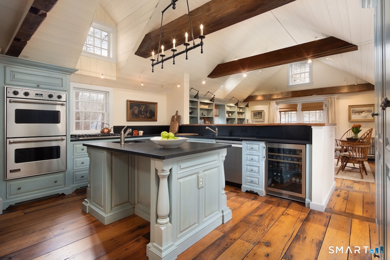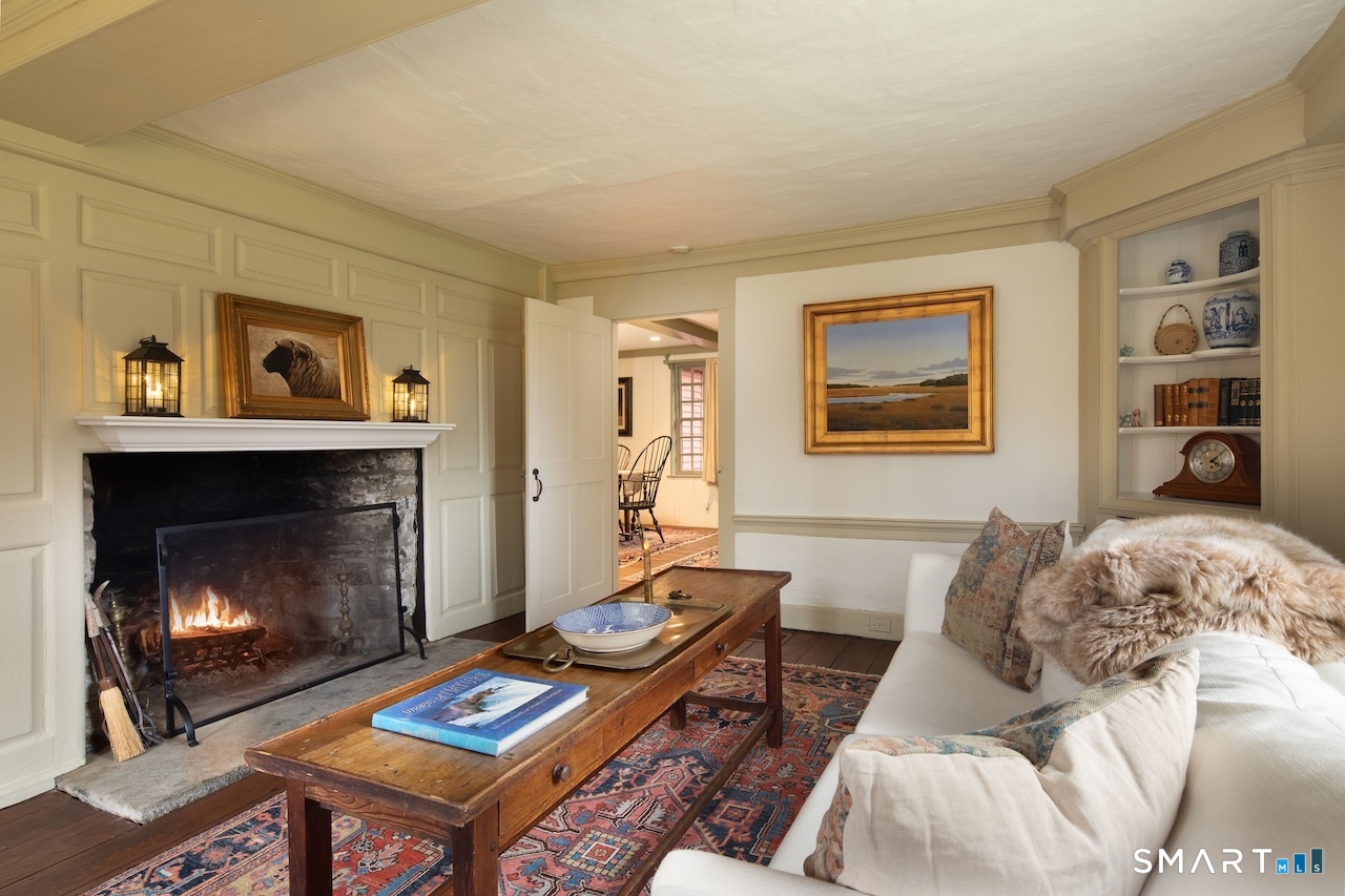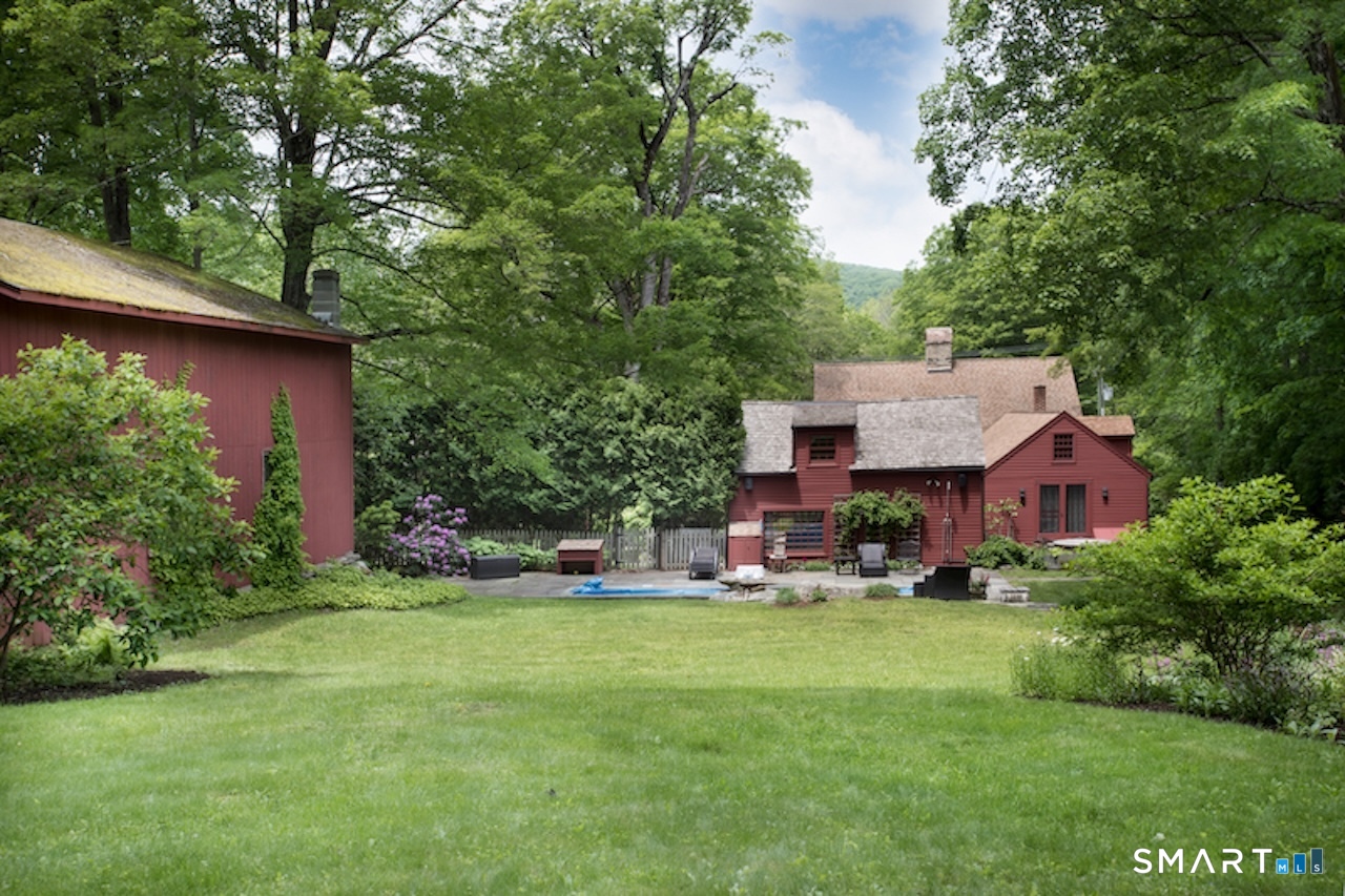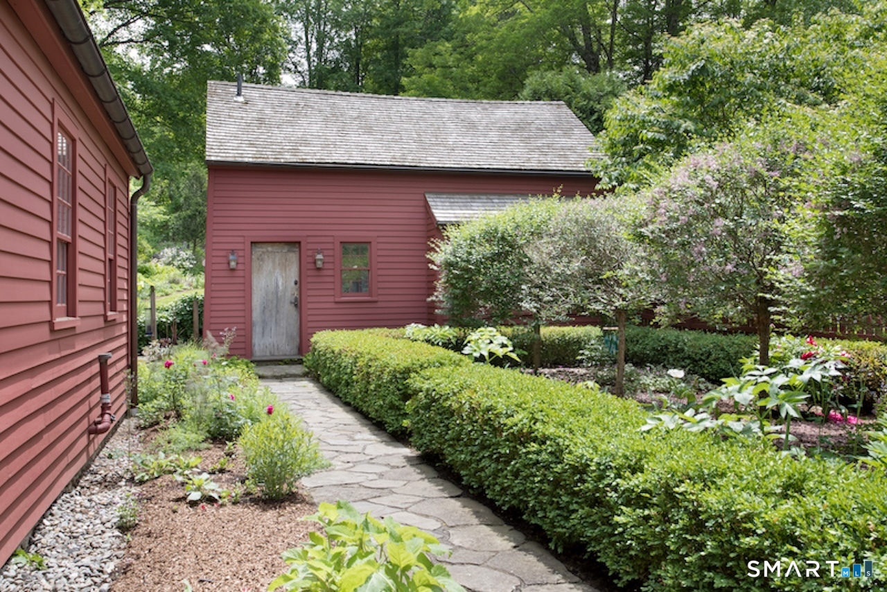 This exquisitely renovated historic saltbox 1741 home in Kent, CT offering 3 bedrooms and 2. 5 baths seamlessly blends vintage charm with modern comfort. Original fireplaces, rich wood paneling, and custom built-ins reflect its heritage, while the home is beautifully sited on a gentle rise with a classic fieldstone foundation, surrounded by lush, flower-filled gardens. Designed for both everyday living and entertaining, the light-filled interior features an open kitchen and great room with soaring vaulted ceilings, a convenient first-floor bedroom, and a formal dining room anchored by a dramatic fieldstone fireplace with rare recessed Dutch ovens; an authentic nod to the home's heritage. Modern upgrades including central air and a whole-house generator ensure year-round ease, while multiple living spaces provide flexibility for gathering or a quiet retreat. Outdoor living is equally exceptional. A bluestone patio and expansive terrace create the perfect setting for entertaining, overlooking the private heated gunite pool. Completing the property is a reconstructed guest cottage featuring 1 bedroom, office, and 1 full bath, ideal for guests or extended stays, along with a detached two-car garage. Just minutes from the heart of Kent's vibrant village, this exceptional home offers timeless character with elevated country living.