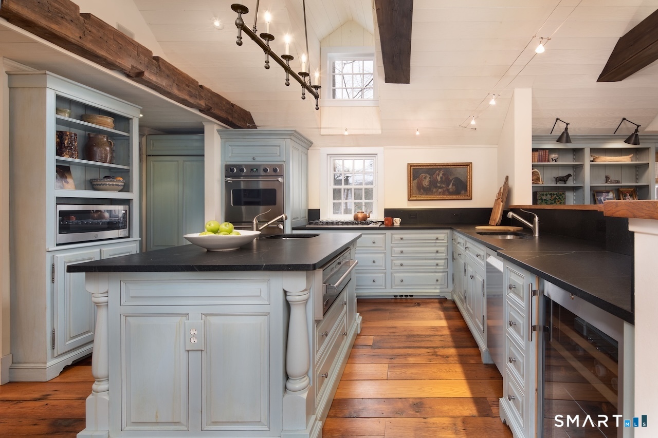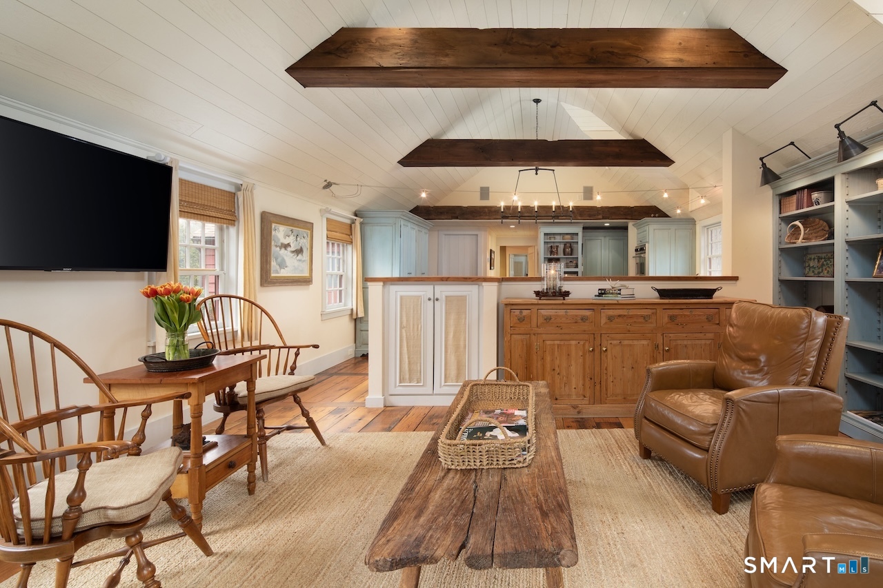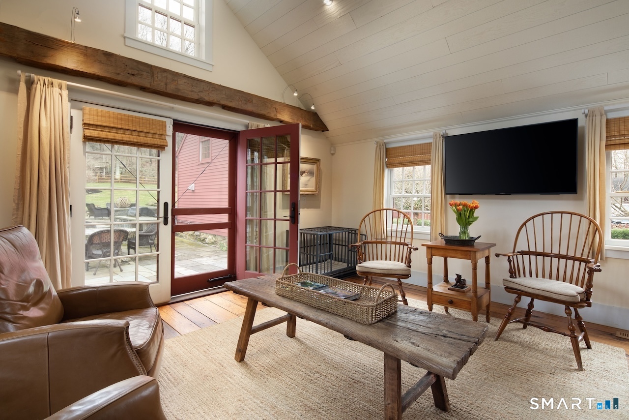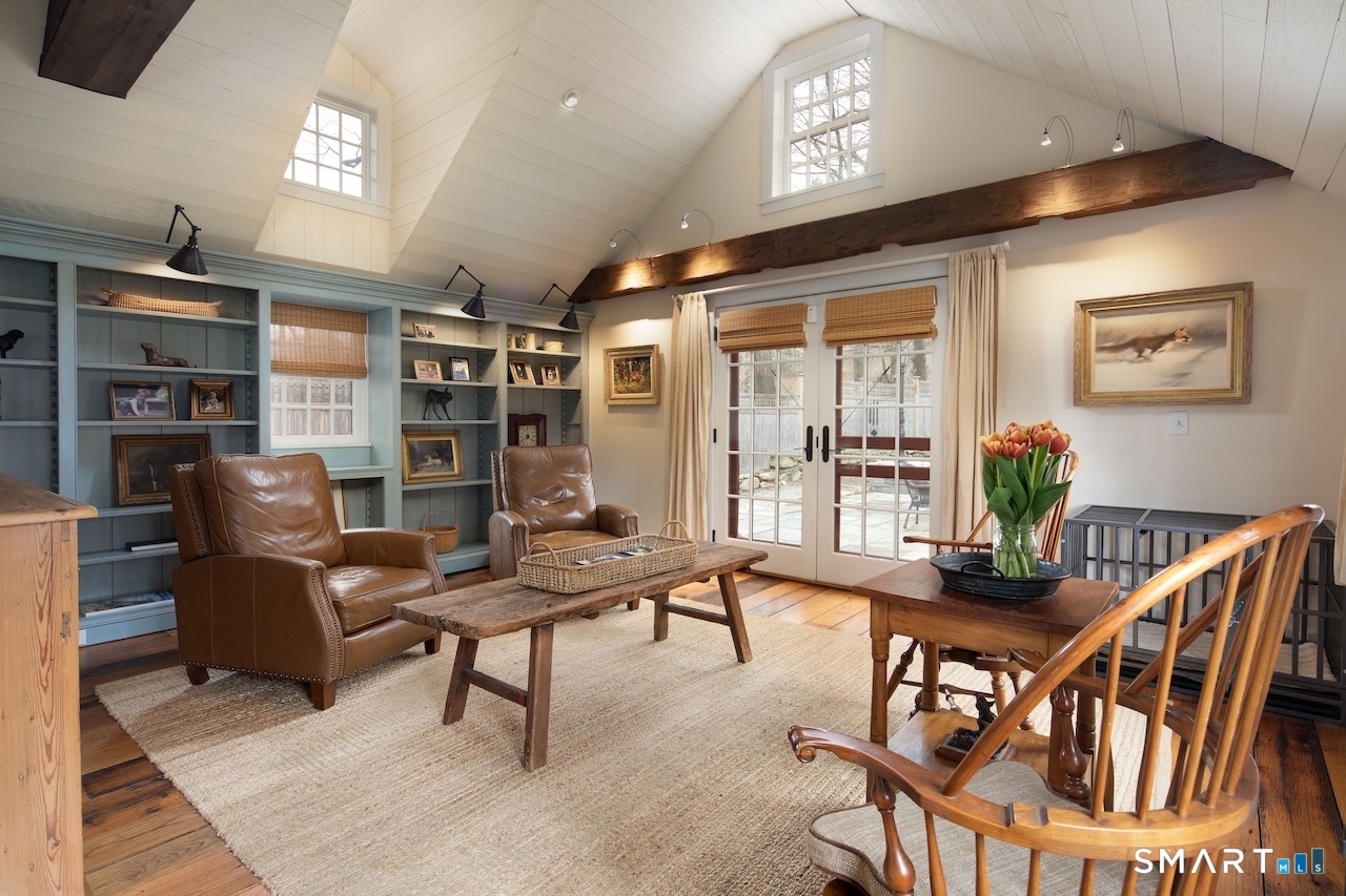 This exquisitely renovated historic saltbox 1741 home in Kent, CT offering 3 bedrooms and 2. 5 baths seamlessly blends vintage charm with modern comfort. Original fireplaces, rich wood paneling, and custom built-ins reflect its heritage, while the home is beautifully sited on a gentle rise with a classic fieldstone foundation, surrounded by lush, flower-filled gardens. Designed for both everyday living and entertaining, the light-filled interior features an open kitchen and great room with soaring vaulted ceilings, a convenient first-floor bedroom, and a formal dining room anchored by a dramatic fieldstone fireplace with rare recessed Dutch ovens; an authentic nod to the home's heritage. Modern upgrades including central air and a whole-house generator ensure year-round ease, while multiple living spaces provide flexibility for gathering or a quiet retreat. Outdoor living is equally exceptional. A bluestone patio and expansive terrace create the perfect setting for entertaining, overlooking the private heated gunite pool. Completing the property is a reconstructed guest cottage featuring 1 bedroom, office, and 1 full bath, ideal for guests or extended stays, along with a detached two-car garage. Just minutes from the heart of Kent's vibrant village, this exceptional home offers timeless character with elevated country living.