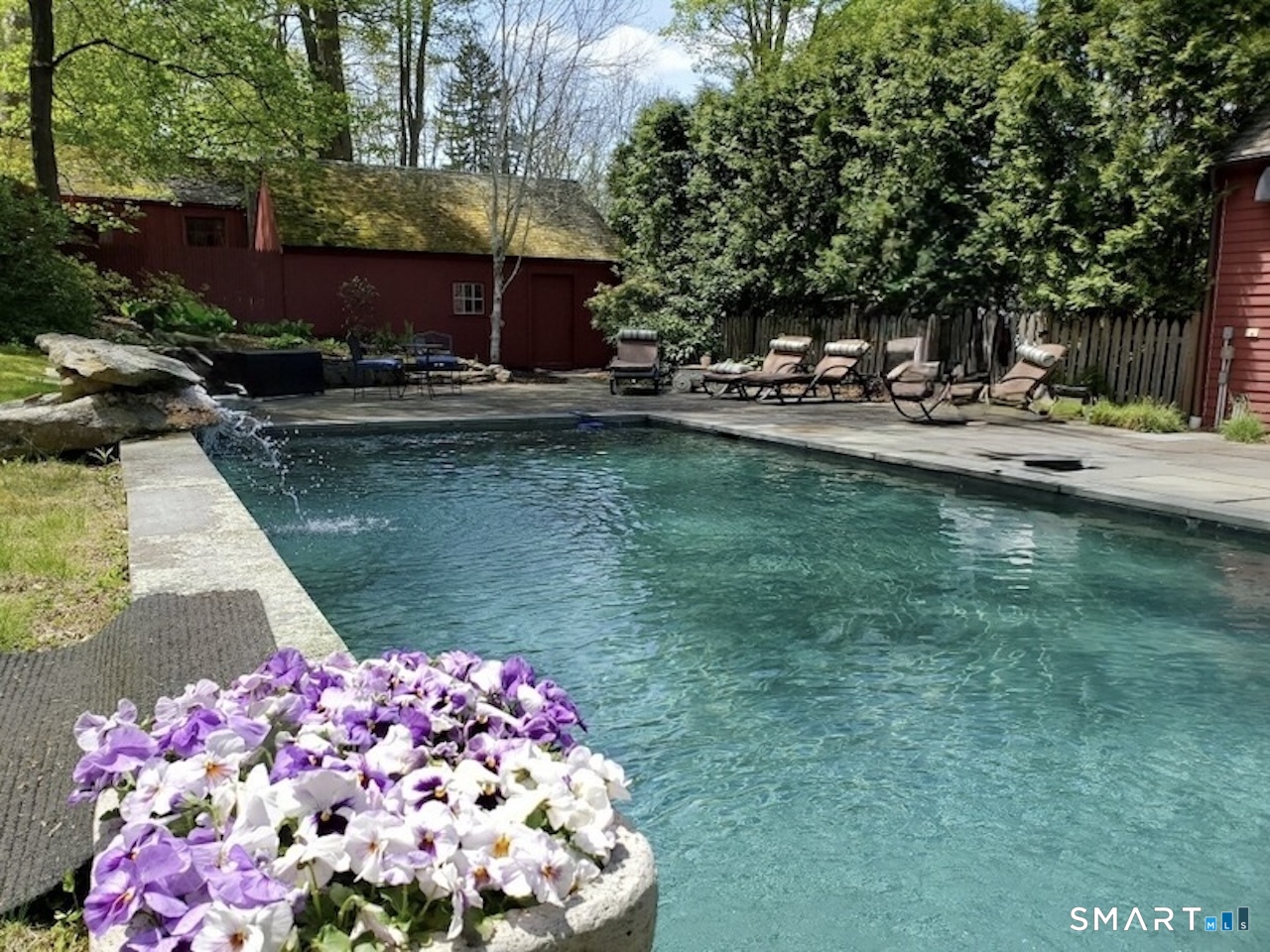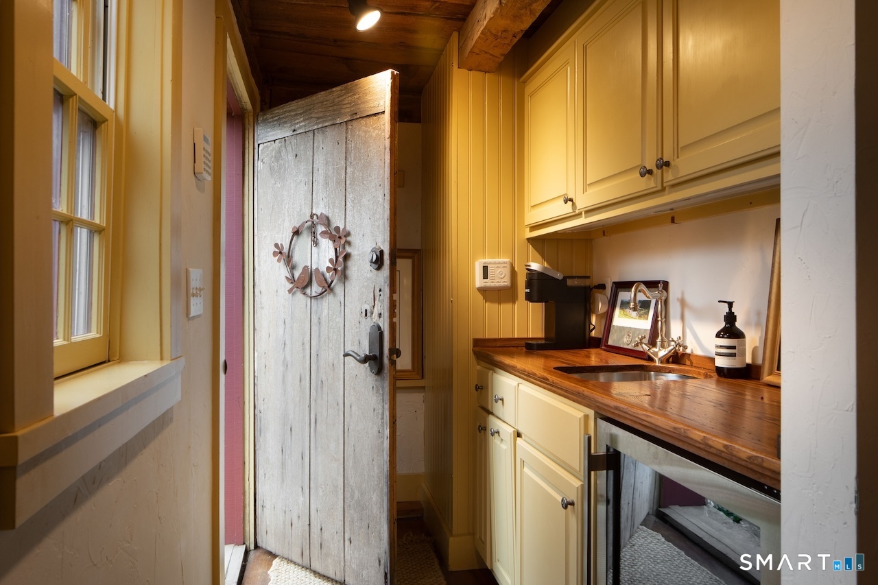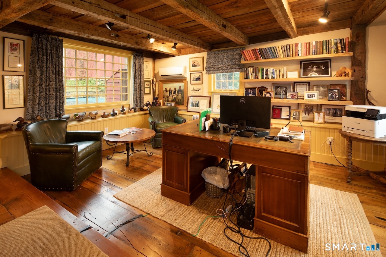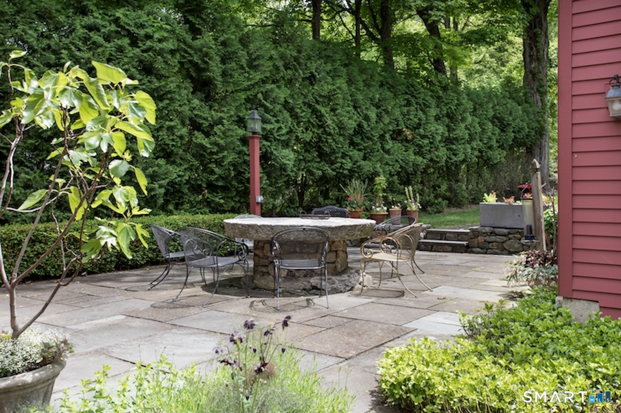 This exquisitely renovated historic saltbox 1741 home in Kent, CT offering 3 bedrooms and 2. 5 baths seamlessly blends vintage charm with modern comfort. Original fireplaces, rich wood paneling, and custom built-ins reflect its heritage, while the home is beautifully sited on a gentle rise with a classic fieldstone foundation, surrounded by lush, flower-filled gardens. Designed for both everyday living and entertaining, the light-filled interior features an open kitchen and great room with soaring vaulted ceilings, a convenient first-floor bedroom, and a formal dining room anchored by a dramatic fieldstone fireplace with rare recessed Dutch ovens; an authentic nod to the home's heritage. Modern upgrades including central air and a whole-house generator ensure year-round ease, while multiple living spaces provide flexibility for gathering or a quiet retreat. Outdoor living is equally exceptional. A bluestone patio and expansive terrace create the perfect setting for entertaining, overlooking the private heated gunite pool. Completing the property is a reconstructed guest cottage featuring 1 bedroom, office, and 1 full bath, ideal for guests or extended stays, along with a detached two-car garage. Just minutes from the heart of Kent's vibrant village, this exceptional home offers timeless character with elevated country living.