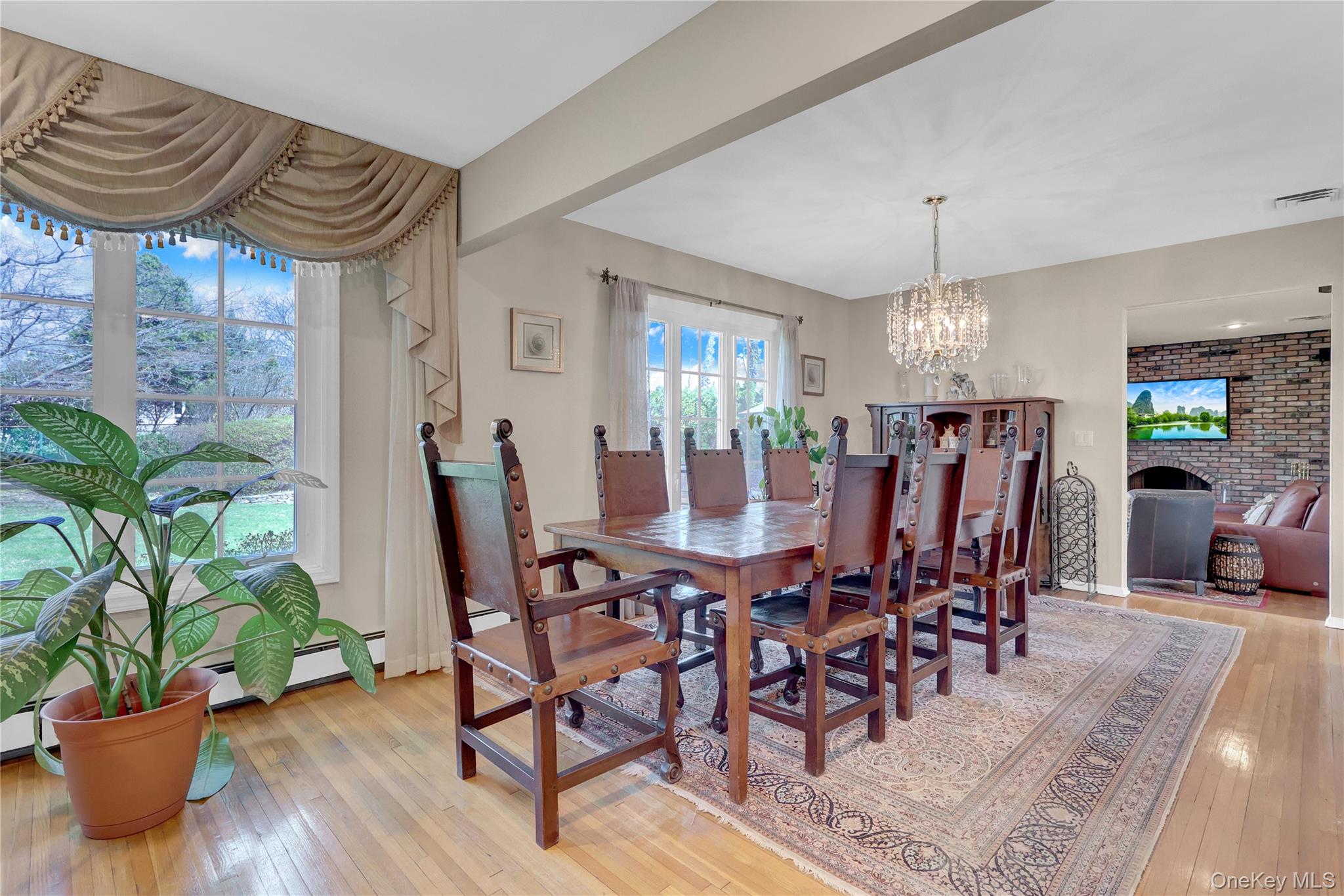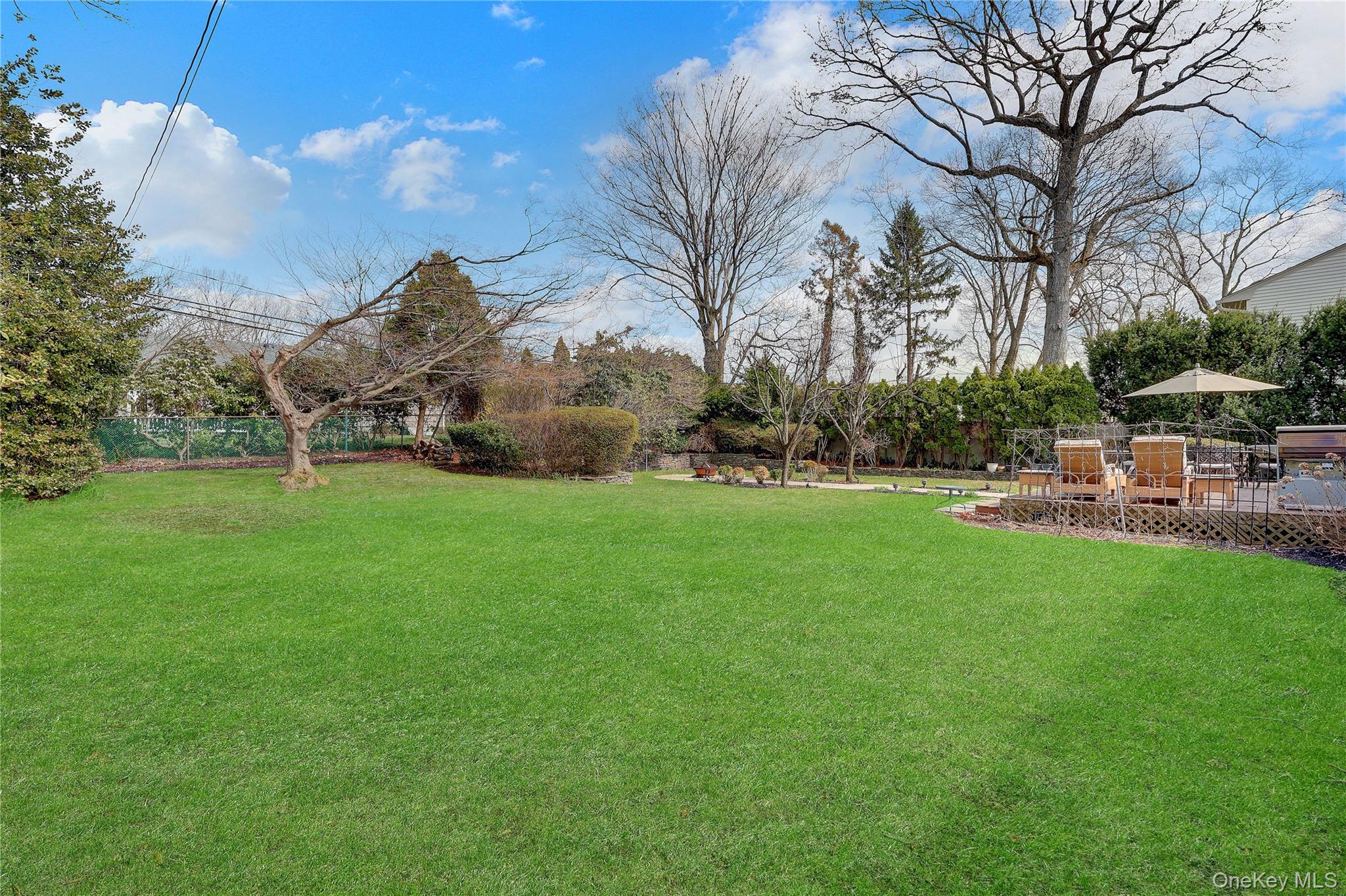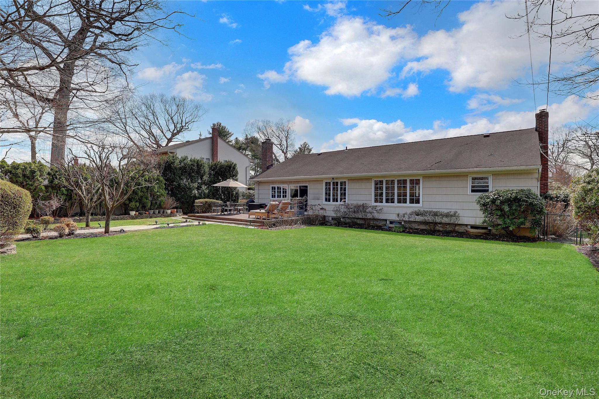 Set on a beautifully landscaped property in one of Syosset’s most desirable locations, this lovingly maintained ranch-style home offers the perfect blend of comfort, charm, and convenience just moments from top-rated schools. This inviting home features three bedrooms and two full baths, including a primary suite with its own en-suite bath. Warm oak hardwood floors flow throughout the main living areas, complemented by tasteful tile flooring in the kitchen and baths. The eat-in kitchen is thoughtfully updated with ample space for casual dining, while a spacious den with a cozy wood-burning fireplace and sliding doors opens seamlessly to the deck and manicured yard beyond, ideal for indoor-outdoor living and entertaining. The outdoor space is truly special, with a beautifully landscaped, private yard that offers both tranquility and functionality. A charming bluestone front porch enhances the home’s curb appeal and provides the perfect spot to relax and unwind. Additional highlights include a generously sized partially-finished basement offering endless possibilities, central air conditioning, first floor laundry, and an attached two-car garage. With exceptionally low property taxes and a central location close to shopping, dining, and transportation, this home presents a rare opportunity to enjoy effortless living in a highly sought-after neighborhood.