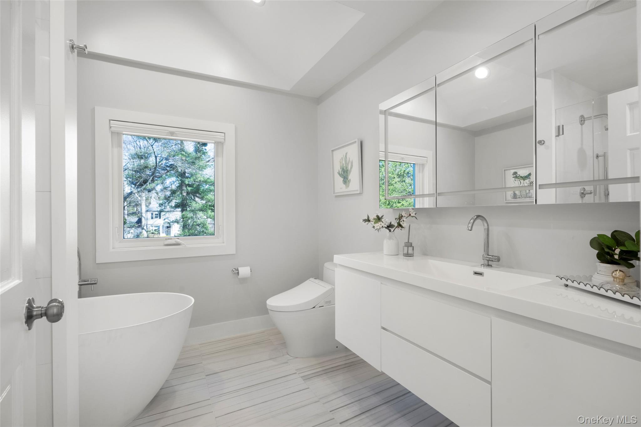 This spectacularly updated four-bedroom, five-bathroom residence offers the perfect blend of luxury, space, and modern convenience in a prime, sought-after location. The moment you arrive, you will be impressed by the expansive, beautifully landscaped front yard, enhanced by thoughtful outside lighting. Step inside to an immaculately renovated home where no detail has been overlooked. The heart of the home is the refreshed gourmet eat-in kitchen, featuring gleaming granite counters and top-of-the-line appliances. Its open-concept design ensures a great flow for entertaining, leading seamlessly to the main living areas. Comprehensive updates also include fully renovated bathrooms, new LED lighting, brand new heating and hot water system, and new electrical panels. The main level features an ideal layout, including a private primary bedroom suite with a brand-new luxury bath for effortless, single-level living. The home boasts generous storage throughout with closets galore. The entertainment-ready lower level includes a full, finished, walk-out basement, offering versatile recreation space for guests. The two-car garage conveniently doubles as additional fully wired recreational space. Beyond the impeccable interior, the home is equipped with major systems upgrades, ensuring comfort and peace of mind, including a powerful 20 kW whole-house generator and a brand-new, high-efficiency heating and hot water system installed in March 2026. Added practical features include a new internal central vacuum system with hoses and driveway parking for over four cars. The private backyard sanctuary is ready for relaxation, complete with a hot tub. This Orienta gem is truly a must-see for anyone seeking an updated and perfectly sized home with all the extras. Attached survey shows . 49 acre and 21, 343 sq ft which differs from the Village of Mamaroneck building dept.