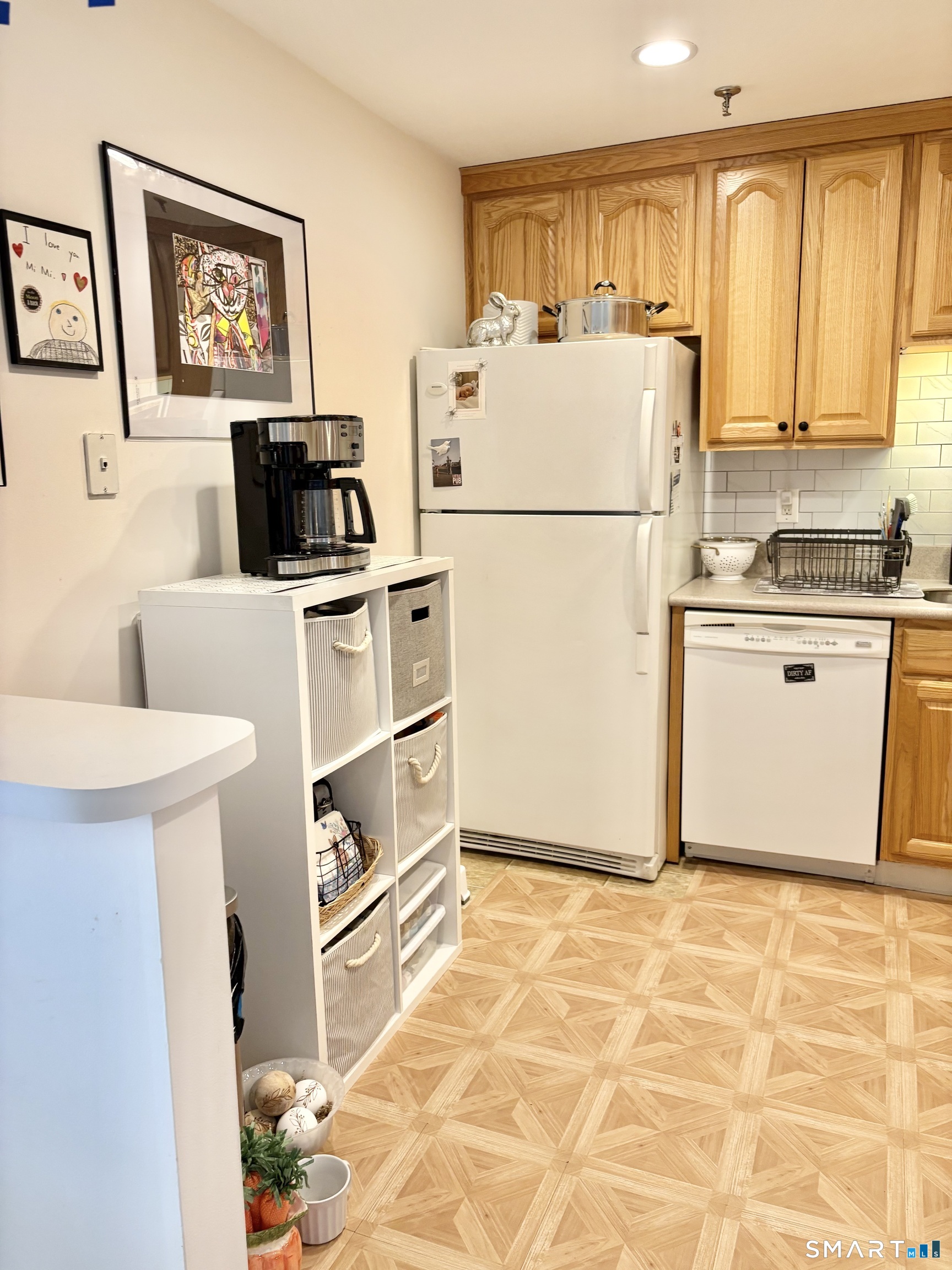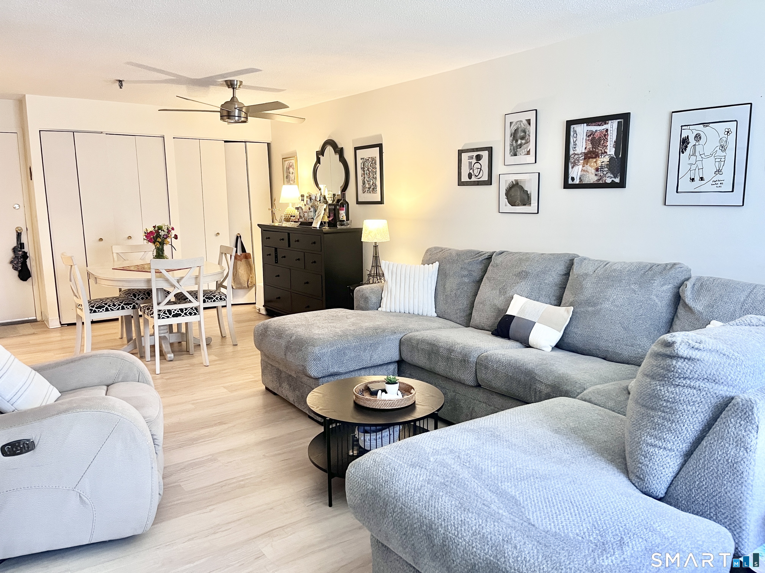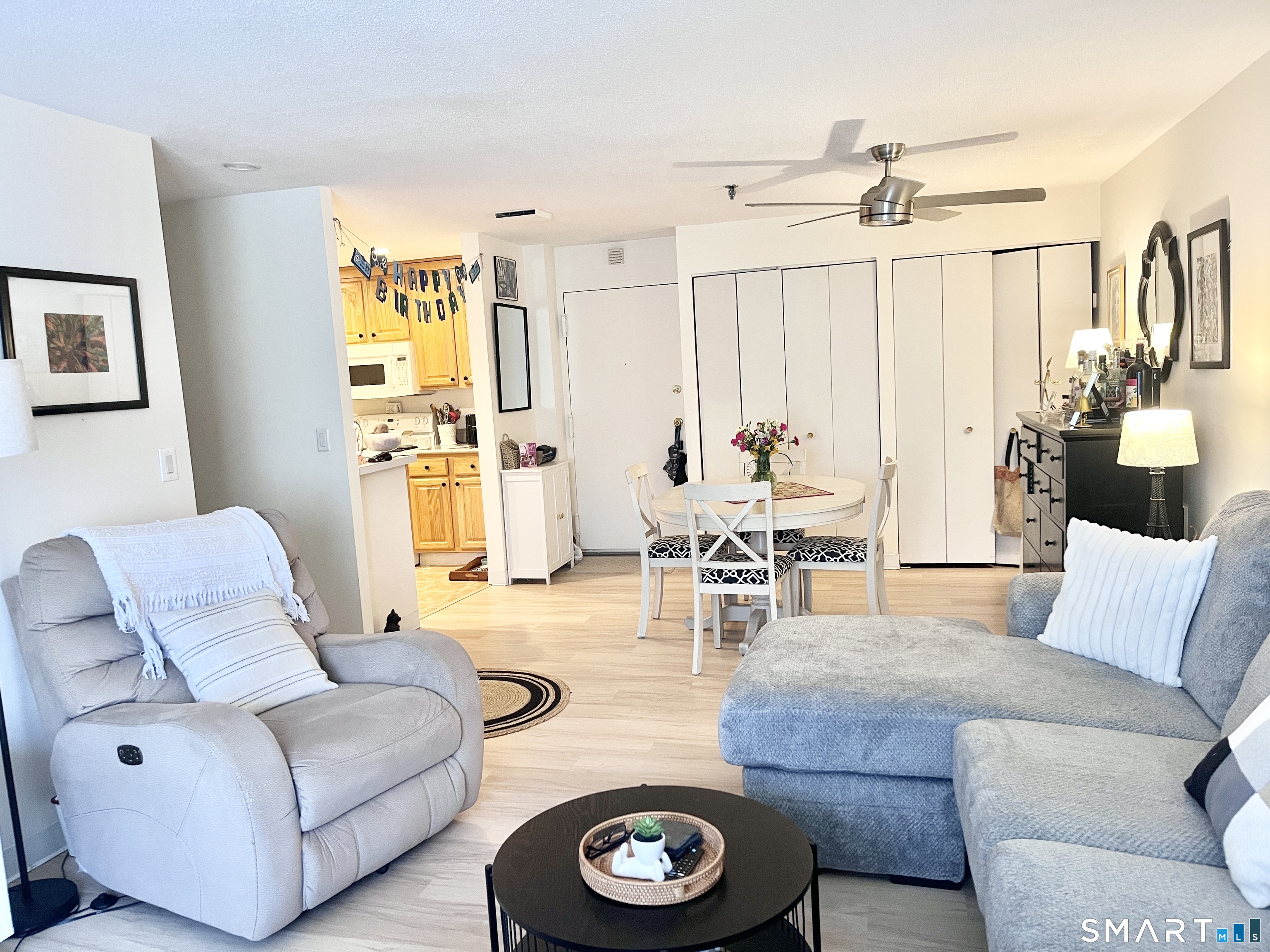 Welcome to The Towers. Home to a bright, welcoming 2-bed, 2-bath condo perfect for comfortable living. The primary bedroom features a private ensuite with double closets and a full bath. Both bedrooms have cozy carpet while luxury vinyl runs throughout the main living areas. The fully applianced kitchen opens easily to the living space, ideal for casual dining and entertaining. West-facing windows provide lovely afternoon light. Located in a secure building with elevator access and an assigned parking space, the unit also includes in-unit laundry. Lower level community room with kitchen, tables and chairs is available for family parties. The property abuts Wallingford Country Club for peaceful green views from the back patio for morning sunrises. A friendly, move-in-ready condo in a convenient, desirable setting. With direct access from the lobby, carrying in groceries is effortless. Fair share heat & AC is billed by sq footage and number of people, making for great budgeting. With rent prices skyrocketing, you can own your own home and build your own equity. Owner occupant only for first two years.