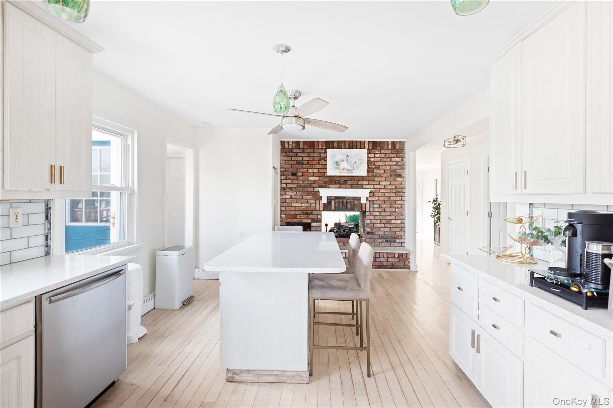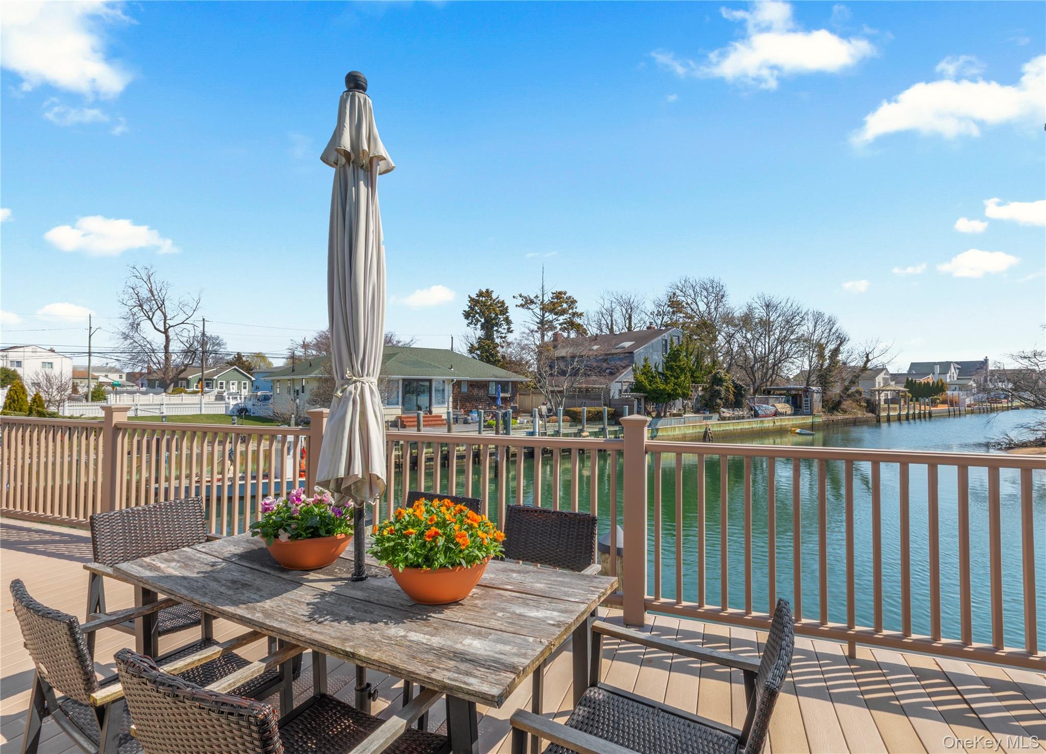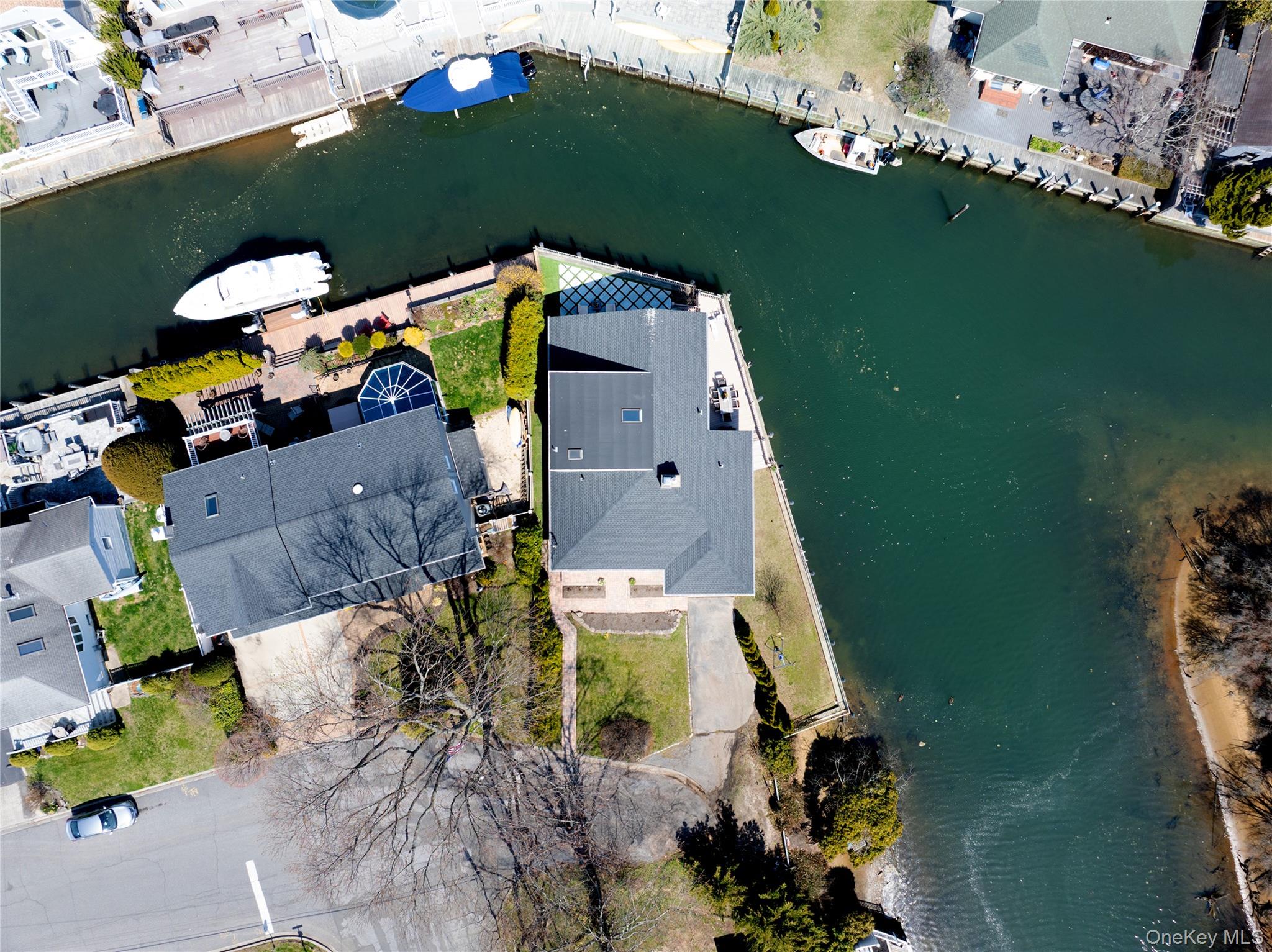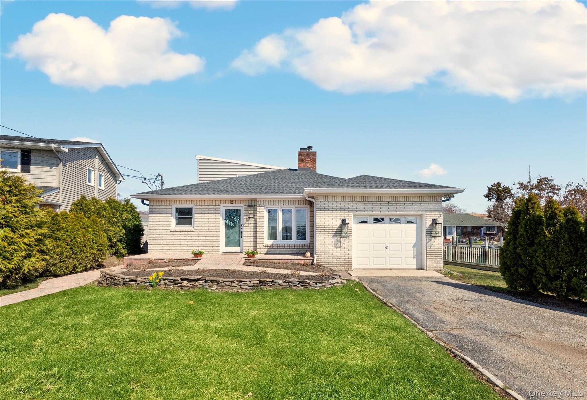 Welcome to this unique and spacious expanded ranch, set on an extremely rare corner waterfront property, offering approximately 138 feet of updated aluminum navy bulkhead. The corner positioning provides enhanced privacy, wider canal exposure, as well as easy in-and-out access for boating enthusiasts. Located directly across from Indian Island Nature Preserve, this home offers a front-row seat to a wide variety of wildlife, offering year-round opportunities for peaceful birdwatching, as well as fishing and crabbing. Outdoor living is elevated with a composite deck and metal railings that overlook the water, along with a beautifully designed paver patio, featuring turf inlay, creating a clean, low-maintenance backyard retreat, ideal for relaxing and entertaining. The east-facing deck, kitchen, dining and family rooms, capture spectacular sunrise and moonrise views, while the rear of the property faces north and offers beautiful sunsets in the west. Once inside, you'll find a bright, open layout on the main level, with the updated kitchen, dining area and family room, with sliding glass doors out to the deck, ideal for both everyday living and hosting. The kitchen boasts stainless steel appliances, including a Samsung Family Hub Touchscreen Refrigerator and a new dishwasher, as well as a beautiful tile backsplash and Quartz Countertops. A convenient half bath with laundry adds functionality to the main floor, as well as two bedrooms and a full bathroom with both a stall shower and tub shower. You'll notice new crown and baseboard molding throughout the main living areas, as well as baseboard radiator covers, recently updated lighting fixtures and the double-sided brick fireplace, which anchors the living spaces with warmth and style. Upstairs, a generously sized and versatile primary loft suite provides a private retreat complete with new luxury vinyl flooring, a stunning and beautifully designed spa bathroom, with both a stall shower and soaking tub, an additional bedroom or office space, and skylights that flood the space with natural light. Additional recent updates include, New GAF Timberline HDZ Roof (2024), stairs and custom iron railings (2022), Mini split system in living and dining area, w/ new line sets and exterior covers (2022), spray-sealed crawlspace, w/ new floor insulation (2021), and more. 200 Amp electric, updated plumbing and well-maintained, updated utilities. With this property's prime waterfront location, spacious layout and recent updates, this is a truly special home, both inside and out!