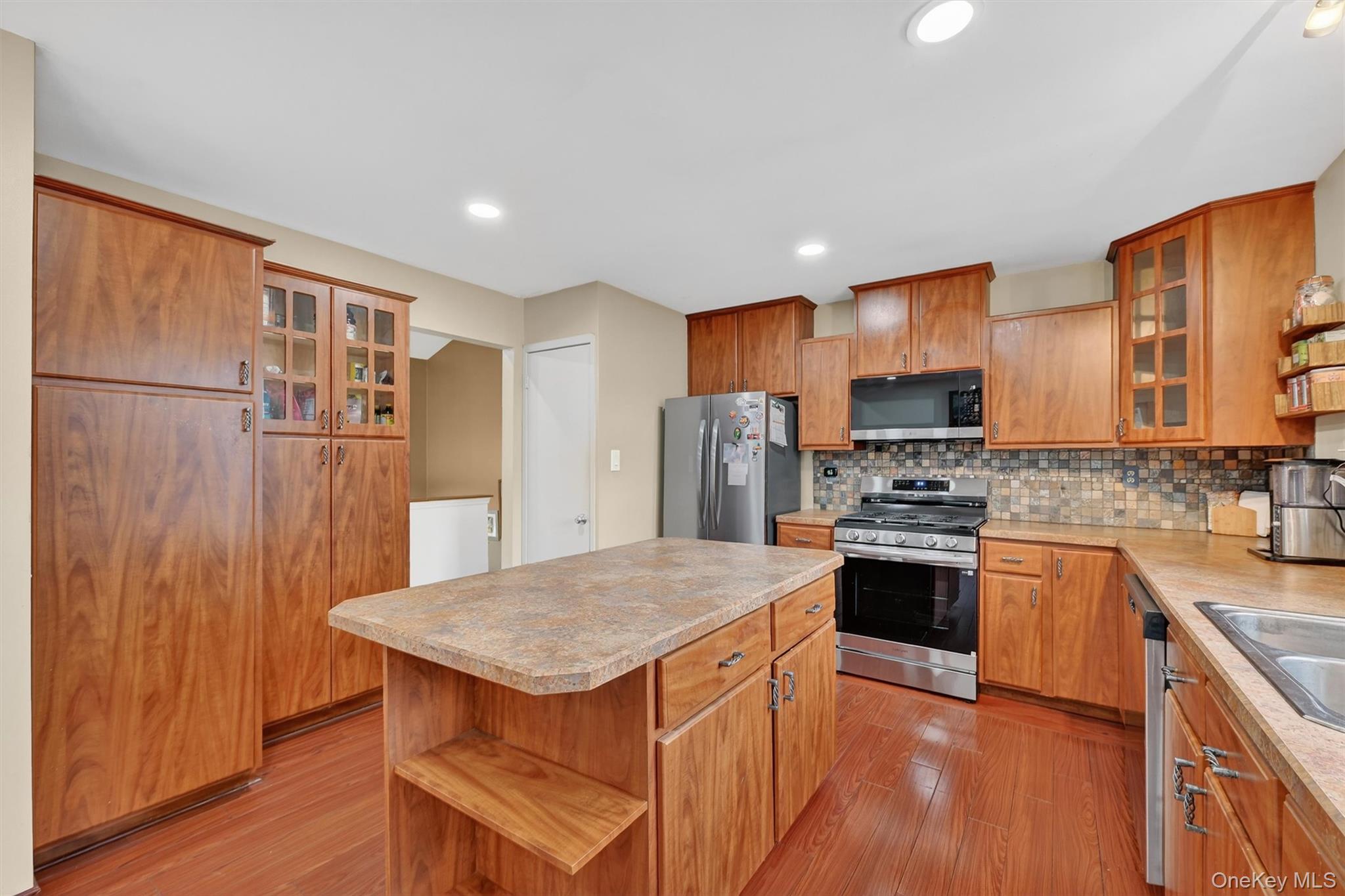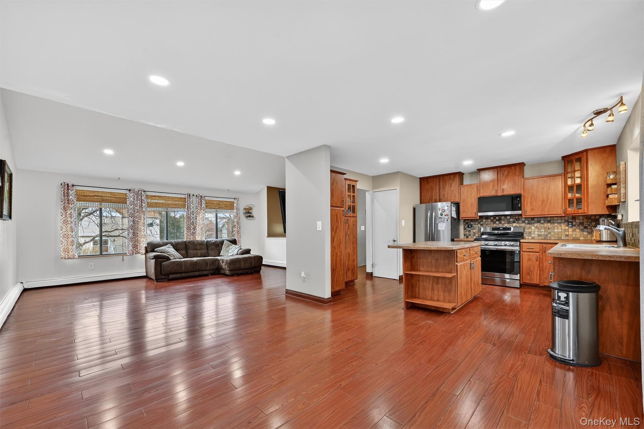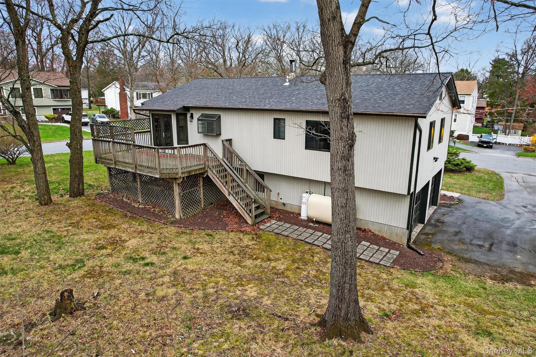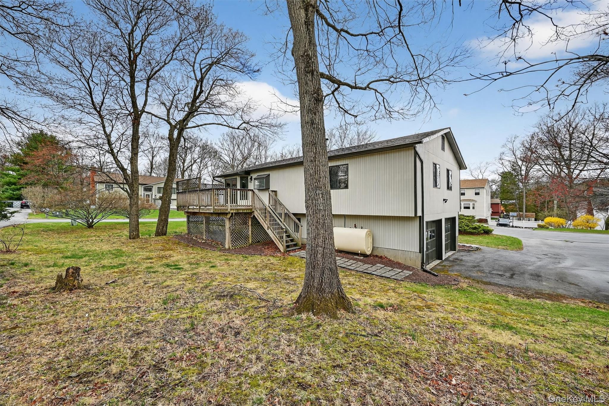 Exceptional value in Monroe Woodbury! Well maintained contemporary raised ranch in Lake Region Estates on prime corner lot, featuring an open floor plan ideal for everyday living and entertaining. Updated kitchen with center island, stainless steel appliances, and a bright garden window perfect for herbs and plants. Spacious living room offers a cathedral ceiling and oversized windows for abundant natural light. Dining area includes a bump-out and French doors leading to a private deck with low maintenance Trex flooring. Lower level offers versatile flex space ideal for a home office, gym, media room, playroom, or guest area. In addition to the modern kitchen with updated appliances, and beautifully updated bathrooms, there is also a newer hot water heater, and the roof was replaced in 2025. Enjoy lake rights and Monroe-Woodbury Schools.