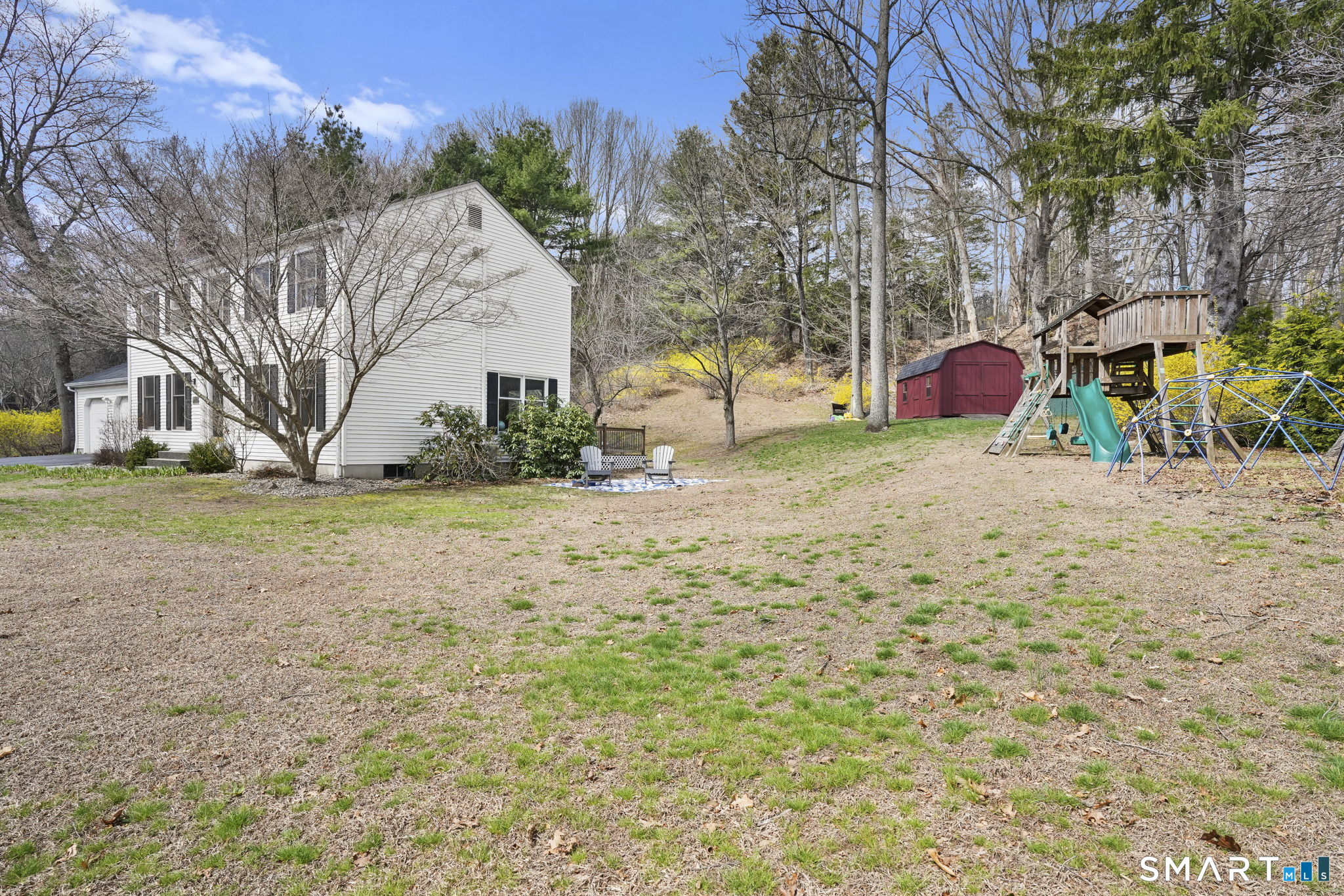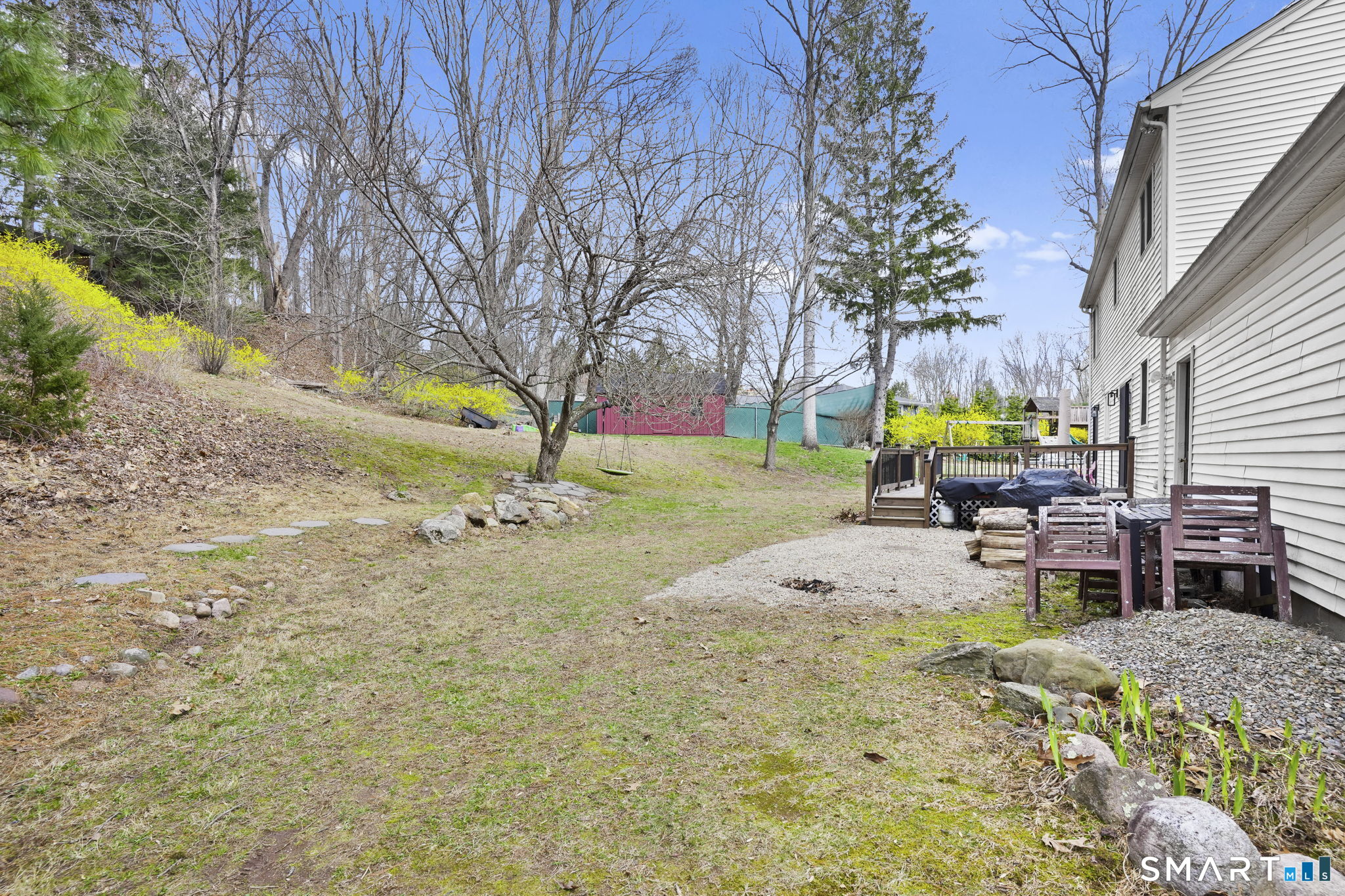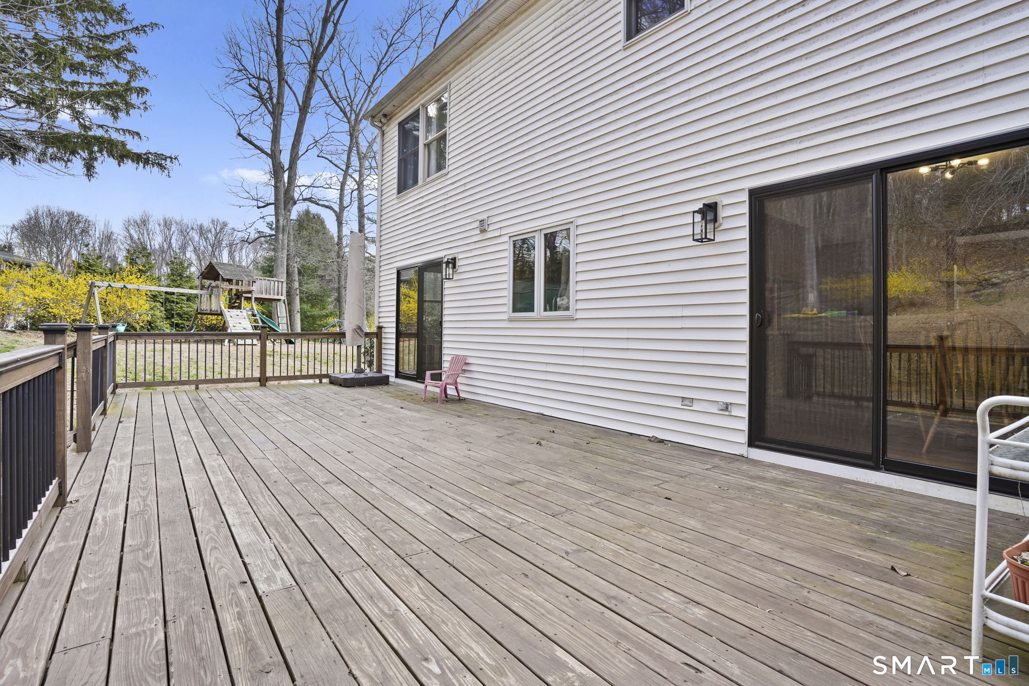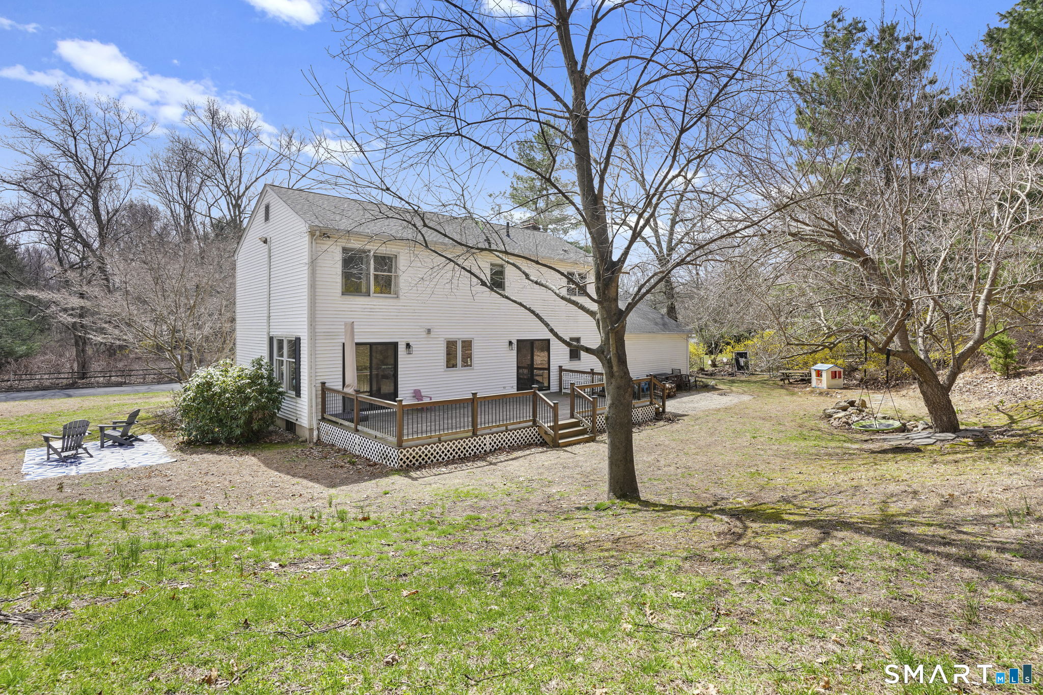 Perfectly positioned on just under an acre along a desirable residential street, this classic center hall Colonial offers timeless curb appeal w/ its symmetrical front facade, nine windows across, and a welcoming main entrance w/ sidelights & detailed trim. Low-maintenance vinyl siding and a two-car attached garage add to the home's everyday ease. Inside, you'll find over 2, 456 sf of living space, including a finished lower level. The main floor features recently refinished h/w floors, large-format modern tile & a functional layout designed for today's lifestyle. The kitchen is well-appointed w/ abundant cabinetry, granite countertops & space for a full-size dining table. Natural light pours in through oversized windows, creating a bright, inviting feel throughout. The living room is centered around a fireplace, offering a comfortable gathering space. Two new sliders provide seamless access to the recently remodeled, expansive deck, ideal for entertaining or simply enjoying the outdoors. Upstairs offers three well-sized bedrooms including a spacious primary suite featuring a private bath, walk-in closet, and an additional flex room perfect for a home office. Lower level adds +/- 800 sf of versatile living space. Outside, the property is designed to be enjoyed. The backyard offers a natural setting to explore, while the side yard provides plenty of room for recreation. A well-balanced combination of classic style, functional space & updates in a desirable Cheshire location!