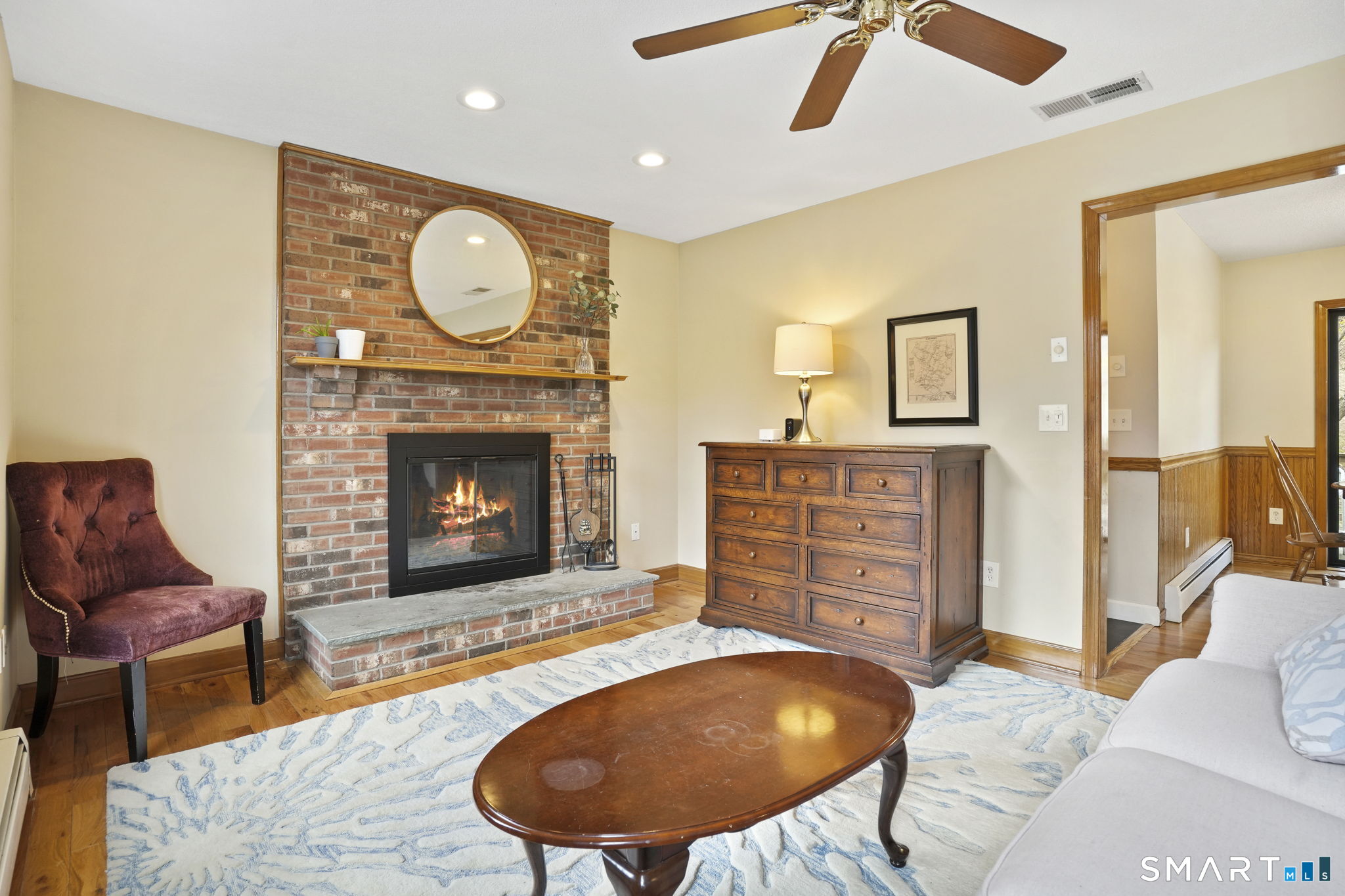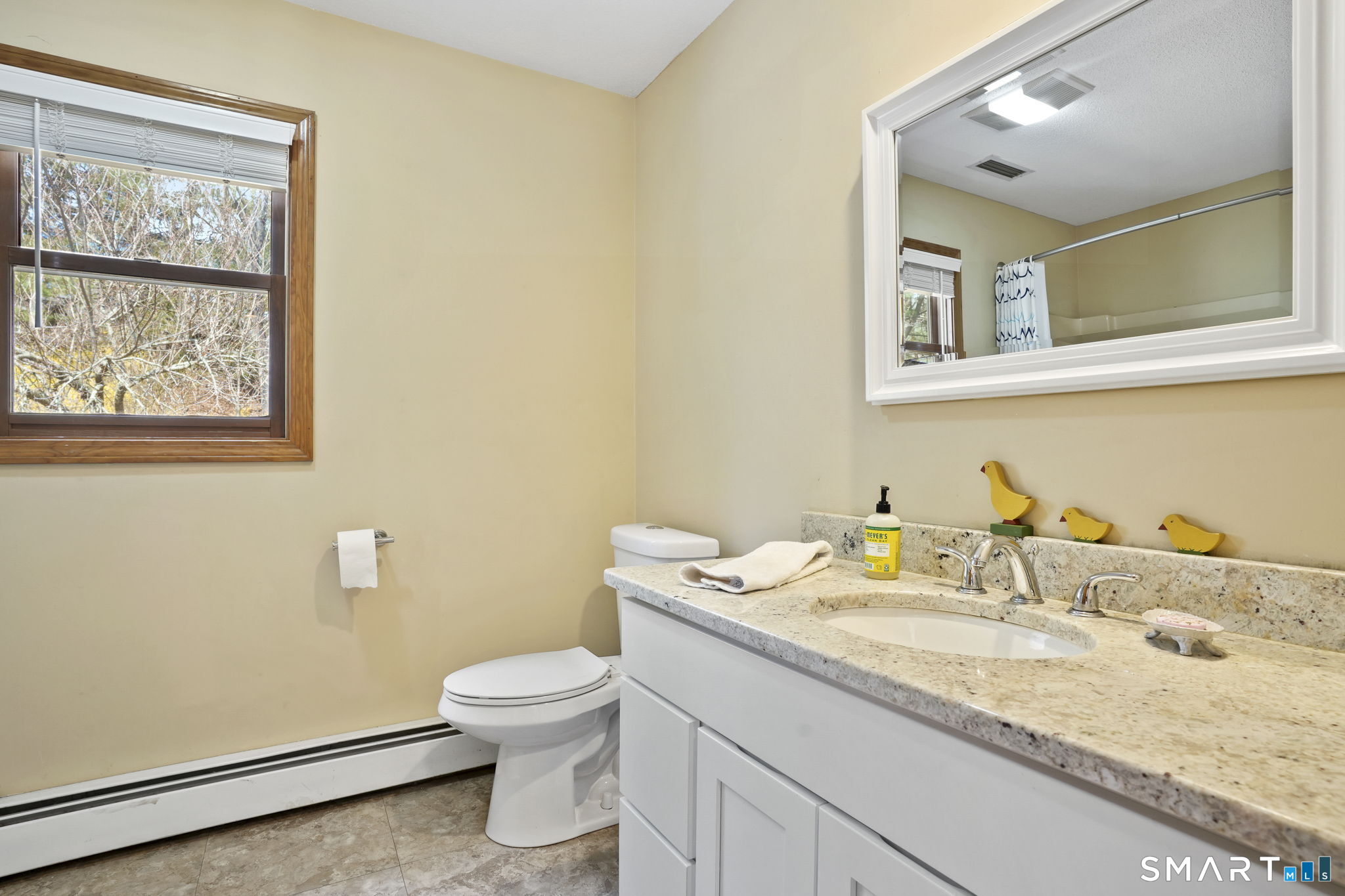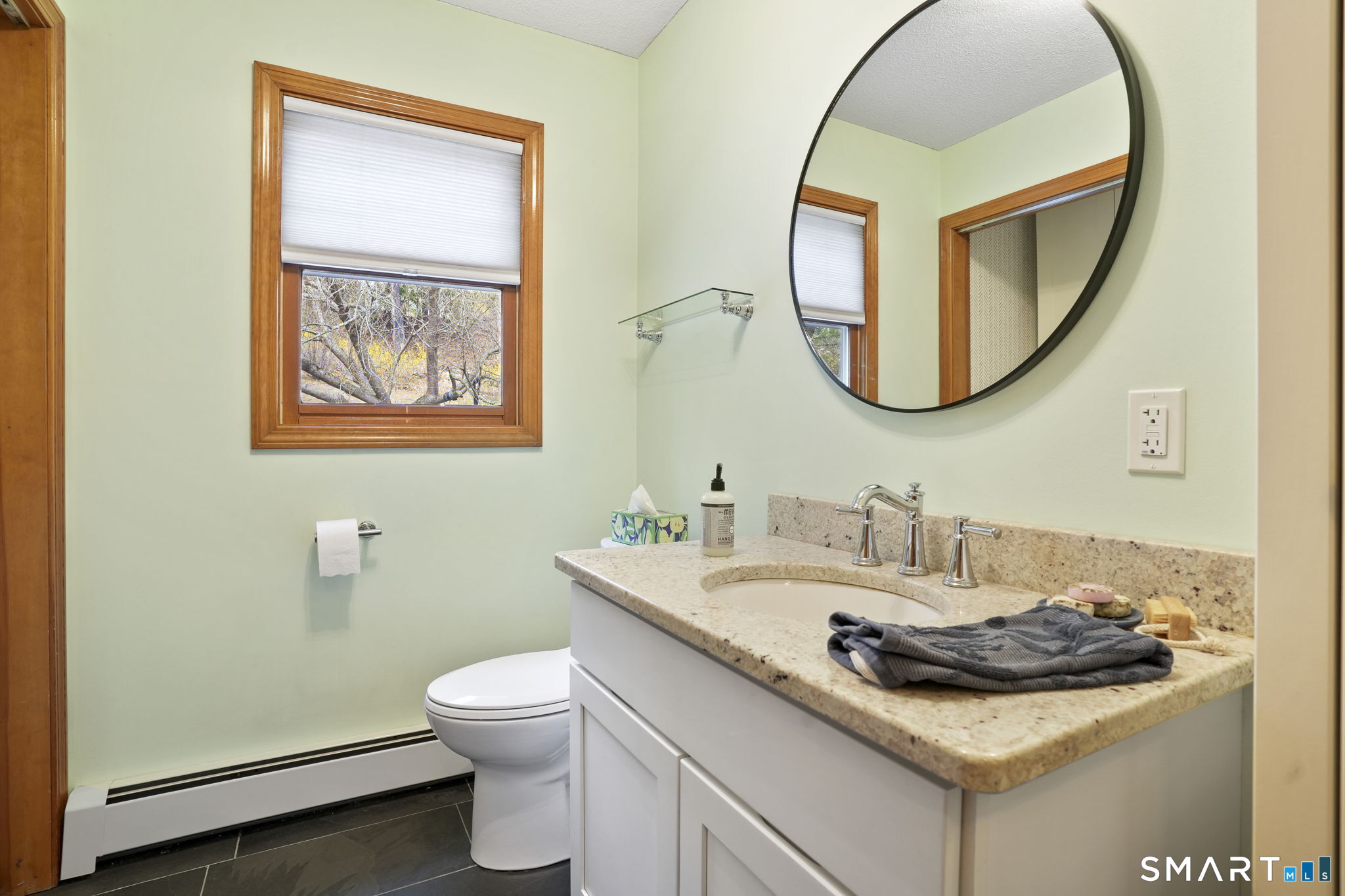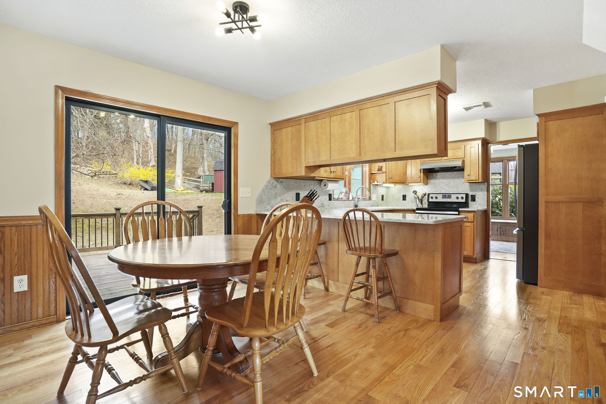 Perfectly positioned on just under an acre along a desirable residential street, this classic center hall Colonial offers timeless curb appeal w/ its symmetrical front facade, nine windows across, and a welcoming main entrance w/ sidelights & detailed trim. Low-maintenance vinyl siding and a two-car attached garage add to the home's everyday ease. Inside, you'll find over 2, 456 sf of living space, including a finished lower level. The main floor features recently refinished h/w floors, large-format modern tile & a functional layout designed for today's lifestyle. The kitchen is well-appointed w/ abundant cabinetry, granite countertops & space for a full-size dining table. Natural light pours in through oversized windows, creating a bright, inviting feel throughout. The living room is centered around a fireplace, offering a comfortable gathering space. Two new sliders provide seamless access to the recently remodeled, expansive deck, ideal for entertaining or simply enjoying the outdoors. Upstairs offers three well-sized bedrooms including a spacious primary suite featuring a private bath, walk-in closet, and an additional flex room perfect for a home office. Lower level adds +/- 800 sf of versatile living space. Outside, the property is designed to be enjoyed. The backyard offers a natural setting to explore, while the side yard provides plenty of room for recreation. A well-balanced combination of classic style, functional space & updates in a desirable Cheshire location!