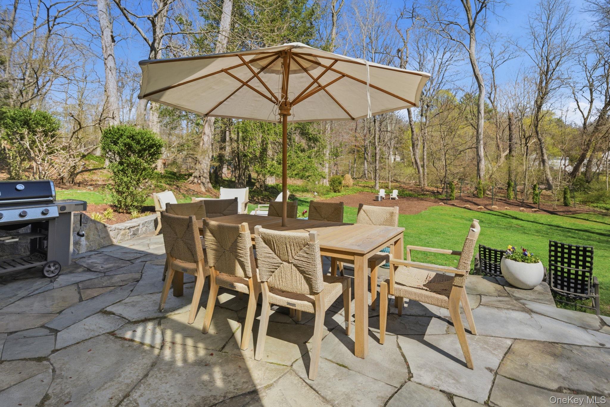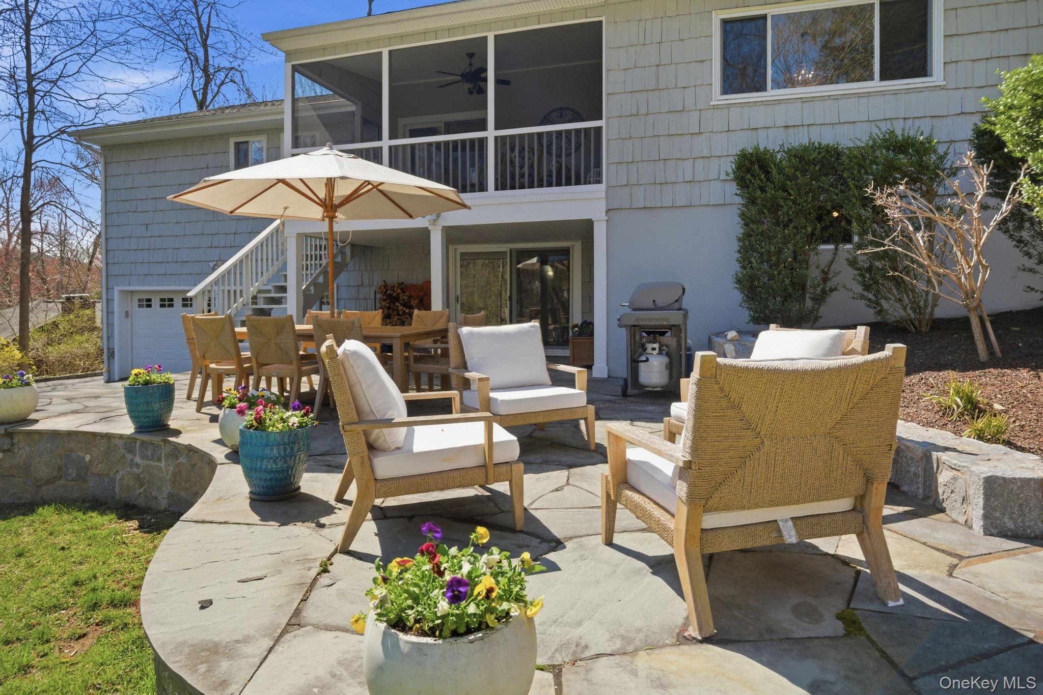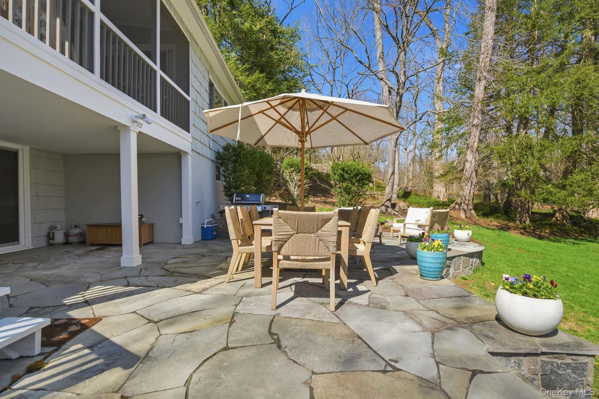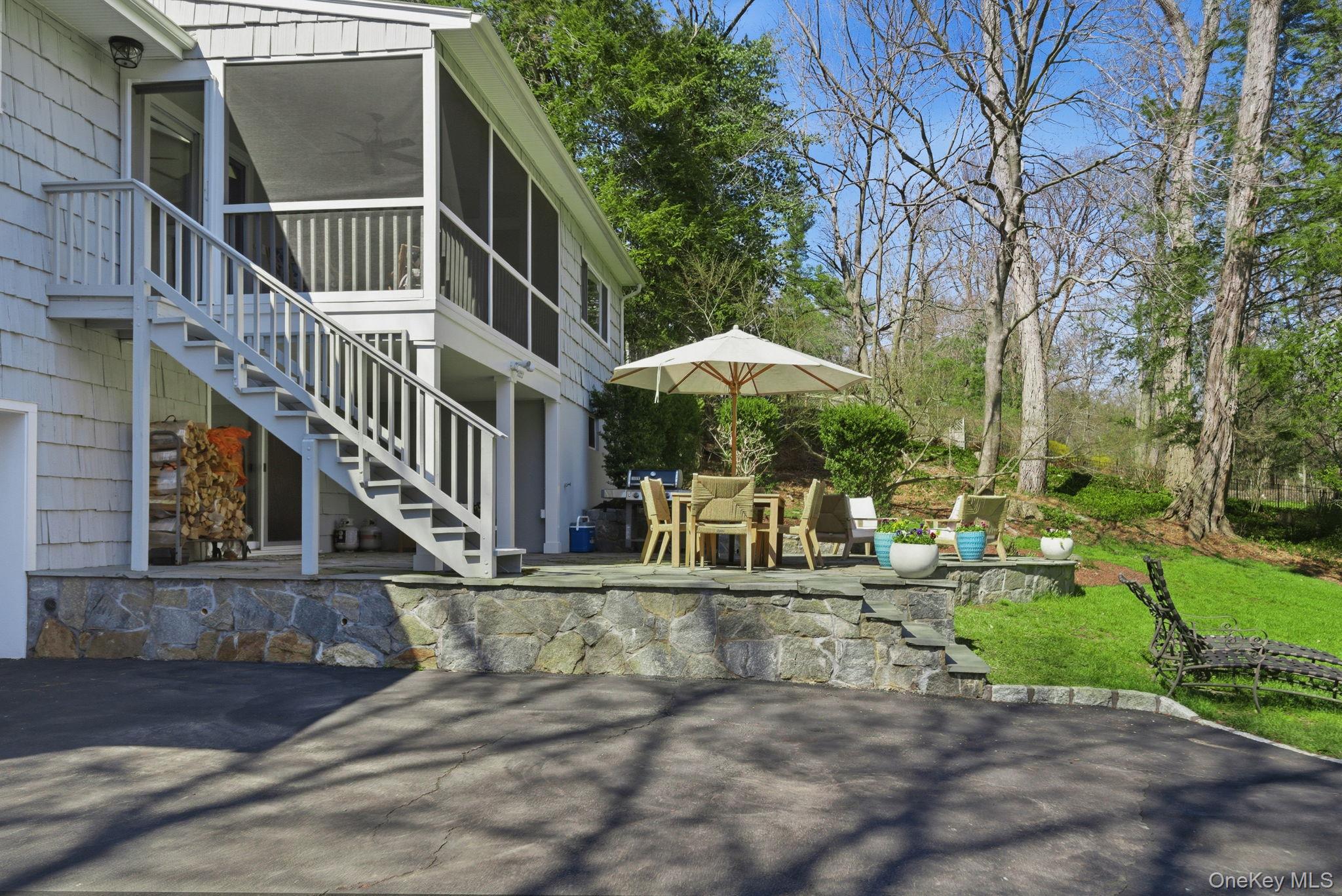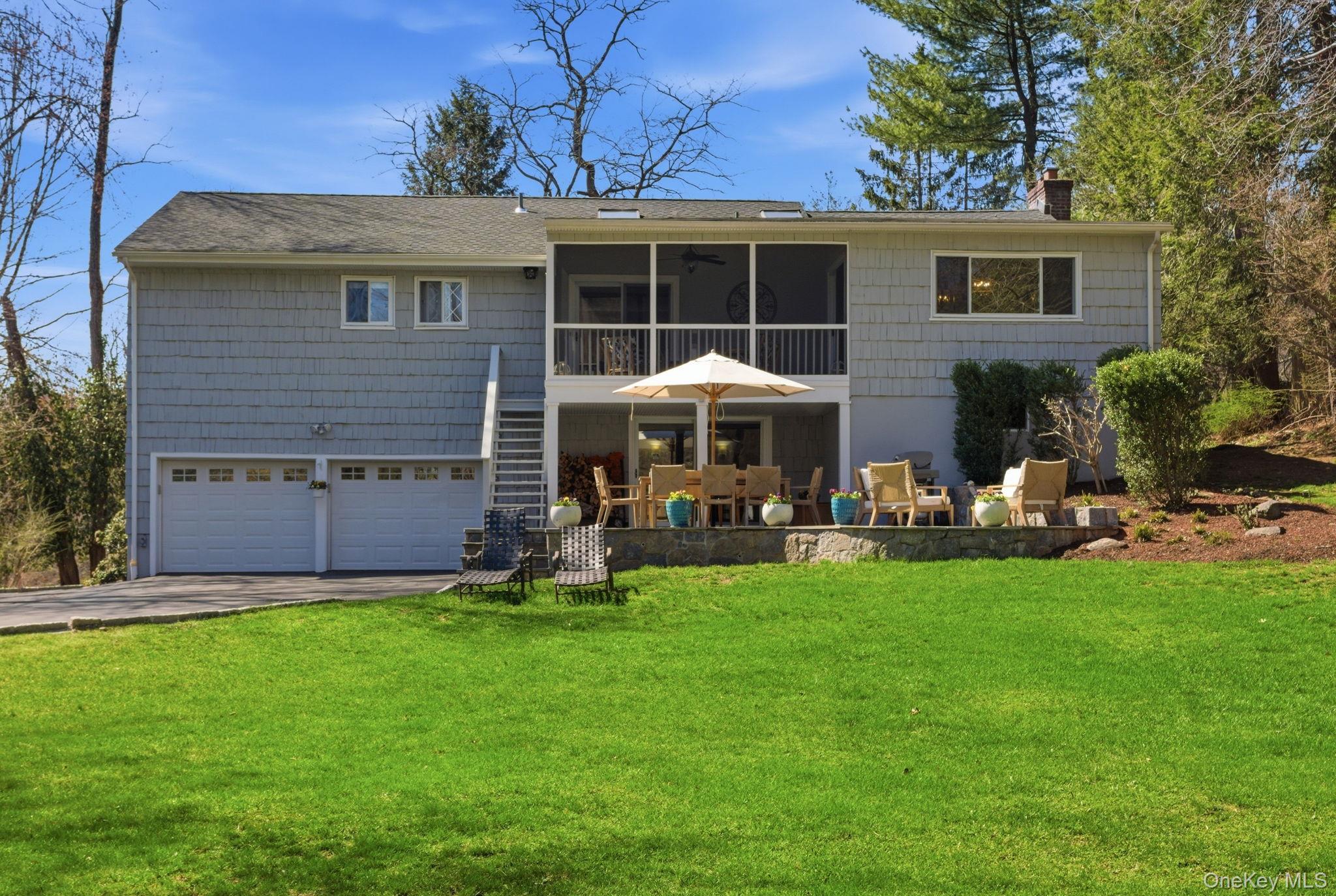 Welcome to 26 Meadow Lane, a pristine 2, 178-square-foot ranch set on over half an acre of flat, beautifully landscaped property in one of Chappaqua’s most coveted residential neighborhoods. A rocking chair front porch and Belgian block-lined driveway offer an immediate sense of arrival, while sidewalk-lined streets connect the neighborhood to the acclaimed village of Chappaqua, minutes from restaurants, shopping, playgrounds, the library, Metro-North rail service, and more. Situated within the highly sought-after Chappaqua Central School District, including Roaring Brook Elementary and Robert E. Bell Middle School. The sun-drenched main level features a cathedral-ceiling living room anchored by a dramatic stone fireplace that adds immediate texture, warmth, and luxury to the space. The formal dining room overlooks a stunning yard, while the expansive skylit eat-in kitchen with cathedral ceiling offers an abundance of counter space, a center island, and a built-in entertaining hutch with glass-front cabinetry. A screened porch flows to an expanded stone patio below that lives like a true outdoor living room, seamlessly extending your entertaining space into the beautifully level yard. The primary suite with renovated en-suite bath, two additional bedrooms, a full hall bathroom, and a home office complete the main level. The lower level is anchored by an expansive family room with slider to the patio, complemented by a mudroom, laundry room, half bath, and generous storage throughout. Additional highlights include wood floors, custom closet organizers, extensive crown molding throughout, whole-house generator hookup, dual-zone heating and central air, two-car attached garage, and fresh paint throughout. Legal three-bedroom with flexible four-bedroom living, 2. 5 baths, septic, public water, and natural gas. Immaculate, versatile, and perfectly positioned for future expansion.