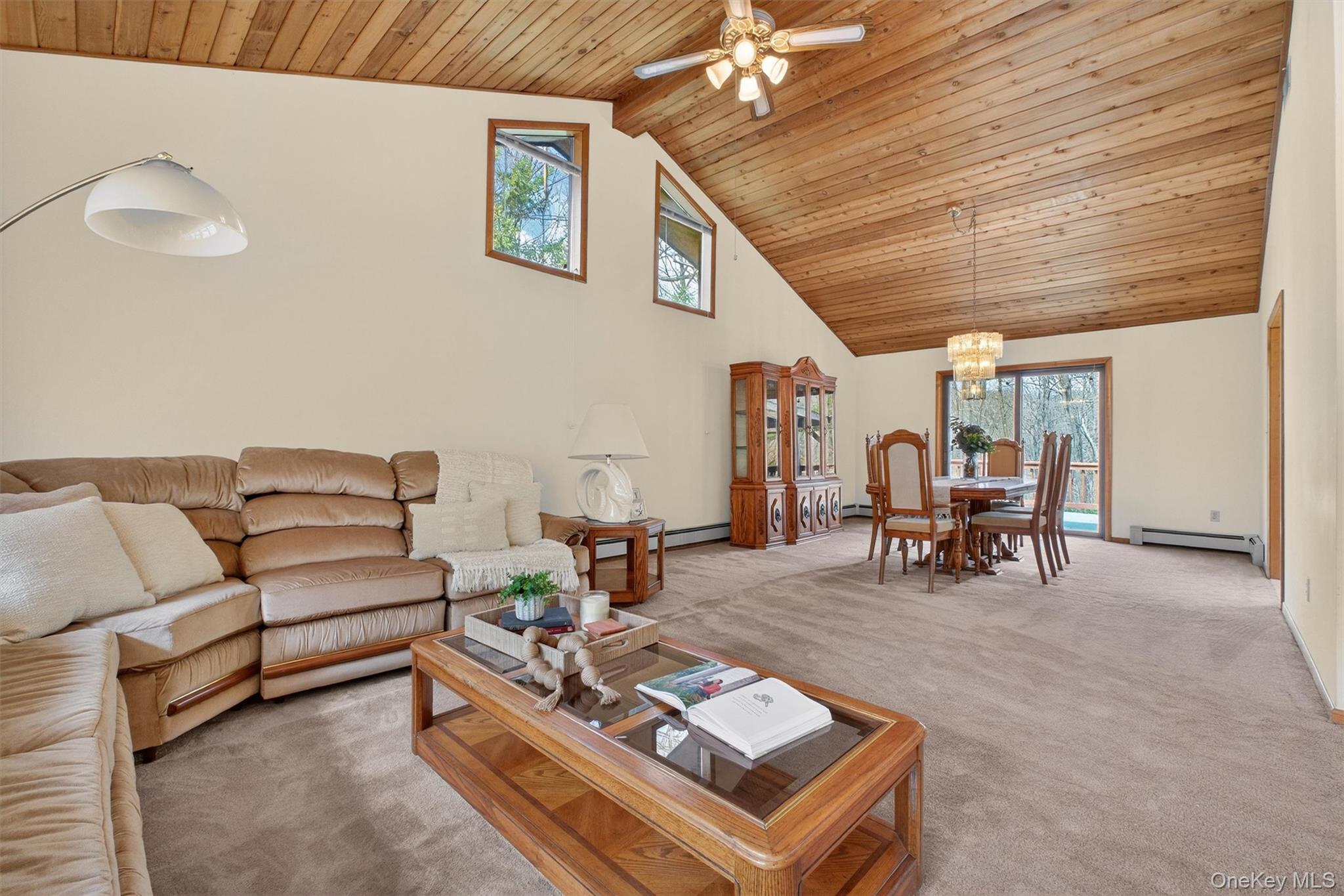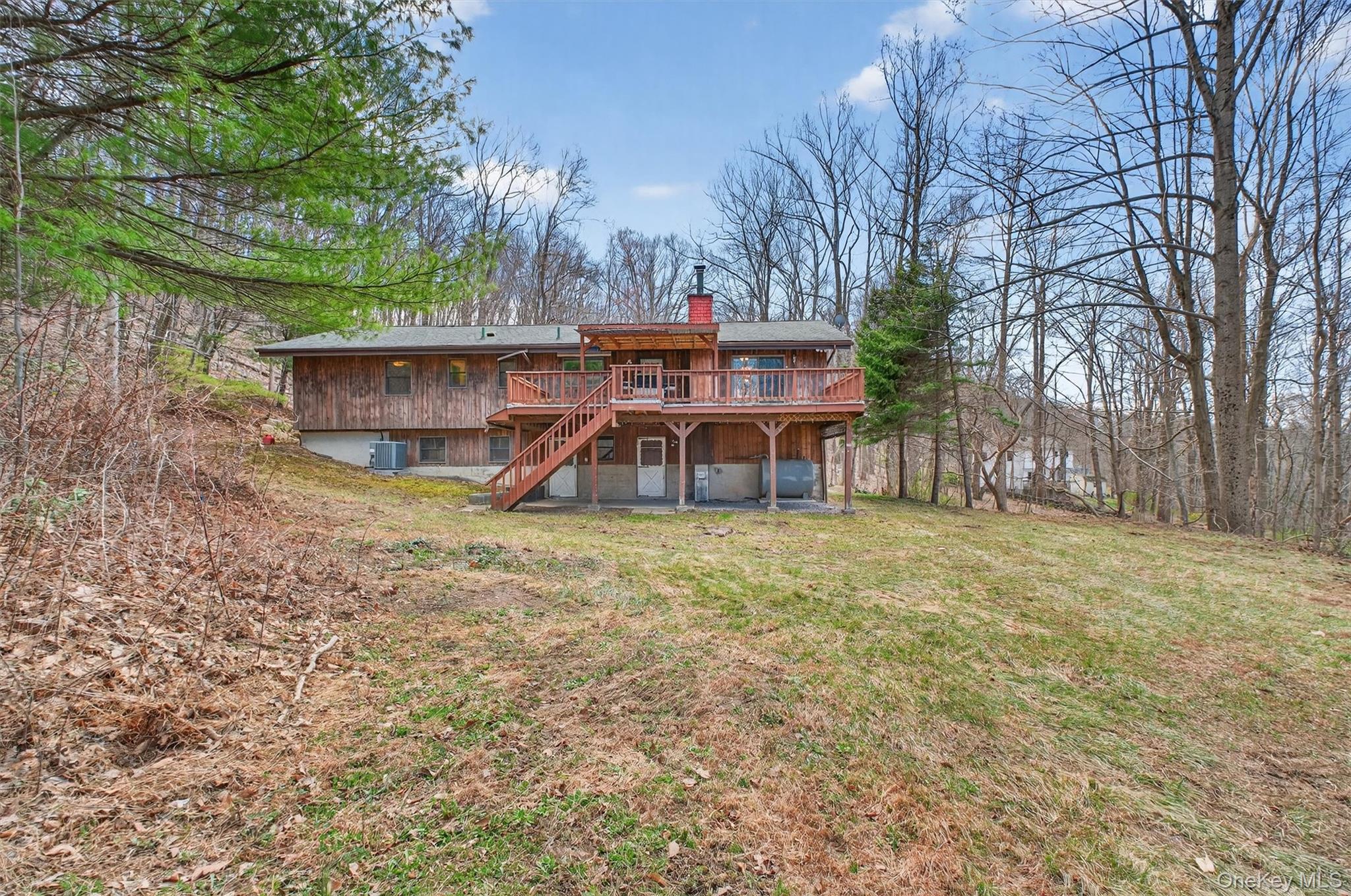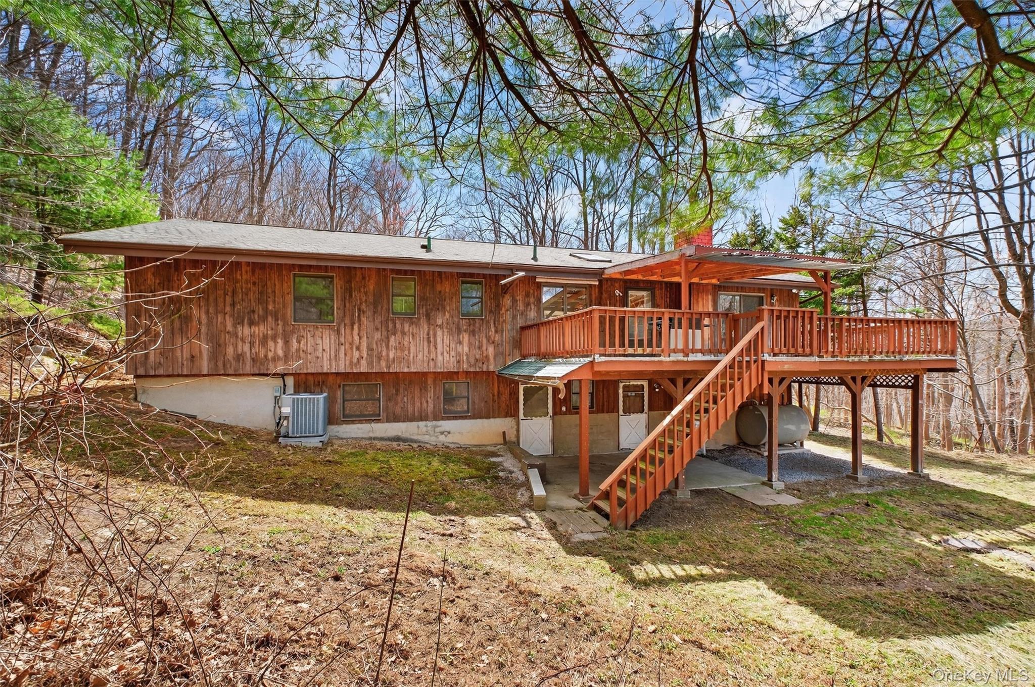 Nestled on 2. 8-acre this meticulously maintained contemporary raised ranch—proudly owned by its original? owners—offers a seamless blend of comfort and style. Enjoy a treehouse-like setting, where every window frames a picturesque view of the surrounding nature. Upon entering, you'll be captivated by the spacious living room, dining room and eat in kitchen offering vaulted cedar ceilings and an abundant amount of custom skylights and windows throughout the home offering lots of natural light and enhancing the home's bright and welcoming ambiance. Retreat to the primary suite including en-suite bath with shower, while two additional bedrooms and a full hall bath complete the main level. The lower level offers a large recreation room, den/office, bath, laundry, and generous storage space. Additional highlights include central air (2024), central vacuum, roof approximately 8 years old with 40-year shingles, 6 year old well pump, oversized 2-car garage, and an outdoor shed. Enjoy the perfect balance of privacy and convenience—in under 15 minutes you can enjoy the charming Village of Cold Spring and Garrison, known for boutique shopping, dining, and Hudson River views plus ideally located 5 miles to the Garrison Metro North Train Station.