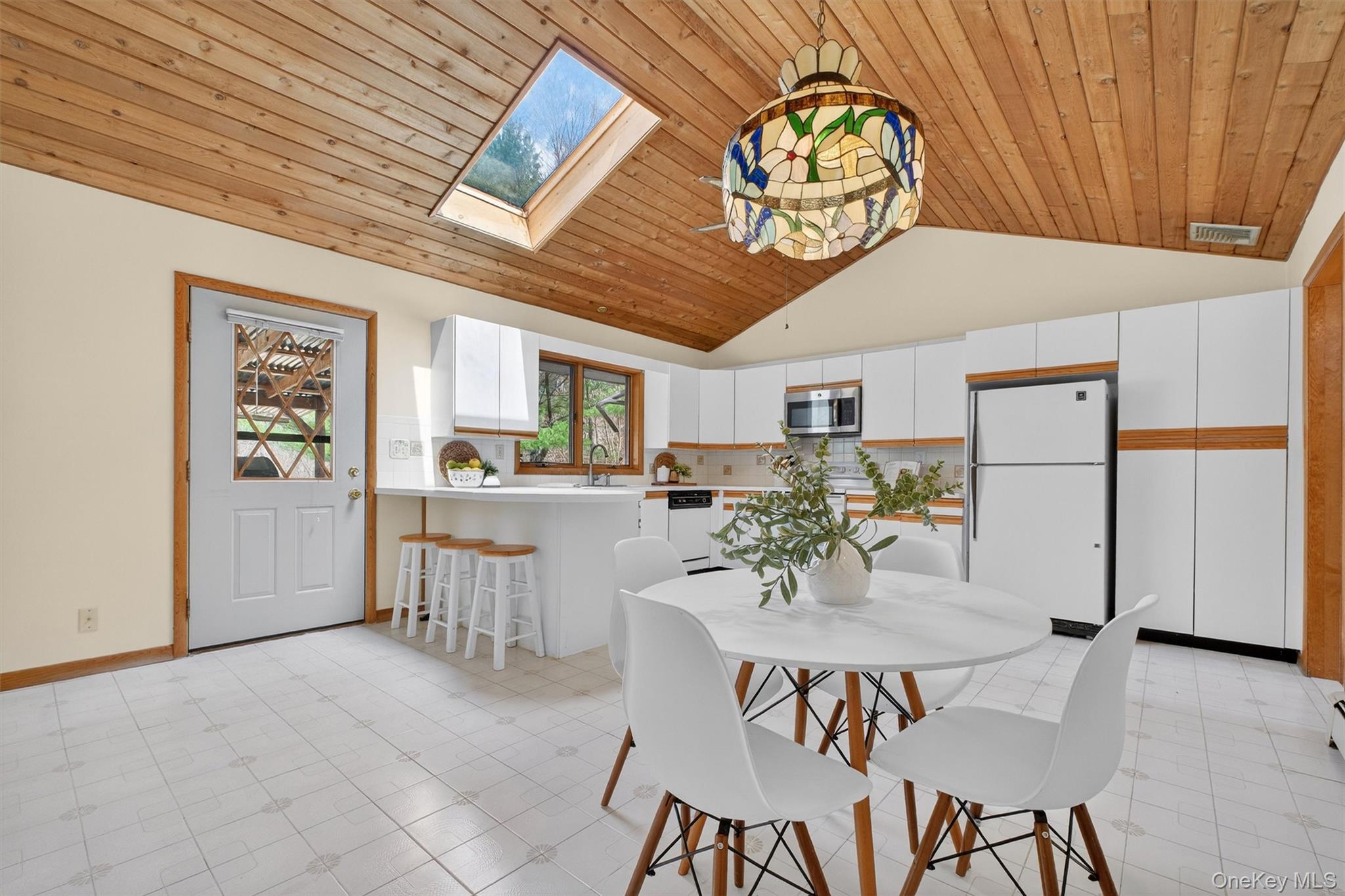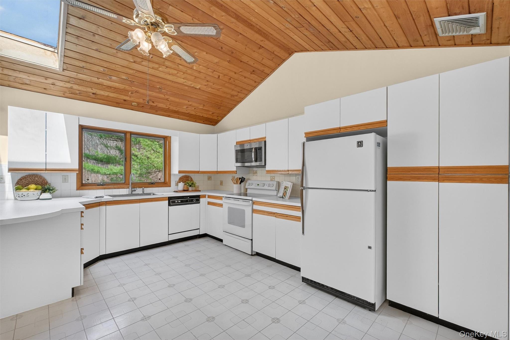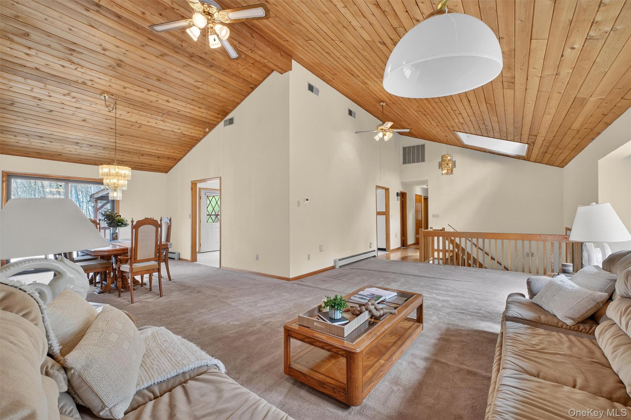 Nestled on 2. 8-acre this meticulously maintained contemporary raised ranch—proudly owned by its original? owners—offers a seamless blend of comfort and style. Enjoy a treehouse-like setting, where every window frames a picturesque view of the surrounding nature. Upon entering, you'll be captivated by the spacious living room, dining room and eat in kitchen offering vaulted cedar ceilings and an abundant amount of custom skylights and windows throughout the home offering lots of natural light and enhancing the home's bright and welcoming ambiance. Retreat to the primary suite including en-suite bath with shower, while two additional bedrooms and a full hall bath complete the main level. The lower level offers a large recreation room, den/office, bath, laundry, and generous storage space. Additional highlights include central air (2024), central vacuum, roof approximately 8 years old with 40-year shingles, 6 year old well pump, oversized 2-car garage, and an outdoor shed. Enjoy the perfect balance of privacy and convenience—in under 15 minutes you can enjoy the charming Village of Cold Spring and Garrison, known for boutique shopping, dining, and Hudson River views plus ideally located 5 miles to the Garrison Metro North Train Station.