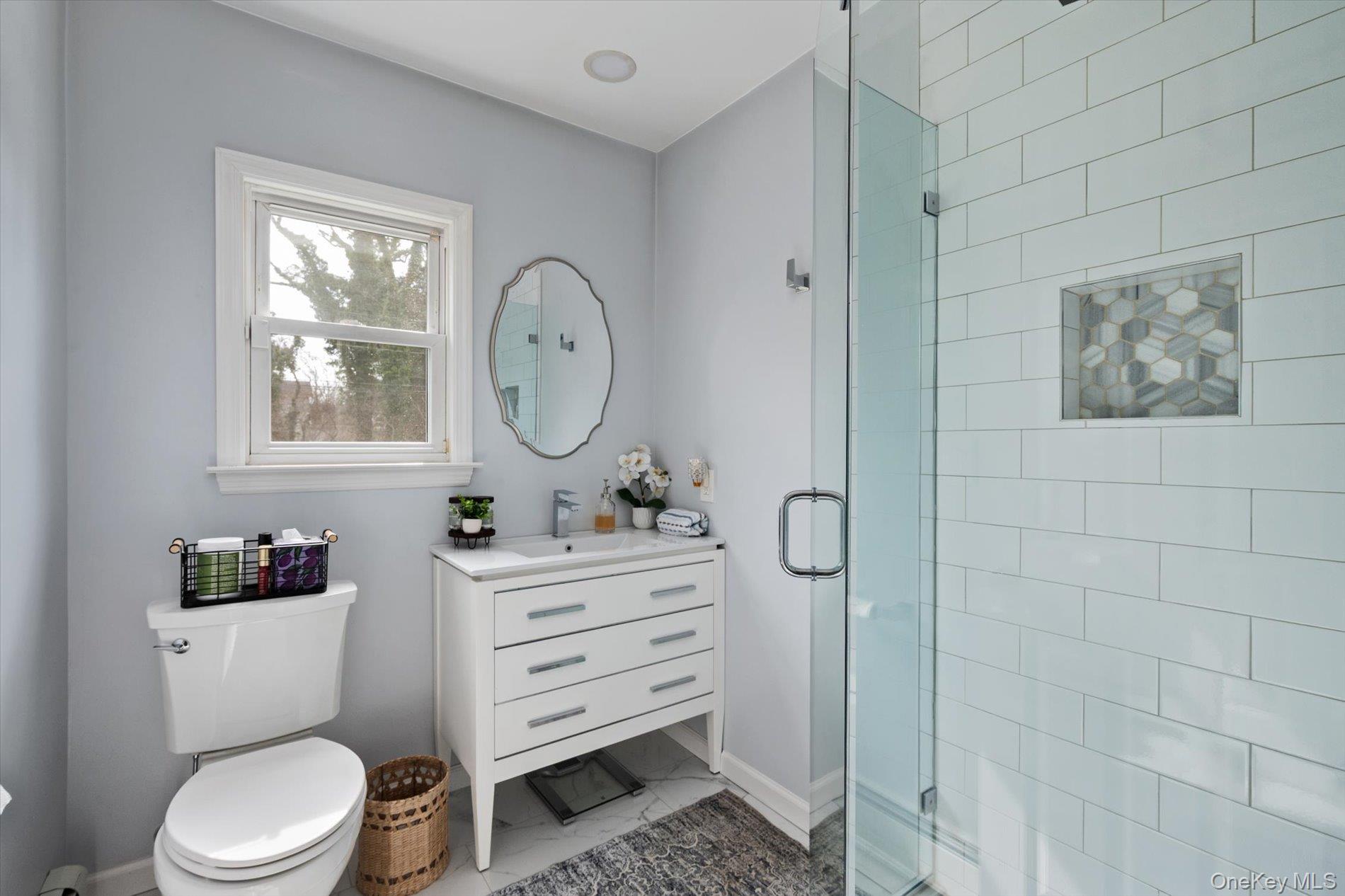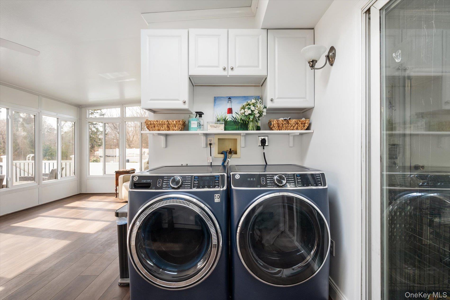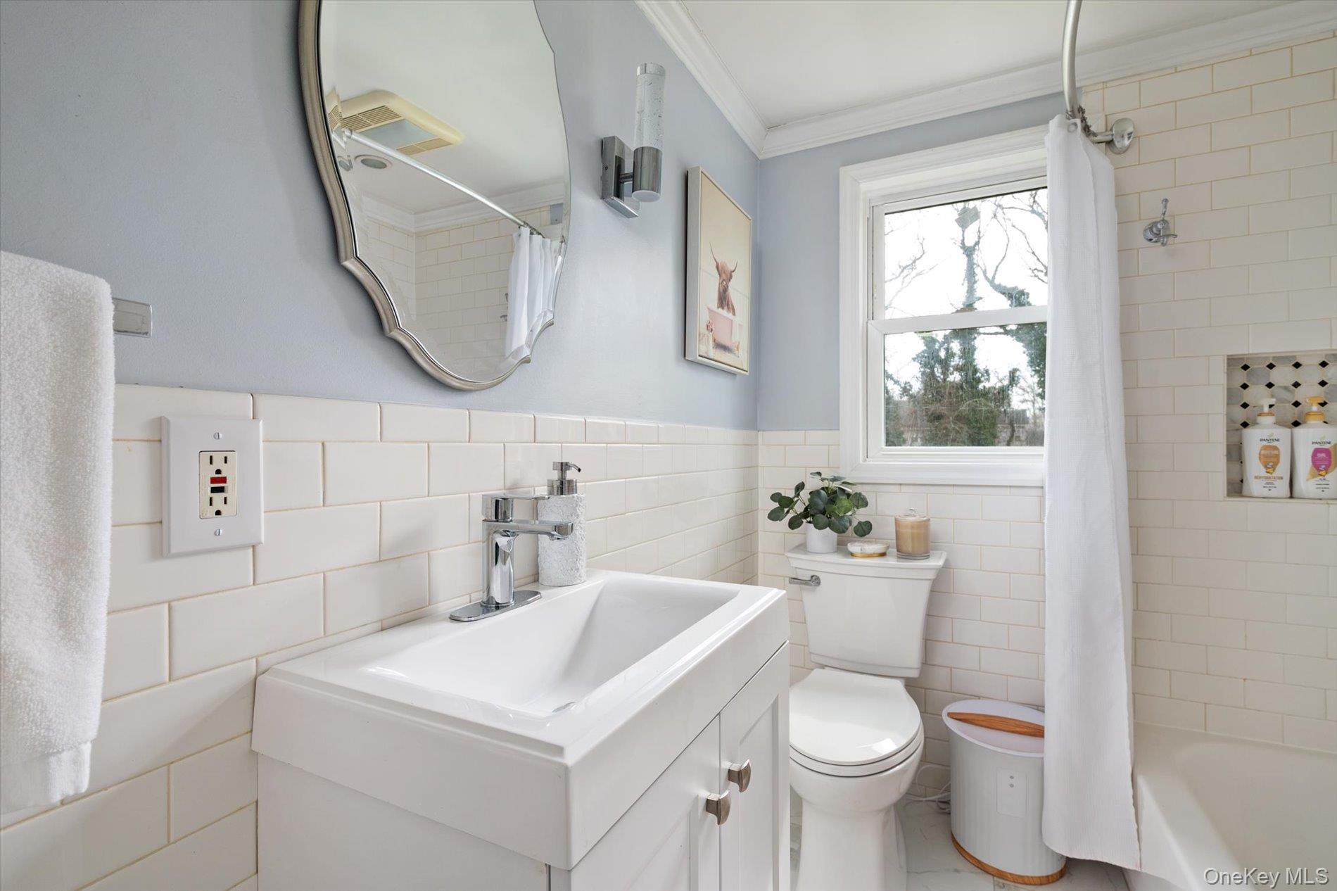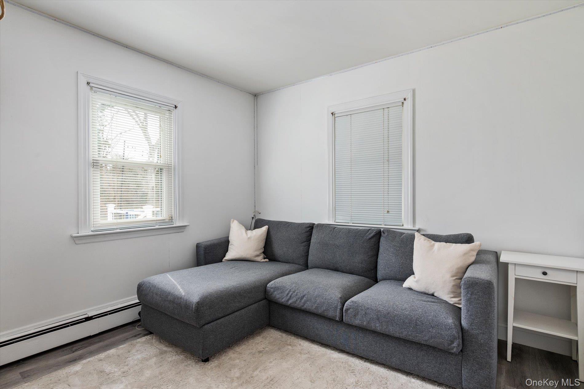 Welcome to this beautifully renovated 4-bedroom, 2 full bathroom home set on approximately half an acre in East Patchogue. Originally built in 1954 and thoughtfully updated, this property offers a blend of modern finishes and functional living space. The main level features a bright living area with a wood burning fireplace, and updated flooring. The renovated kitchen comes with custom cabinetry, quartz countertops, stainless steel appliances, and a tiled backsplash as well as a pot filler!! The true conversation piece of any modern kitchen. Just off the kitchen is a formal dining room (currently being used as an office). The FDR has access to the garage and a sun-filled bonus room that provides additional living and laundry space with views of the backyard and direct access to the deck through the sliding door. BTW the TVs are included! The full bathrooms have been updated, and all 4 bedrooms offer comfortable space and plenty of storage. There are 2 bedrooms upstairs and a full bathroom. Additional features include a full basement with high ceilings, providing excellent storage or potential finishing for future use. The home is equipped with oil heat, baseboard heating, central air conditioning, and supplemental mini-split systems for added efficiency. Solar panels (leased) help offset utility costs. Exterior features include a spacious deck, large yard, shed, attached one-car garage with interior access and charming landscaping. There is space to garden, add a pool or firepit.