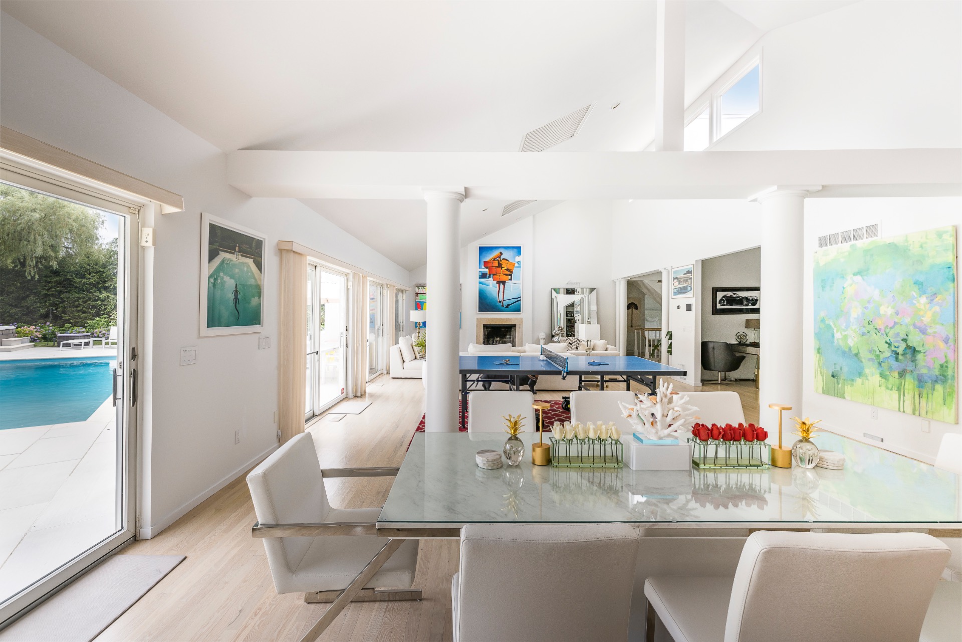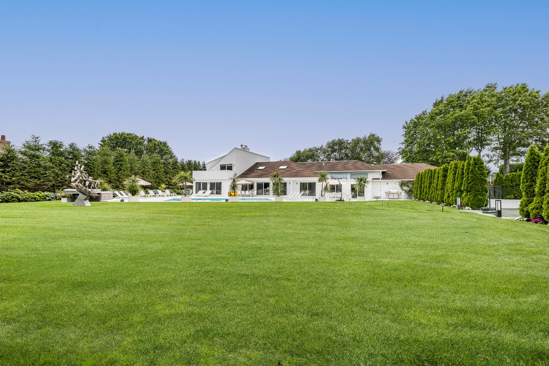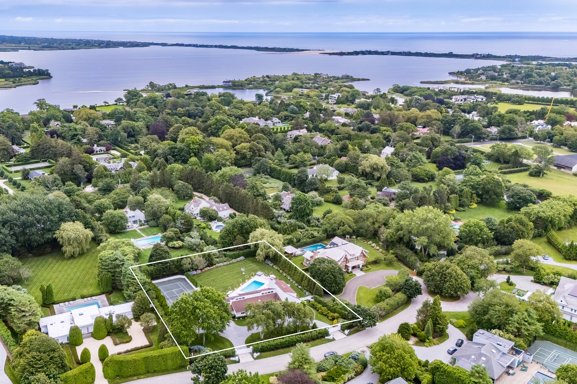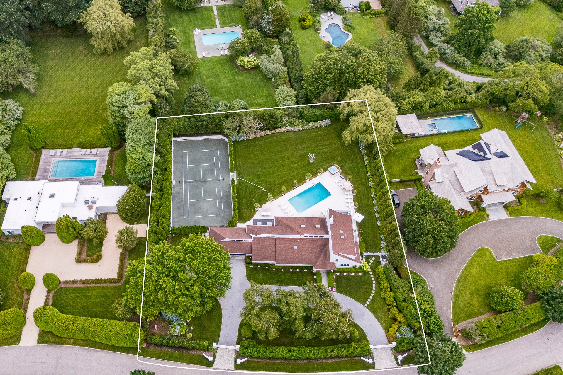 This renovated, Post Modern, 6-bedroom, 7-bath home has a new kitchen and sunroom, heated pool and tennis plus lovely landscaping for privacy. There are 2 bedrooms on main level and 3 on second floor plus one in walkout lower level. Lower level has a playroom or media room plus home office and wine cellar.