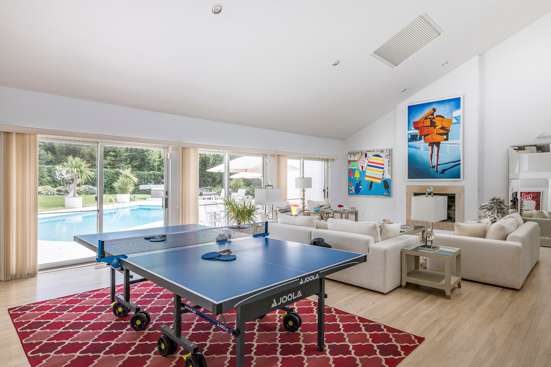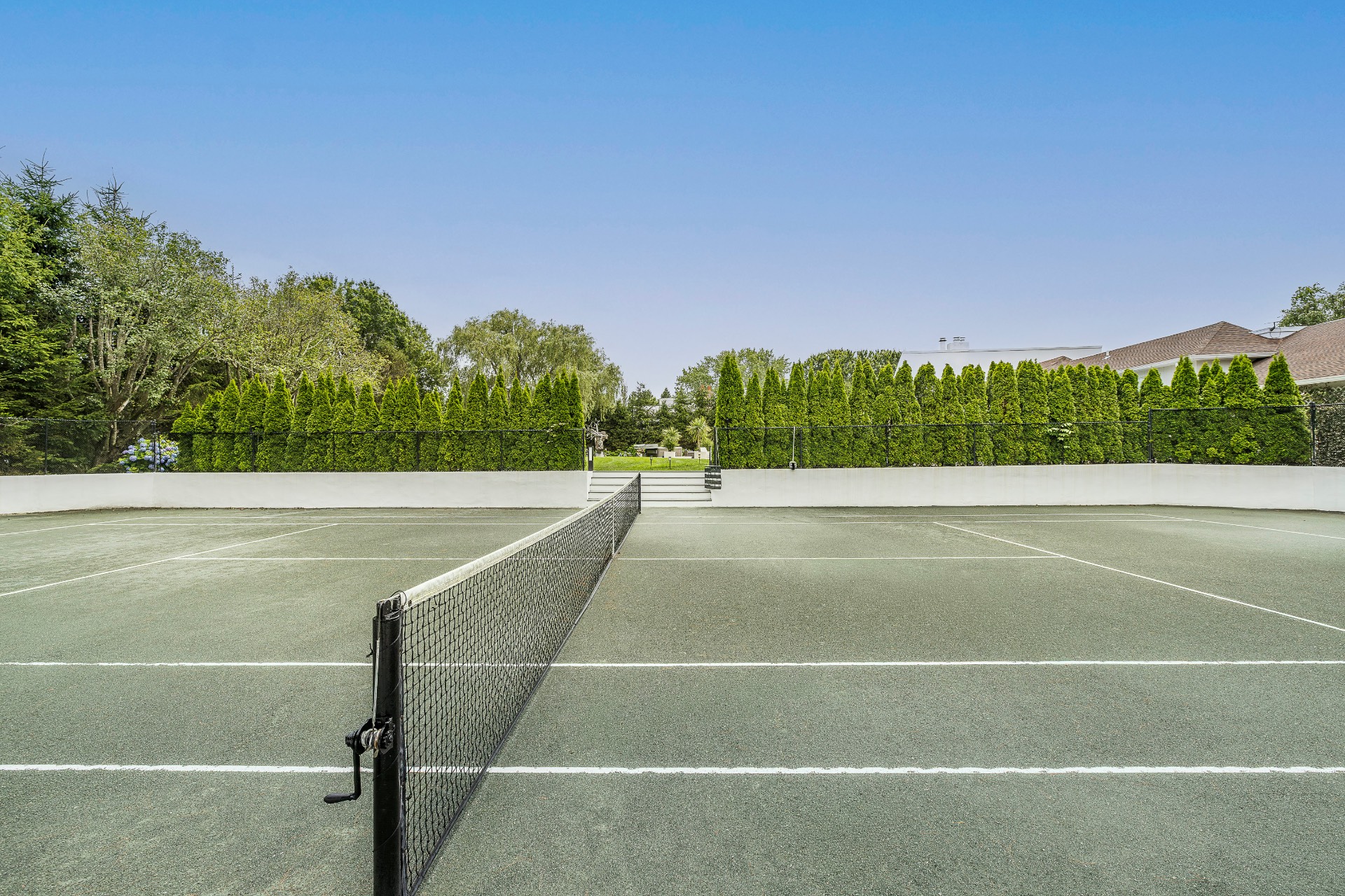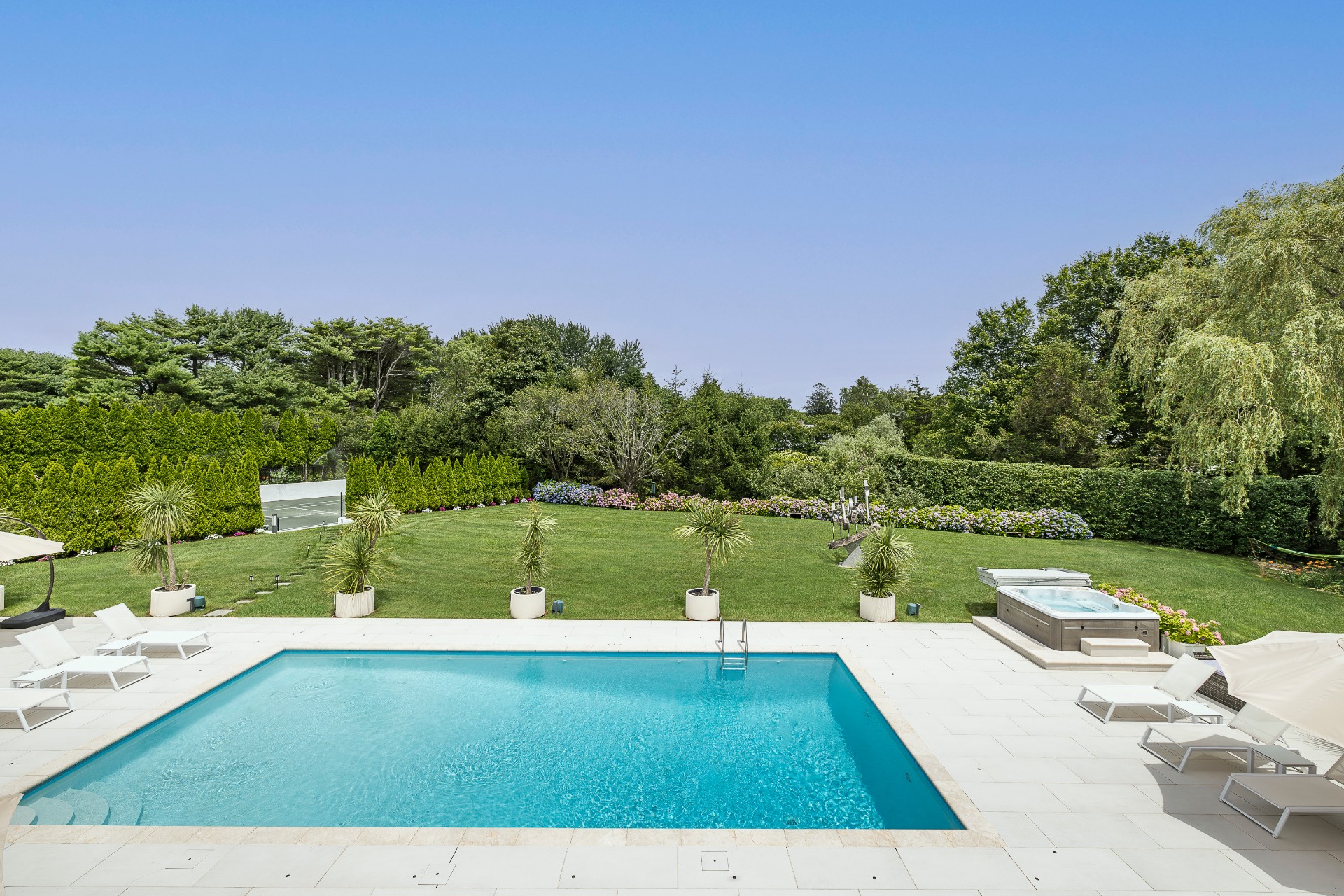 This renovated, Post Modern, 6-bedroom, 7-bath home has a new kitchen and sunroom, heated pool and tennis plus lovely landscaping for privacy. There are 2 bedrooms on main level and 3 on second floor plus one in walkout lower level. Lower level has a playroom or media room plus home office and wine cellar.