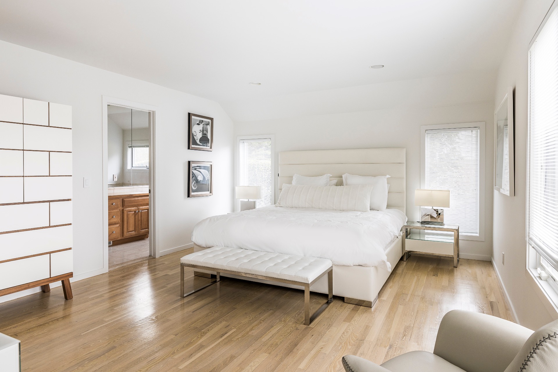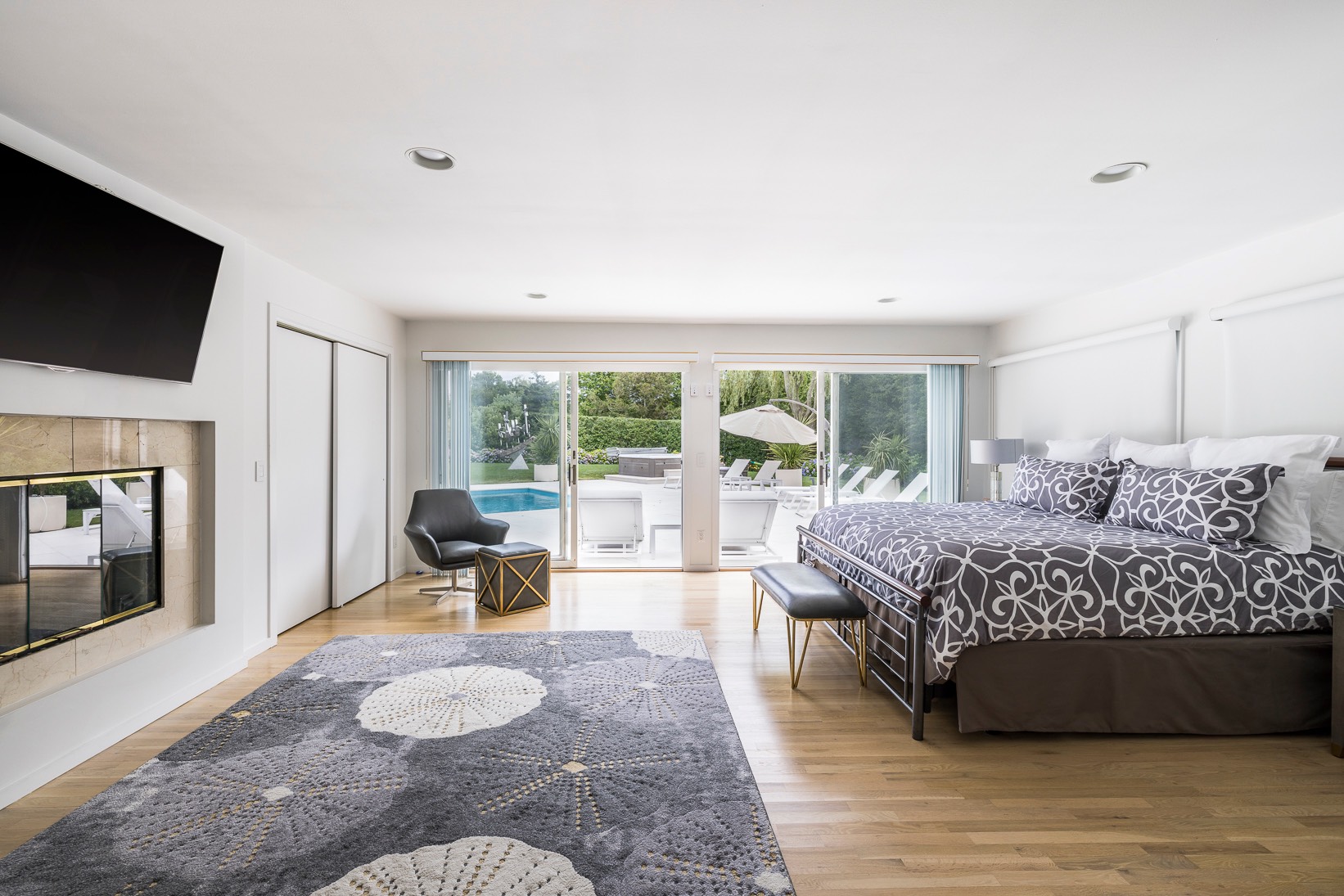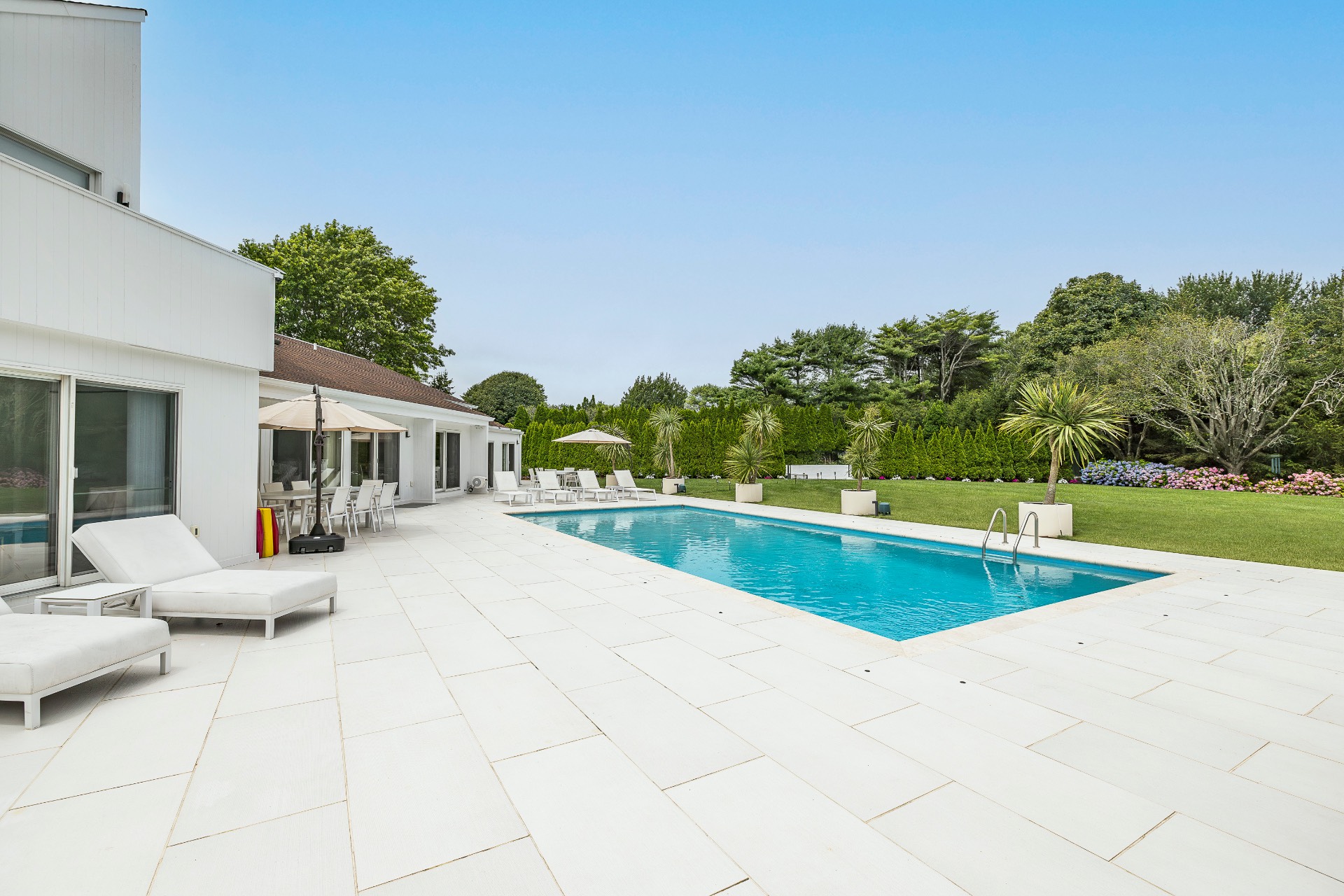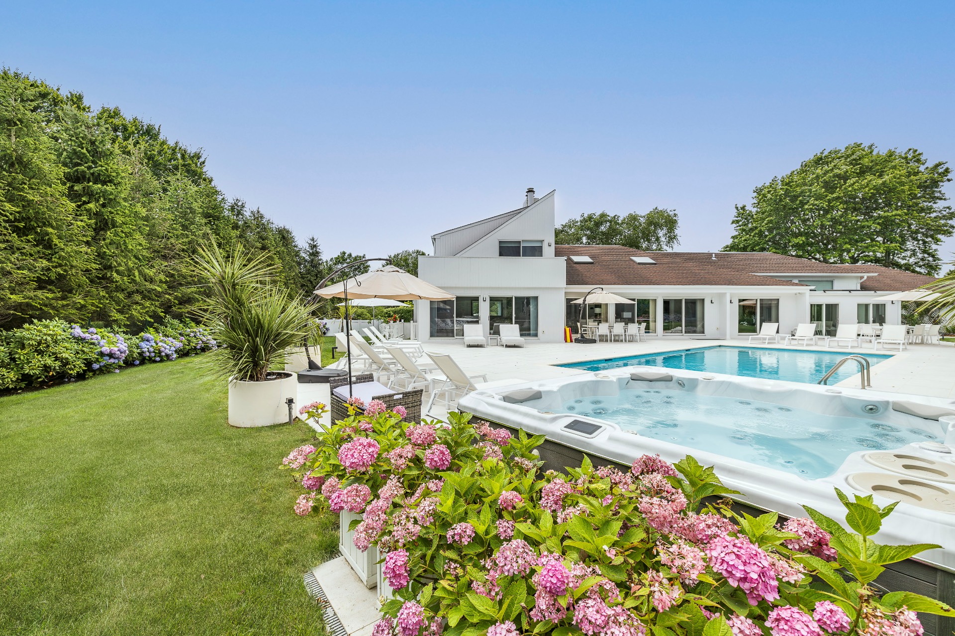 This renovated, Post Modern, 6-bedroom, 7-bath home has a new kitchen and sunroom, heated pool and tennis plus lovely landscaping for privacy. There are 2 bedrooms on main level and 3 on second floor plus one in walkout lower level. Lower level has a playroom or media room plus home office and wine cellar.