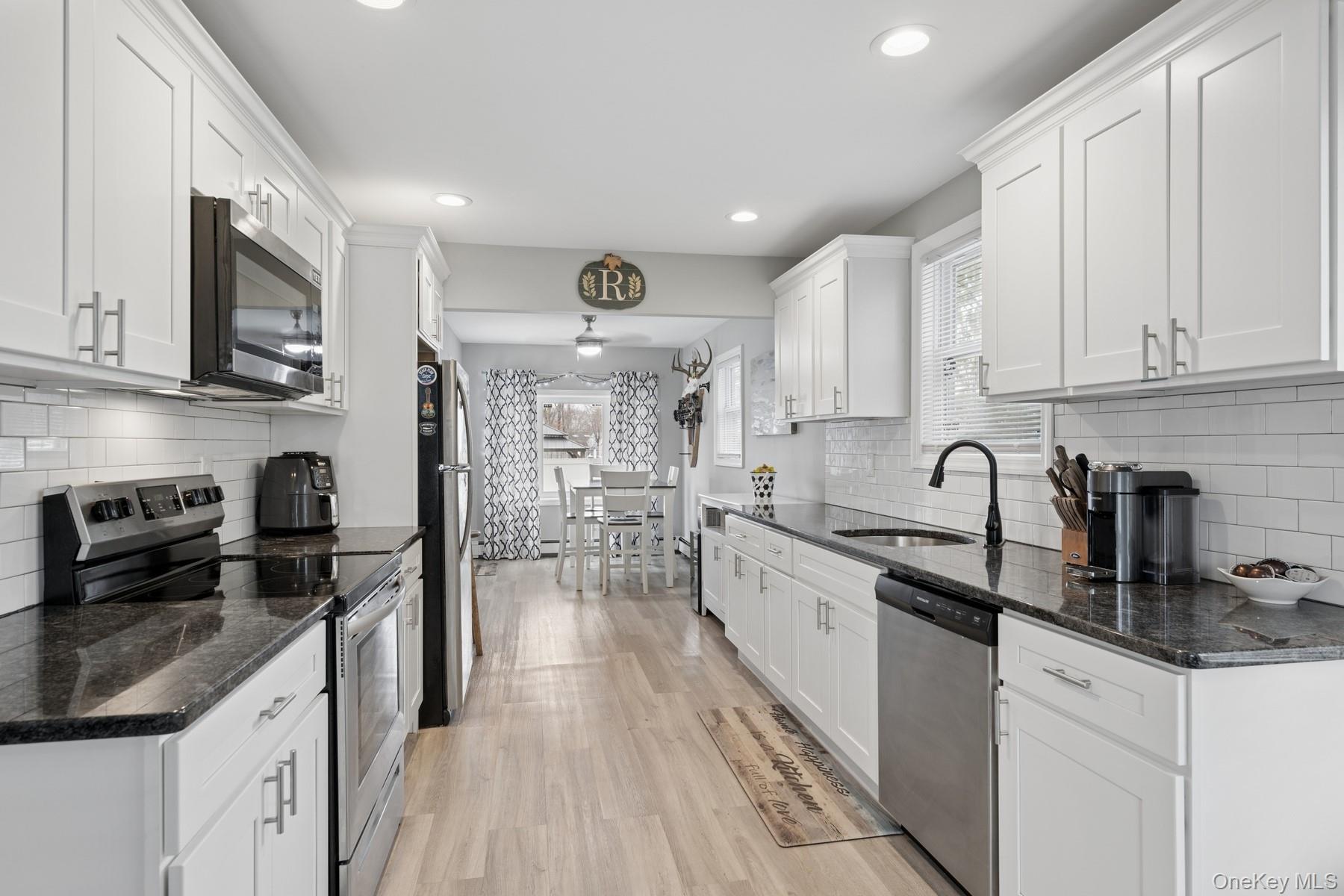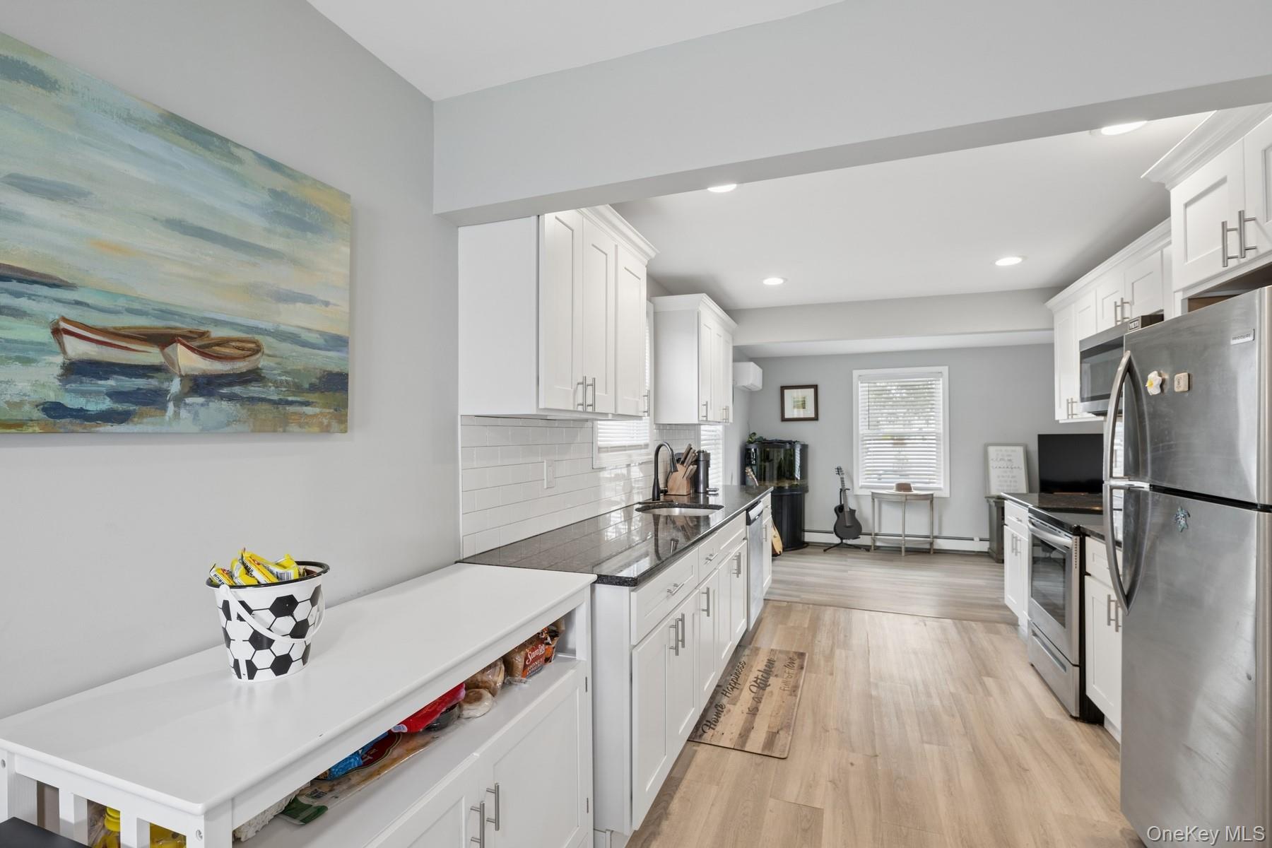 Completely renovated ranch in 2019. Features new kitchen with stainless steel appliances, cabinets, and granite countertops. Updated full bath. Large primary bedroom with vaulted ceilings. Open floor plan ideal for entertaining. Full basement with outside entrance. Situated on 100x100 lot. Located in the Islip Farm Section.