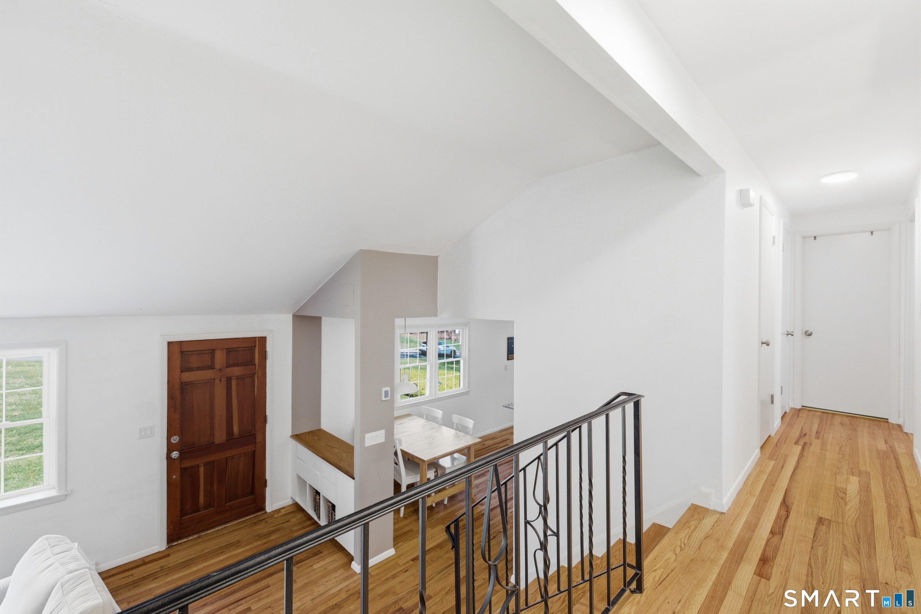 Welcome to 93 Old Meadow Plain Road! Conveniently located, this 4-bedroom, 2. 5-bathroom home offers tons of space, modern style, and comfort. Upon entering the home, to the right, you enter the living room, featuring dramatic vaulted ceilings, a wood-burning fireplace as the focal point, a beautiful picture window overlooking the front yard, and hardwood floors that extend through much of the home. The open-concept kitchen and dining area shines with granite countertops, new cabinetry, a farmhouse sink and new stainless-steel appliances- including an induction cooktop. The kitchen flows into a spacious ground-level family room allowing tons of furniture placement options and a door leading the exterior. This level also includes a bedroom, half bath, and laundry. Upstairs offers three well-sized bedrooms, including a primary suite with its own full bath, plus an additional full bath in the hall. The basement level provides great flex space for an office, gym, or playroom. Highlights include new Central Air, public water and sewer, gas utilities with a new high-efficiency, on-demand hot water, replacement windows, a 2-car attached garage, and a level, private 1+ acre lot. A must see!