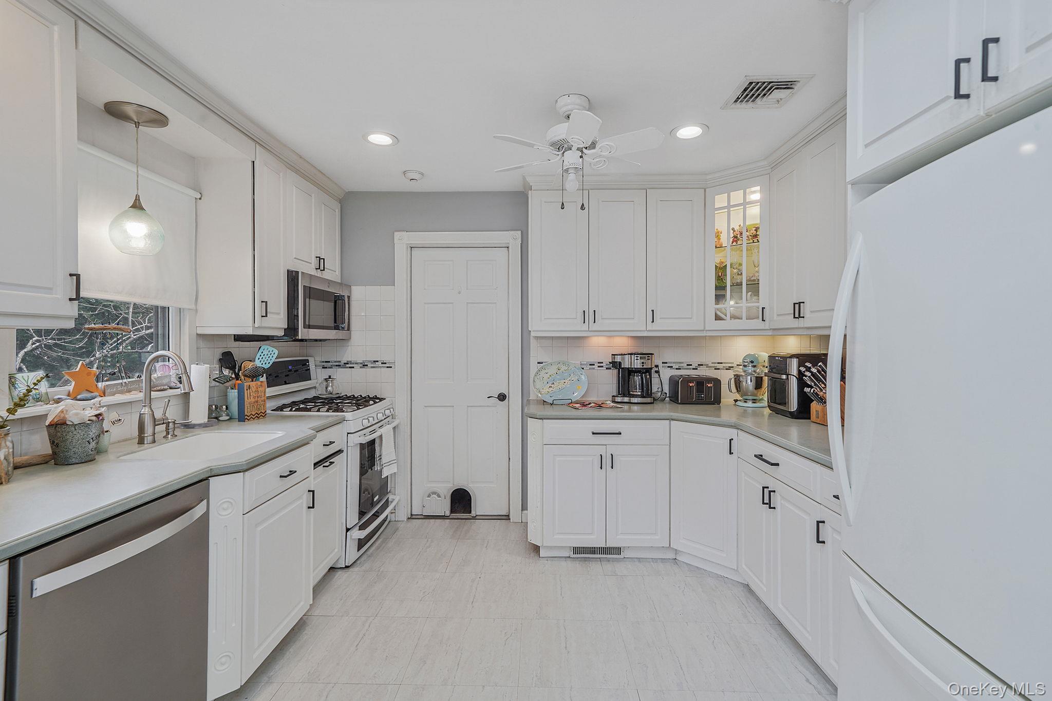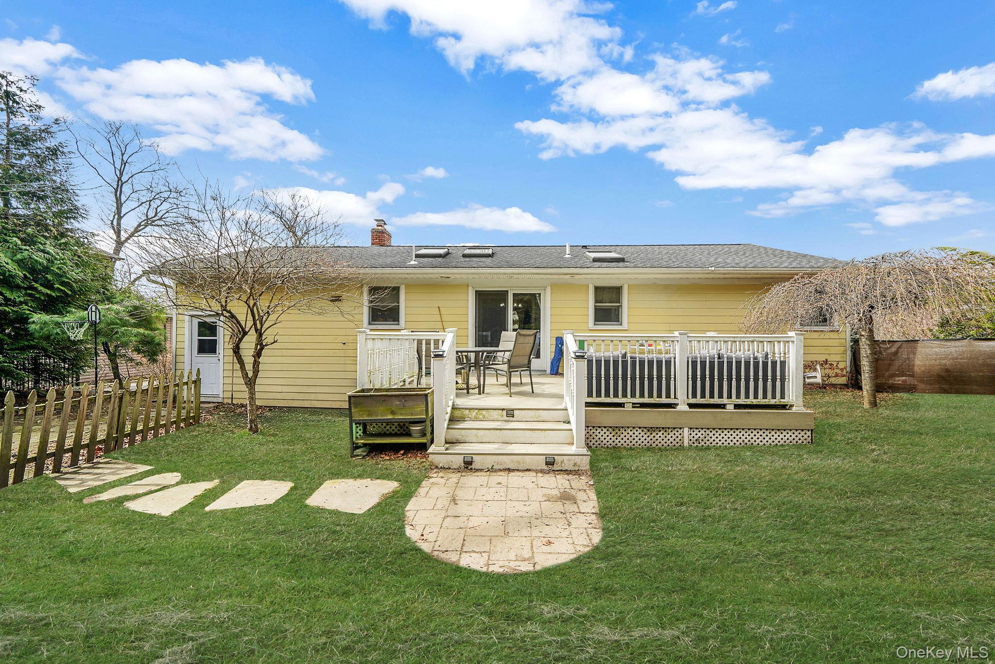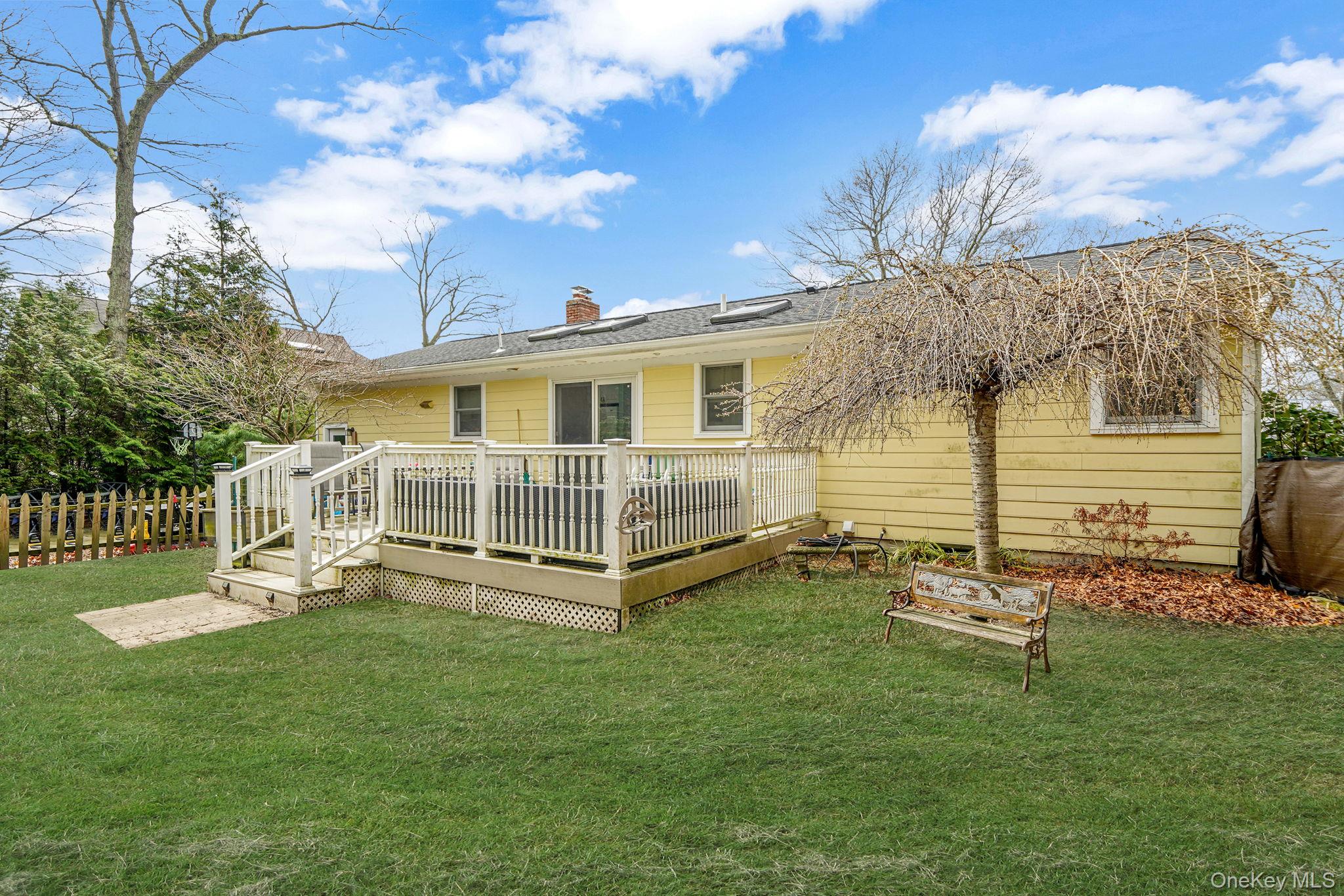 Welcome to this Fabulous Sun-Filled 3 Bedroom, 1 Bath Ranch nestled in the desirable Sound Beach community located in the Famed Miller Place School District. From the moment you arrive you are greeted by a nicely landscaped property, a fully fenced yard, and an attached 1-car garage, offering both charm and convenience. Step inside to discover a warm and inviting interior featuring hardwood floors, cathedral ceilings, and an abundance of natural light enhanced by three skylights. The spacious living room is the perfect place to relax, highlighted by a cozy wood-burning fireplace that adds character and comfort. The home boasts custom moldings and paint, high hat lighting, ceiling fans, and custom light fixtures throughout, creating a stylish and cohesive design. The large eat-in kitchen is both functional and inviting, featuring white cabinetry, Corian countertops, and ample space for cooking and entertaining. Additional interior highlights include luxury vinyl plank flooring in the bedrooms, Andersen windows, new doors and knobs, central air conditioning, and a built-in internal vacuum system for added convenience. The home also offers a full basement and pull-down attic, providing plenty of storage and additional potential, along with 200-amp electric for modern efficiency. Step outside to enjoy the Trex deck overlooking the backyard, perfect for relaxing or entertaining. Conveniently located 6 minutes away to local beaches, parks, shopping, and dining, this move-in ready home offers the perfect combination of comfort, style, and location. Don’t miss this incredible opportunity—this home won’t last