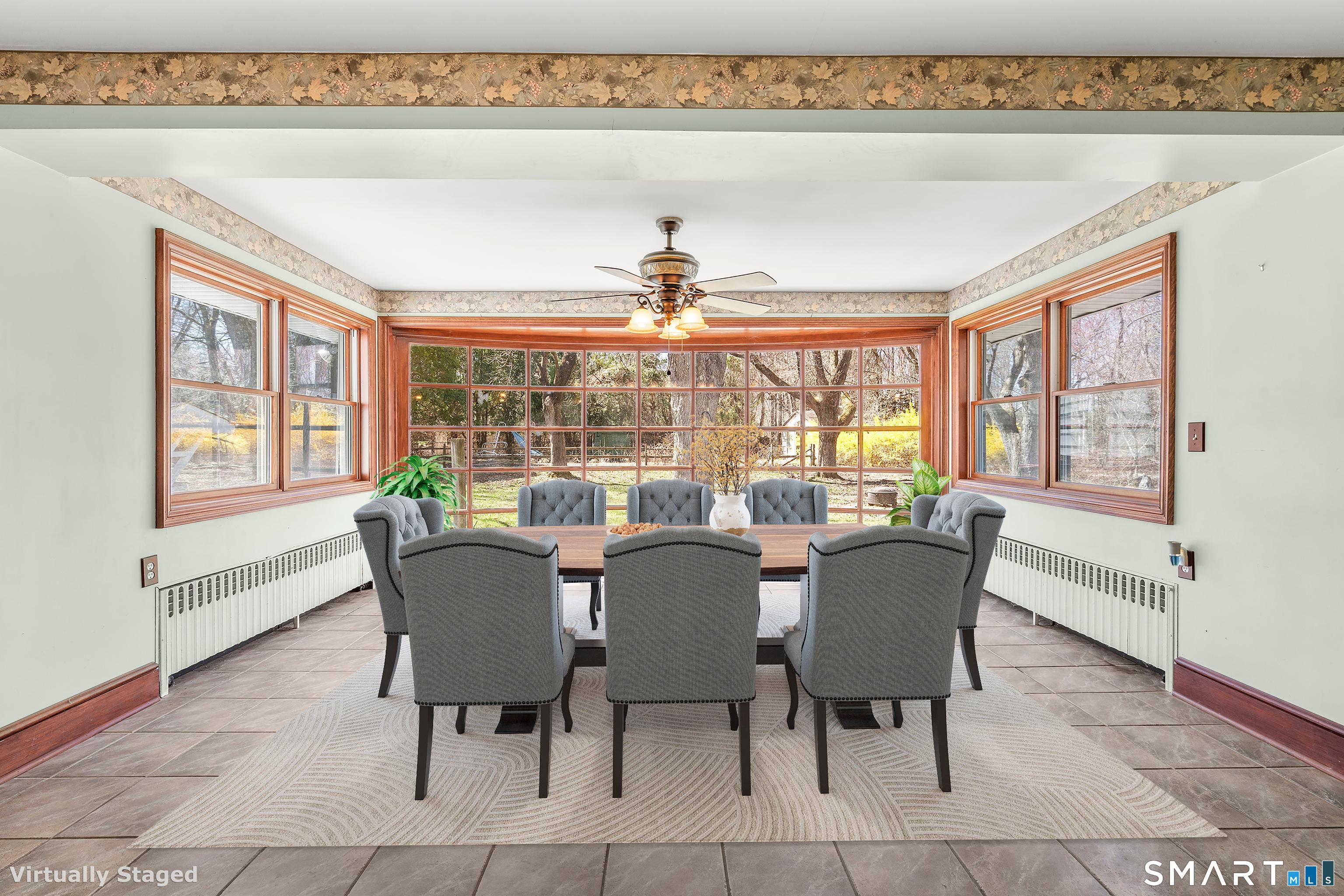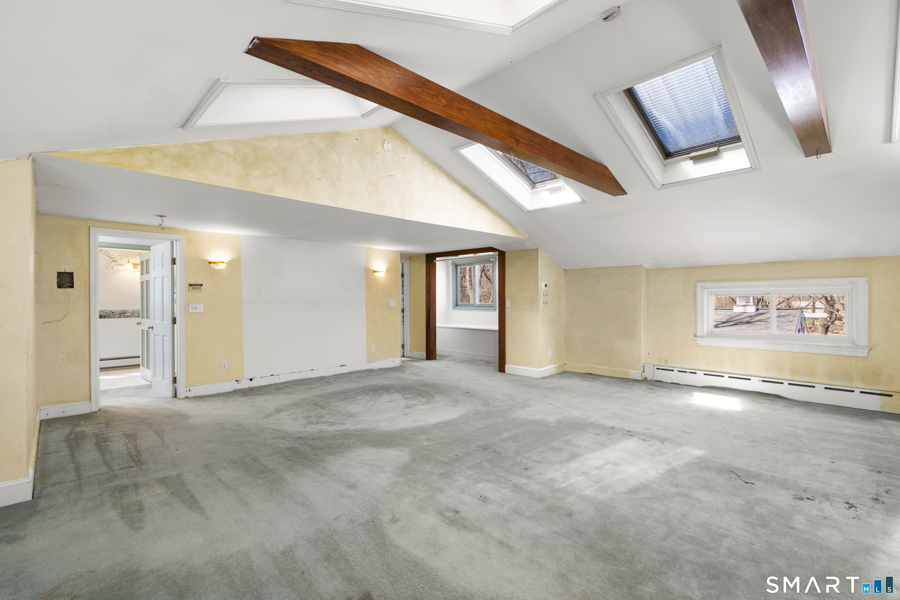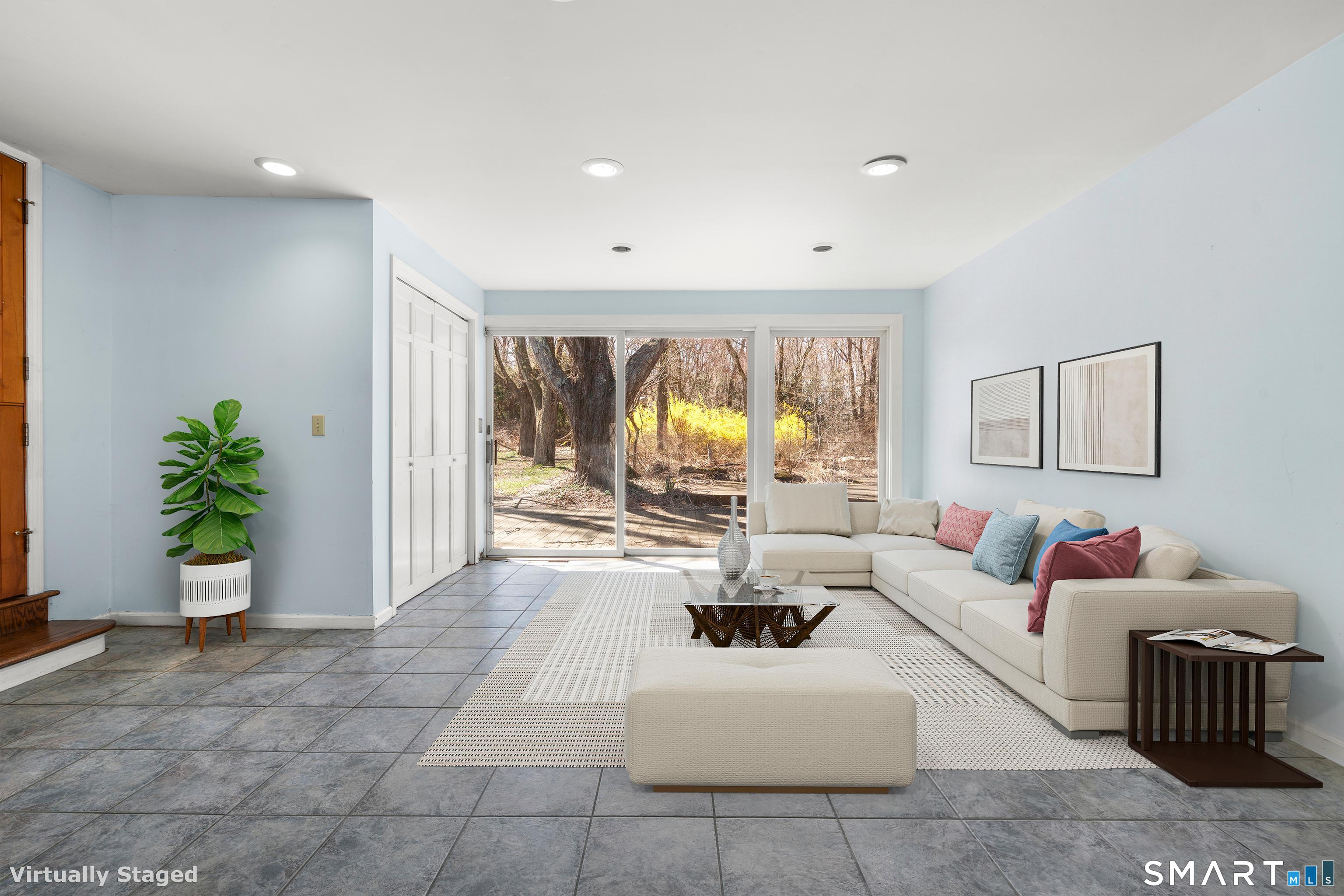 835 Monroe Turnpike Set on 4. 8 acres of level, private land in Monroe's sought-after Historic District, this distinctive 4-bedroom, 4-bath residence offers a rare blend of space, character, and setting. A long, tree-lined driveway leads you to the home, which sits gracefully set back from the road, framed by classic stone walls and a picturesque pond at the front of the property. Designed for both everyday living and entertaining, the home features a spacious layout including a living room with a wood-burning fireplace, a formal dining room with dramatic floor-to-ceiling windows overlooking the backyard, an eat-in kitchen, and a comfortable family room. The grounds are equally impressive, with an in-ground pool and pool house creating a private backyard retreat. The primary suite is privately situated on its own level and offers a true escape, complete with cathedral ceilings, skylights, a walk-in closet, and a full bath with whirlpool tub and separate shower. Bedrooms two and three each include their own full bathrooms and walk-in closets, providing exceptional comfort and convenience. A stately front facade highlighted by grand two-story pillars adds to the home's curb appeal, while a 3-car attached garage provides ample storage and functionality. This is a truly unique property with incredible potential-perfect for those looking to personalize and update a one-of-a-kind home in a premier location. Subdivision possible.