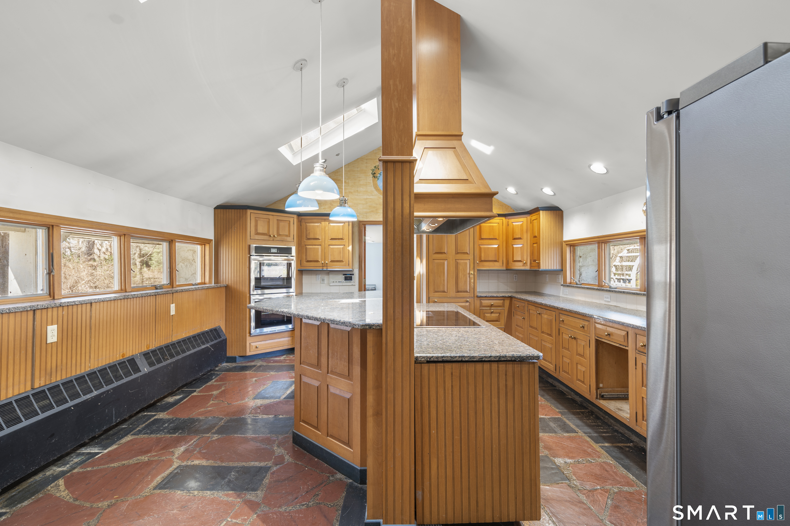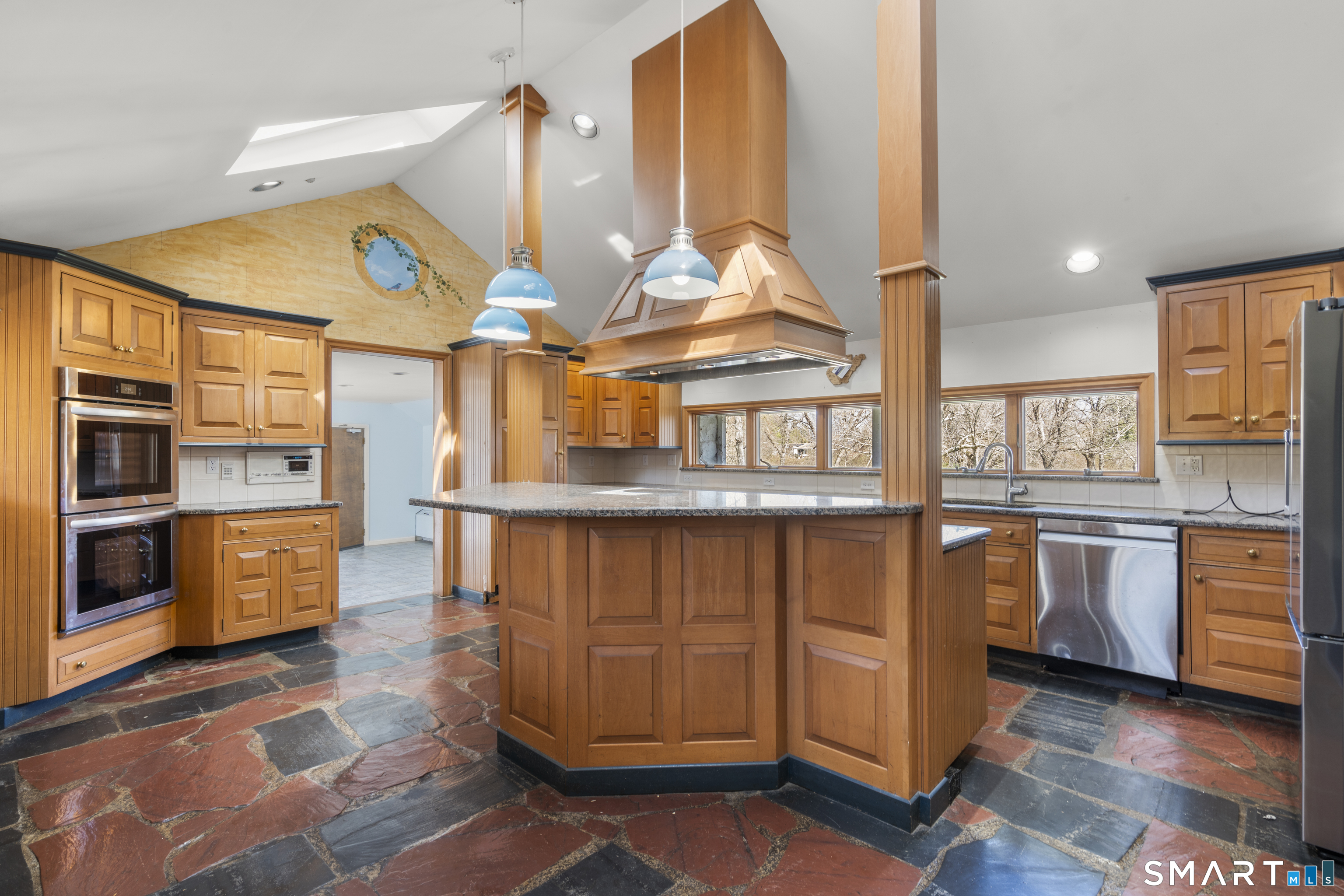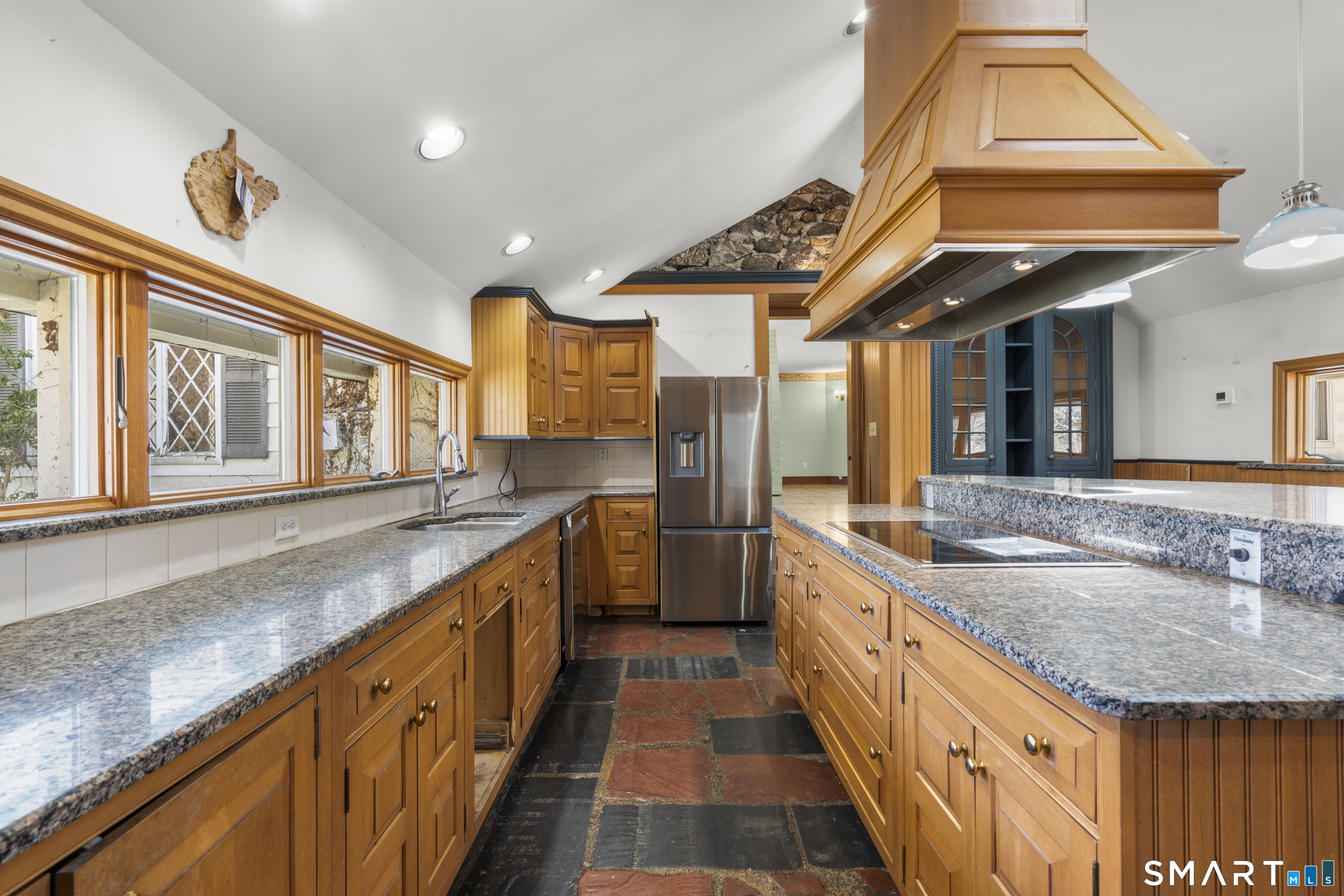 835 Monroe Turnpike Set on 4. 8 acres of level, private land in Monroe's sought-after Historic District, this distinctive 4-bedroom, 4-bath residence offers a rare blend of space, character, and setting. A long, tree-lined driveway leads you to the home, which sits gracefully set back from the road, framed by classic stone walls and a picturesque pond at the front of the property. Designed for both everyday living and entertaining, the home features a spacious layout including a living room with a wood-burning fireplace, a formal dining room with dramatic floor-to-ceiling windows overlooking the backyard, an eat-in kitchen, and a comfortable family room. The grounds are equally impressive, with an in-ground pool and pool house creating a private backyard retreat. The primary suite is privately situated on its own level and offers a true escape, complete with cathedral ceilings, skylights, a walk-in closet, and a full bath with whirlpool tub and separate shower. Bedrooms two and three each include their own full bathrooms and walk-in closets, providing exceptional comfort and convenience. A stately front facade highlighted by grand two-story pillars adds to the home's curb appeal, while a 3-car attached garage provides ample storage and functionality. This is a truly unique property with incredible potential-perfect for those looking to personalize and update a one-of-a-kind home in a premier location. Subdivision possible.